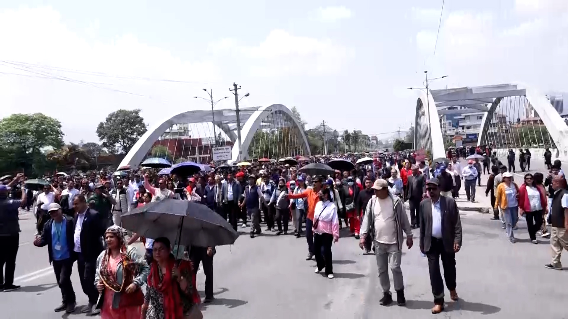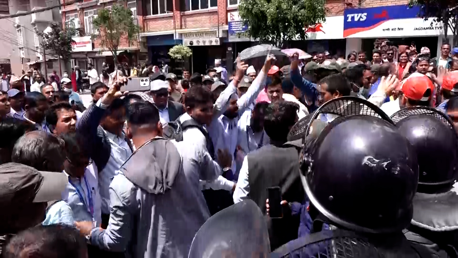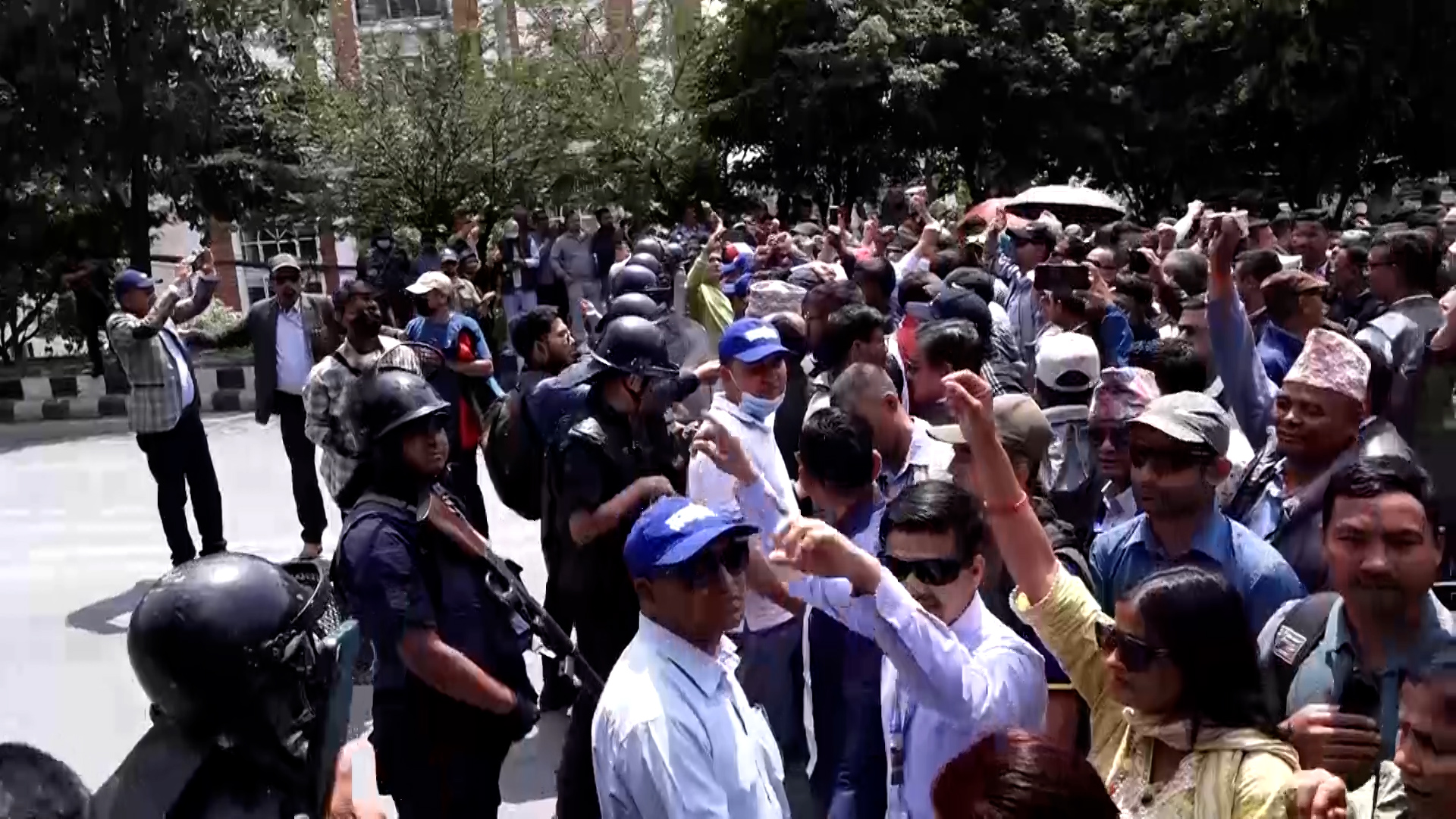 माइतीघरबाट प्रदर्शनसहित बानेश्वर पुगेर शिक्षकहरुले सडकमा धर्ना दिएका हुन्। नयाँ बानेश्वरको निषेधित क्षेत्रबाट अघि बढ्न प्रहरीले रोकेपछि उनीहरु सडकमा नै धर्ना दिएर बसेका हुन्।