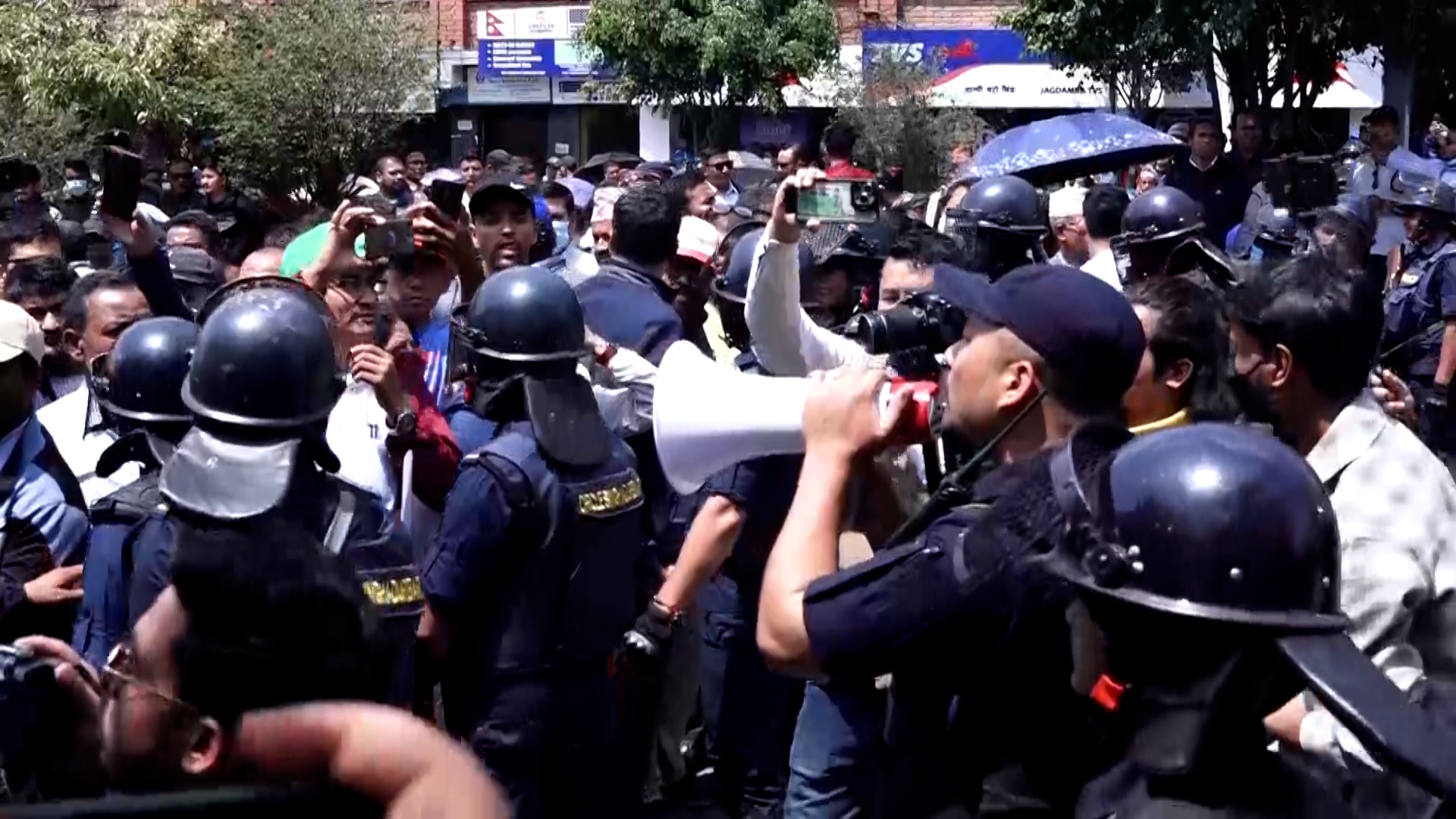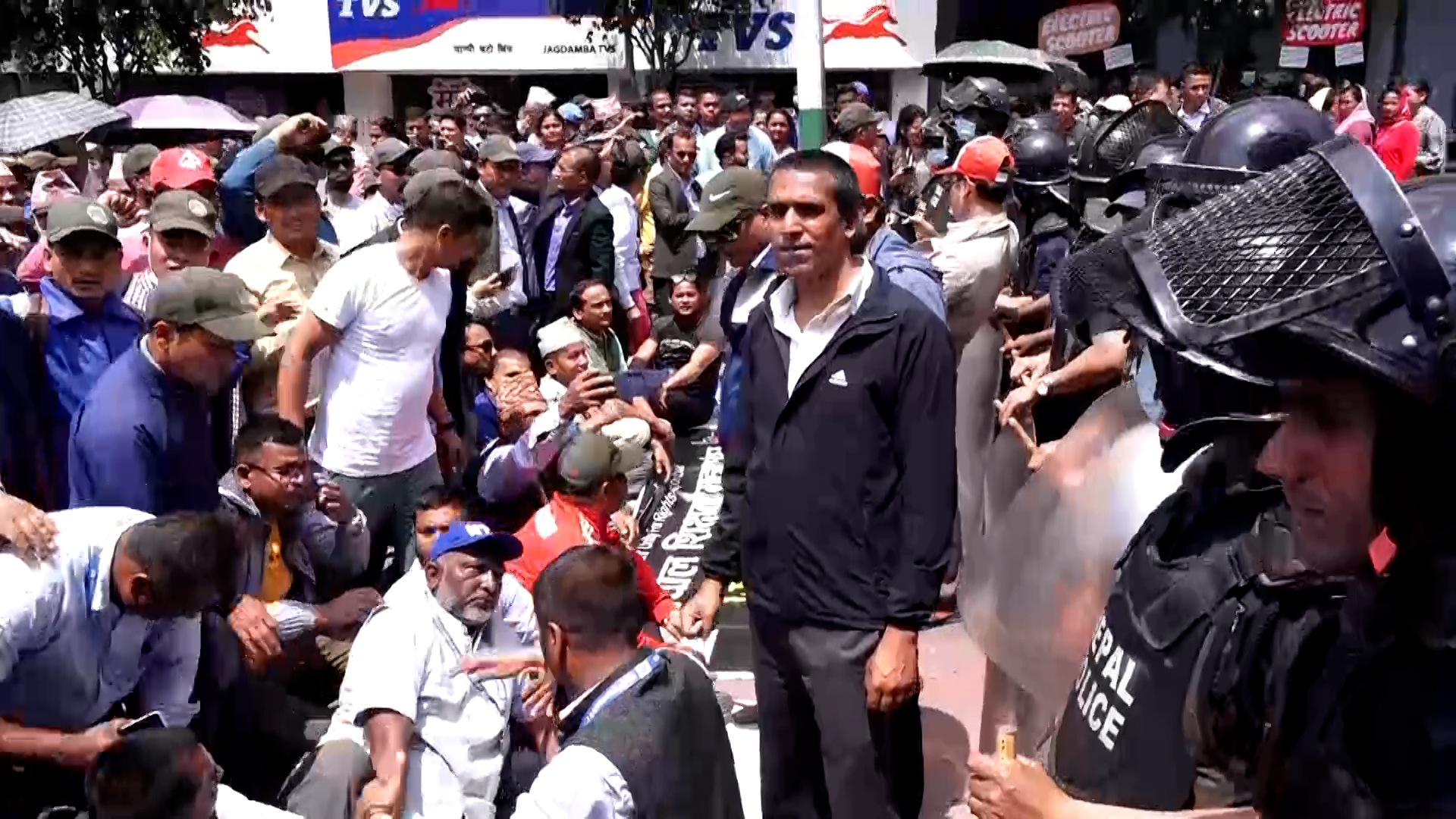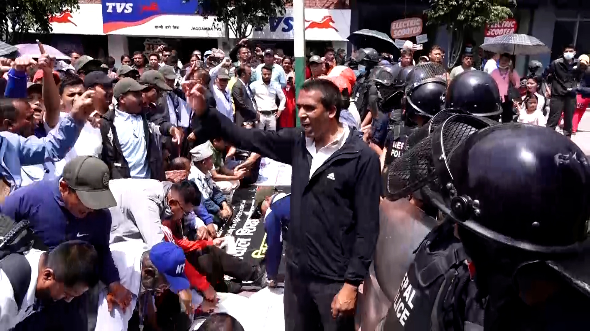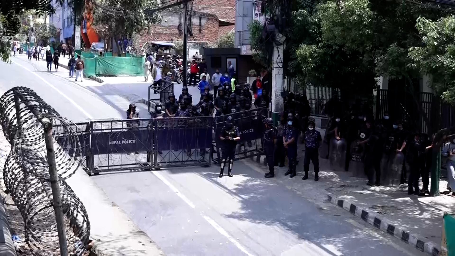 माइतीघरबाट प्रदर्शनसहित बानेश्वर पुगेर शिक्षकहरुले सडकमा धर्ना दिएका हुन्। नयाँ बानेश्वरको निषेधित क्षेत्रबाट अघि बढ्न प्रहरीले रोकेपछि उनीहरु सडकमा नै धर्ना दिएर बसेका हुन्।