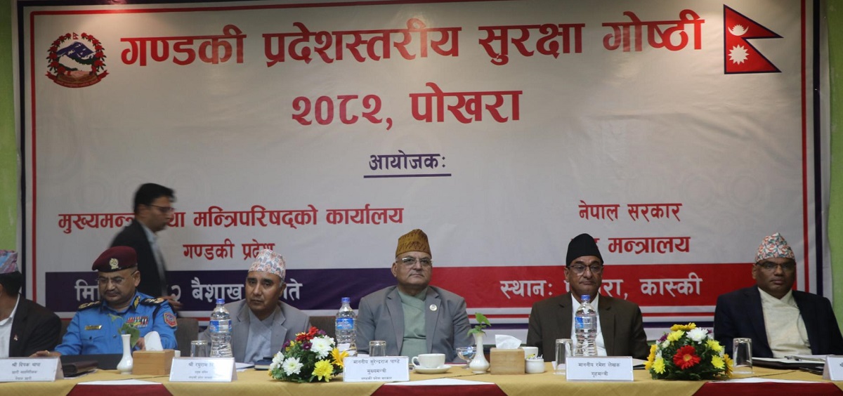 सुरक्षा गोष्ठीमा प्रदेशअन्तर्गत सबै जिल्लाका सुरक्षा समितिका पदाधिकारीहरूको उपस्थिति छ। मन्त्री लेखकले आजै सङ्घ मातहत रहेको आपतकालीन गोदामघर गण्डकी प्रदेश सरकारलाई हस्तान्तरण गरेका थिए। एक समारोहका बीच मन्त्री लेखकले प्रदेशका मुख्यमन्त्री पाण्डेलाई आपत्कालीन गोदामघर हस्तान्तरण गरेका हुन्।