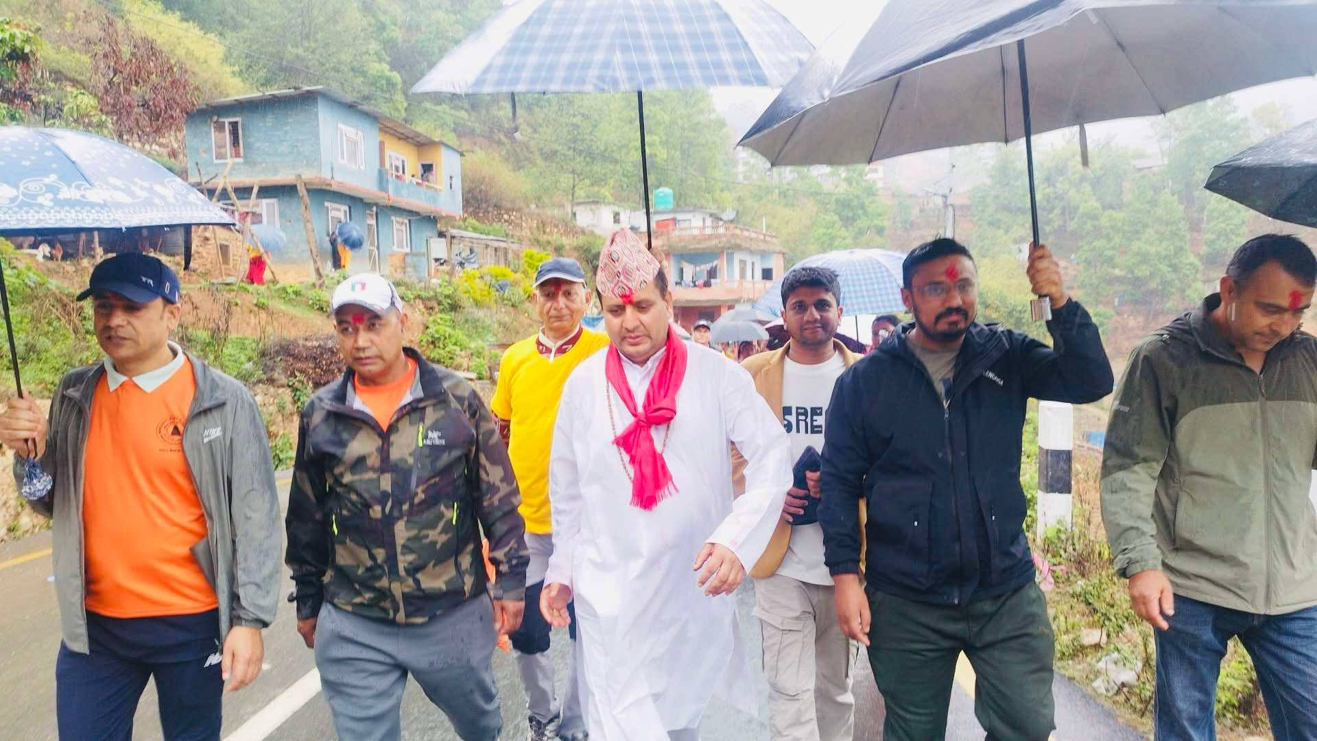 ‘घर-घरबाट उठौं, बस्ती बस्तीबाट जुटौं, यो महान अभियानमा कोही नछुटौं। सनातनी गौरव नेपालीको सान, दर्शन गरौं बद्रिनारायण धाम,’ नारा दिएर हामी महान अभियानमा छौं। नेपाली कला, संस्कार र संस्कृति विश्वभर फैलाउने अभियानमा छौं, पदयात्राको समापन समारोहमा सम्बोधन गर्दै पोखरेलले भने।