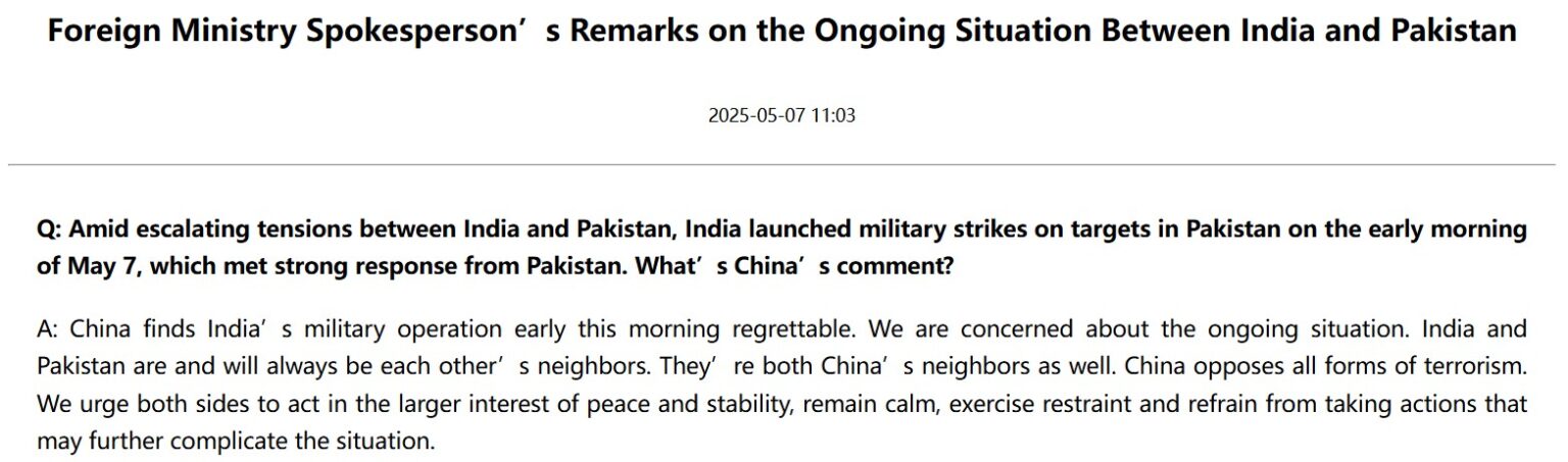 पाकिस्तानमा भारतले गरेको आक्रमणबारे चीनले भन्यो : यो दुःखद् छ