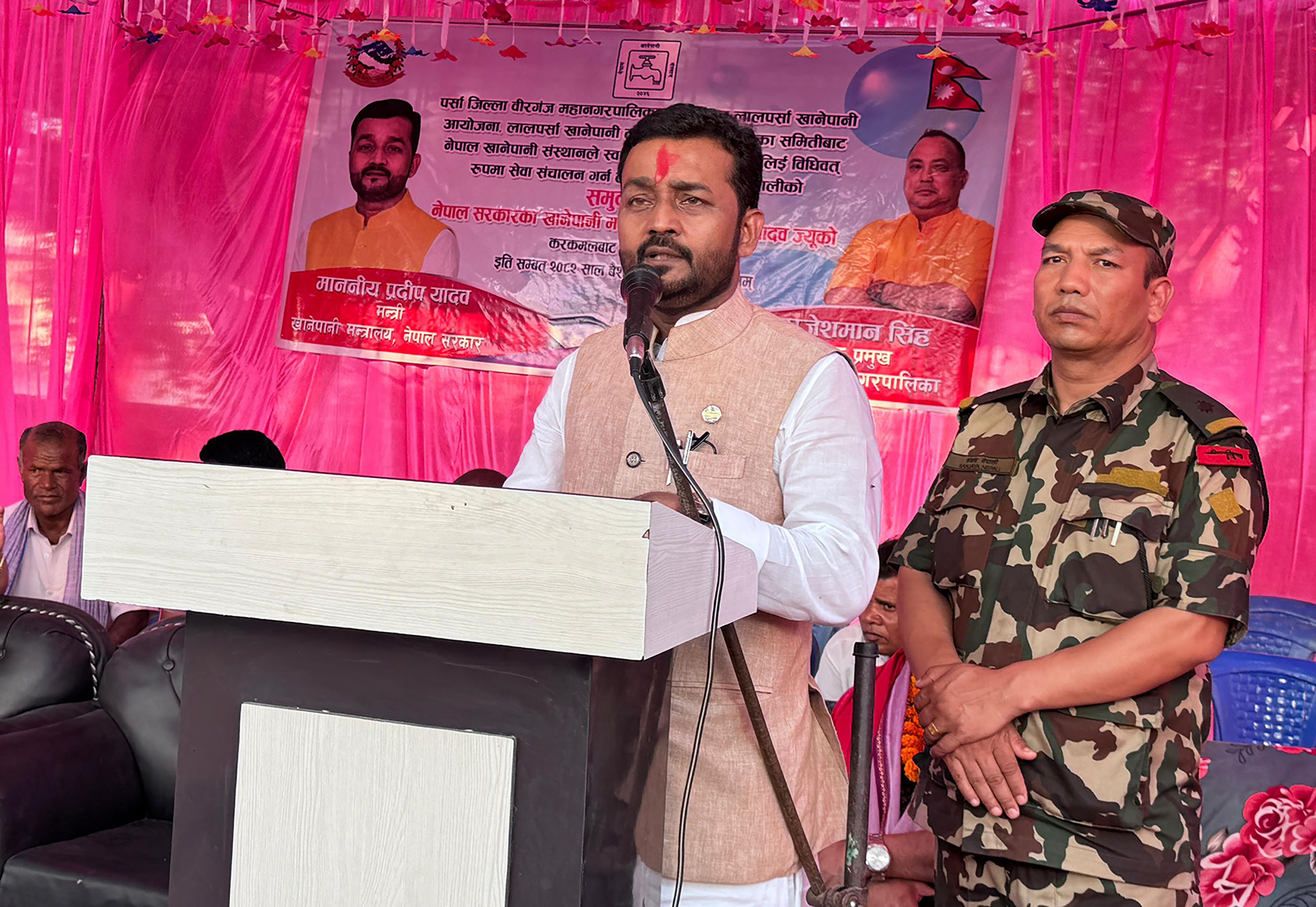 आज वीरगञ्ज महानगरपालिका–१६ मा नागवामा खानेपानी ट्यांकीको शिलान्यास कार्यक्रममा मन्त्री यादवले नेपाली जनतालाई शुद्ध र सुरक्षित खानेपानी वितरणका लागि प्रयाप्त बजेट विनियोजन गरिने उल्लेख गरे।