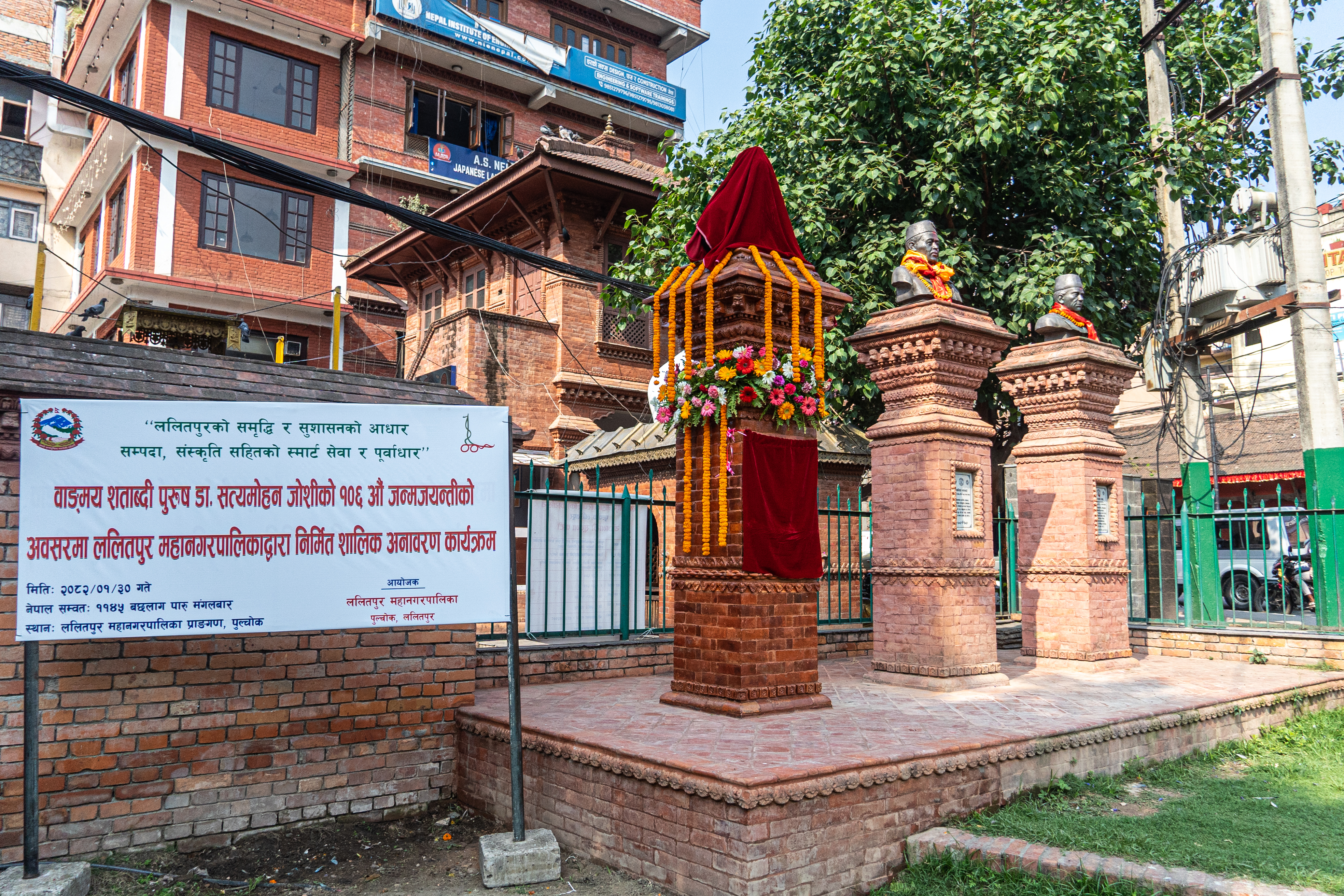 काठमाडौं। स्वर्गीय वाङ्मय शताब्दी पुरुष सत्यमोहन जोशीको अर्धकदको शालिक अनावरण गरिएको छ। आज बिहान ललितपुर महानगरपालिका प्राङ्गणमा जोशीको अर्धकदको शालिक अनावरण गरेको हो।