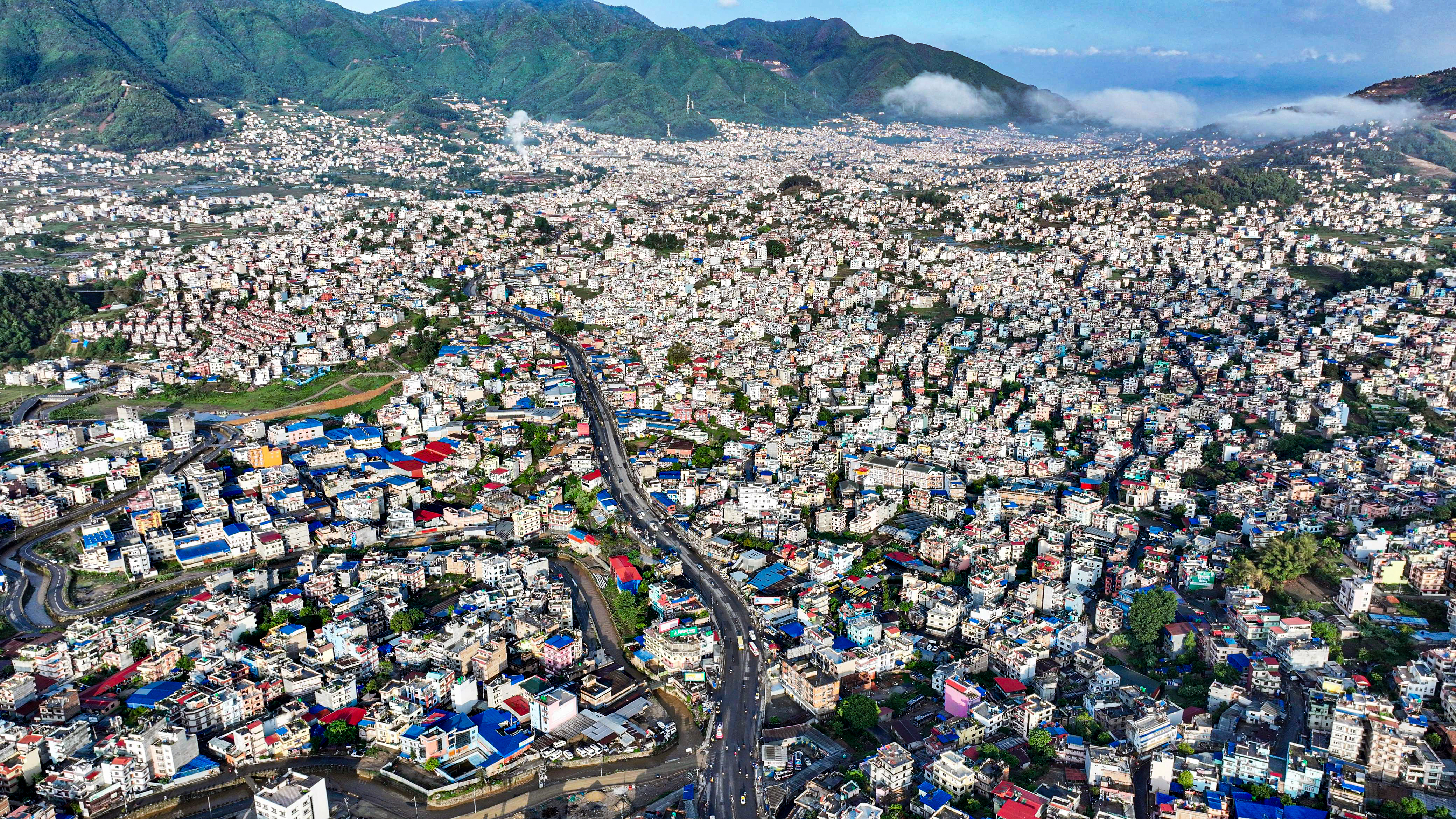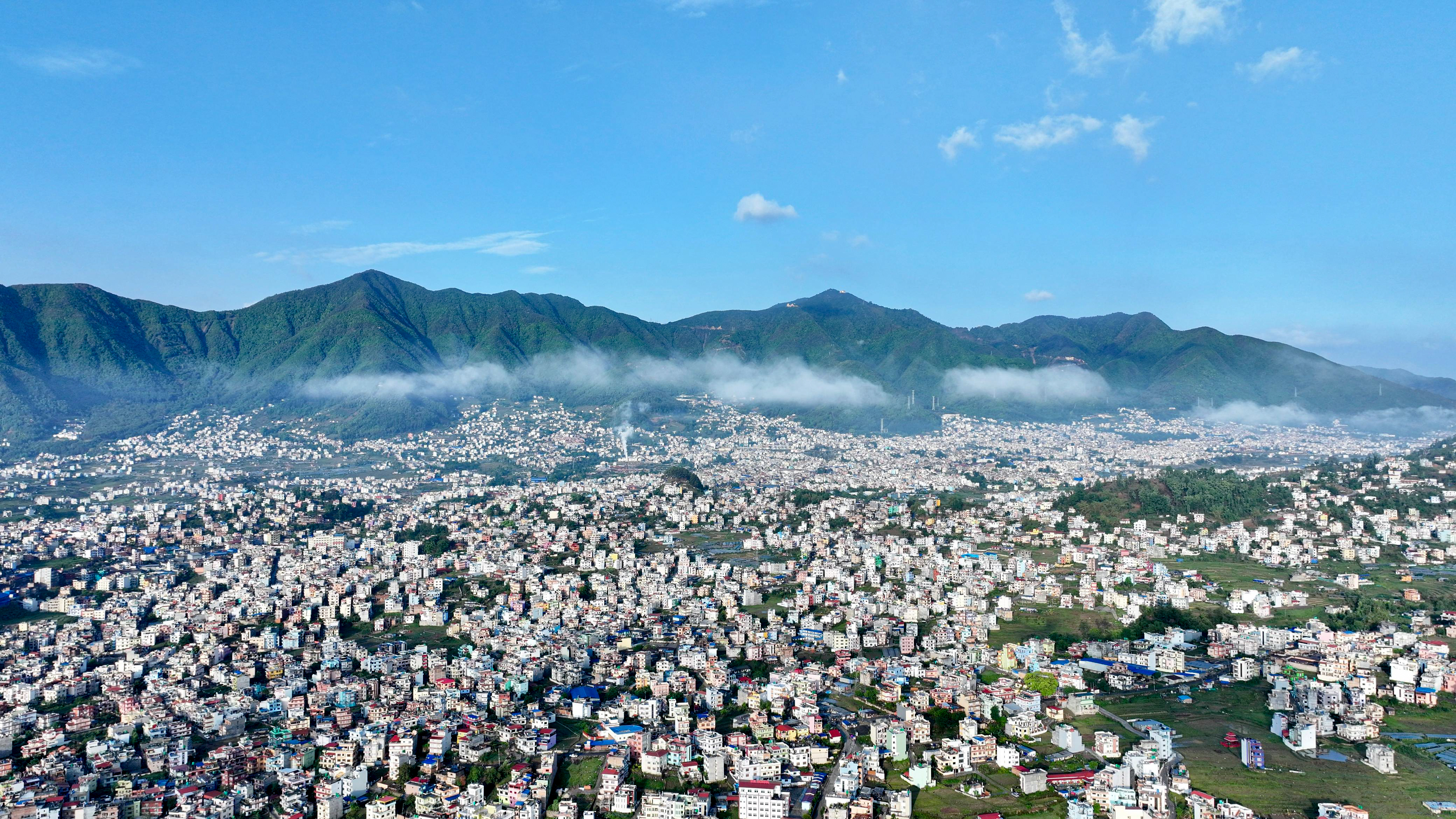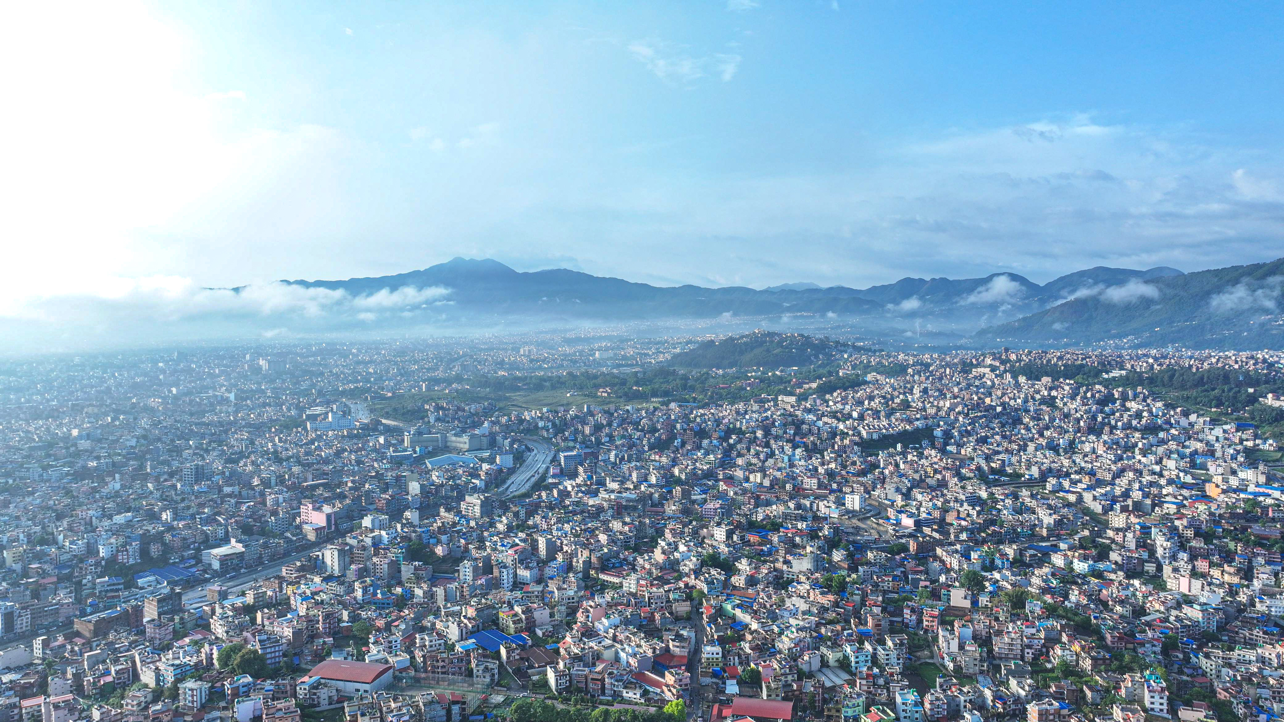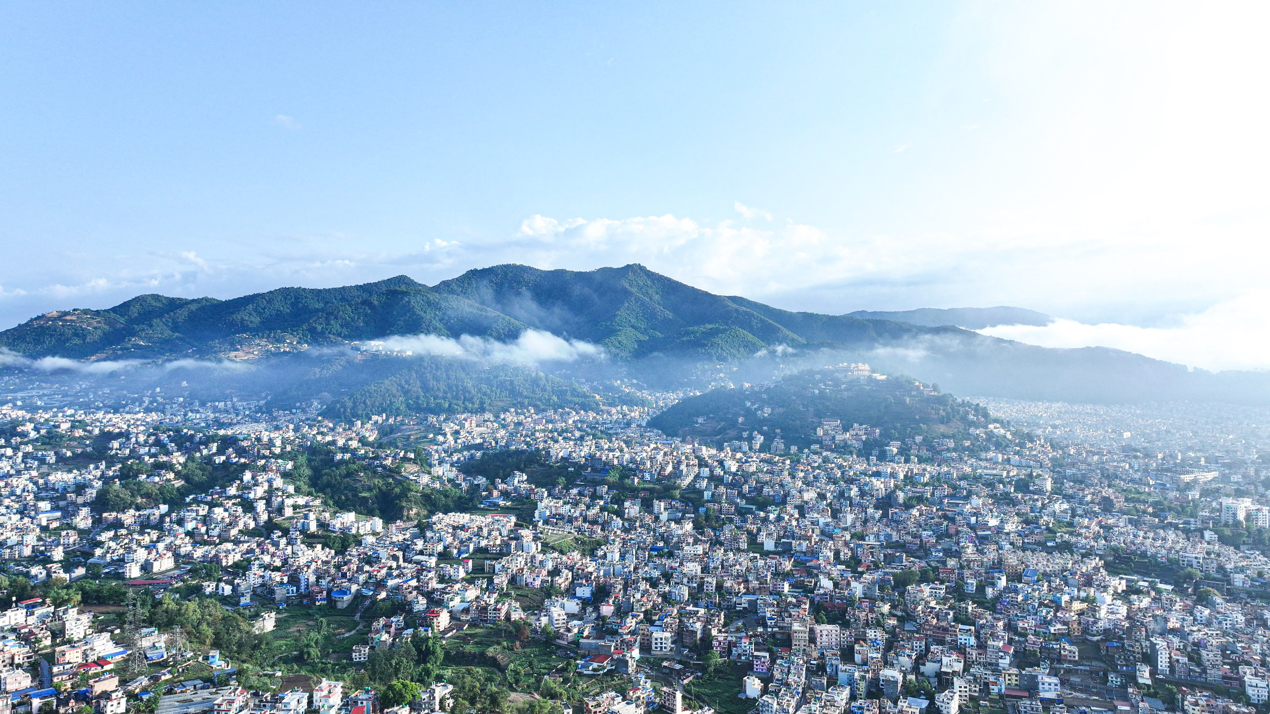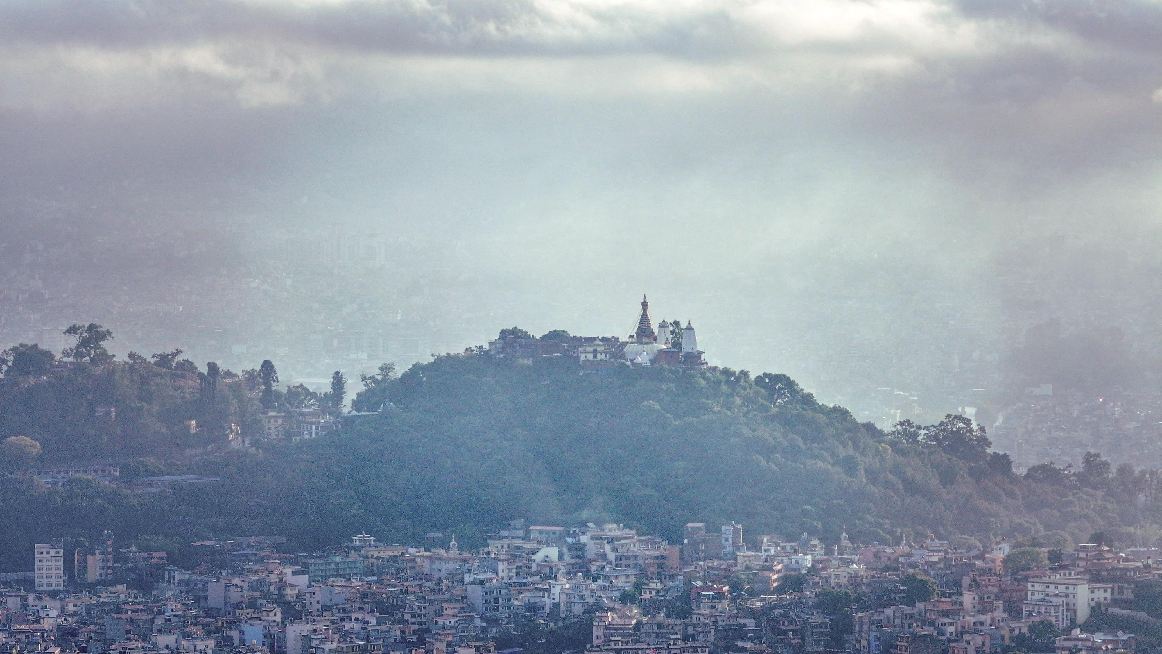 काठमाडाैं। रातभरको वर्षा भएपछि विहानको घामले बाक्लो बादललाई मेटाएर घामको किरण पर्दा उपत्यकाको बाक्लो बस्ती निकै सुल्दर देखिएको छ।