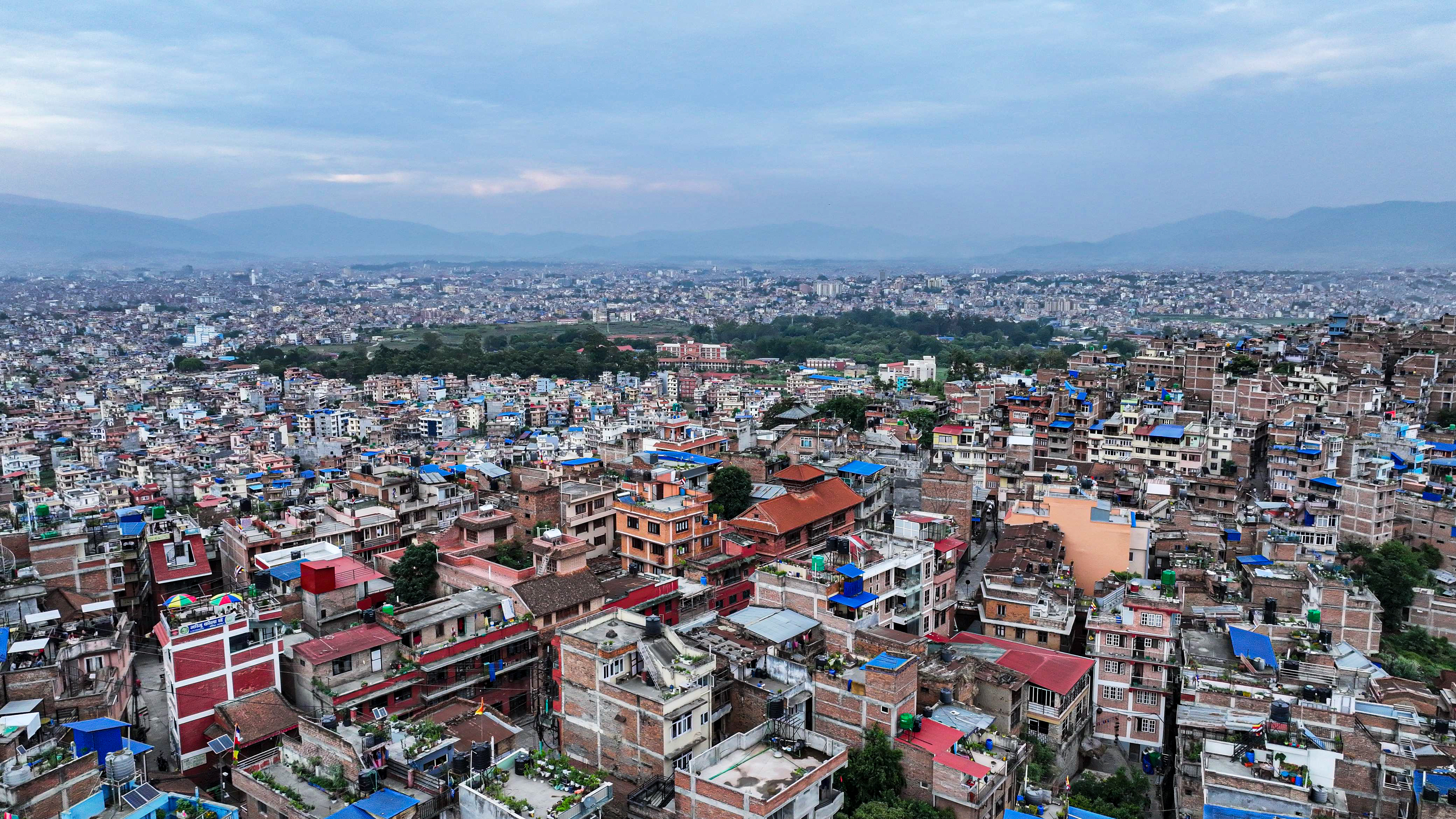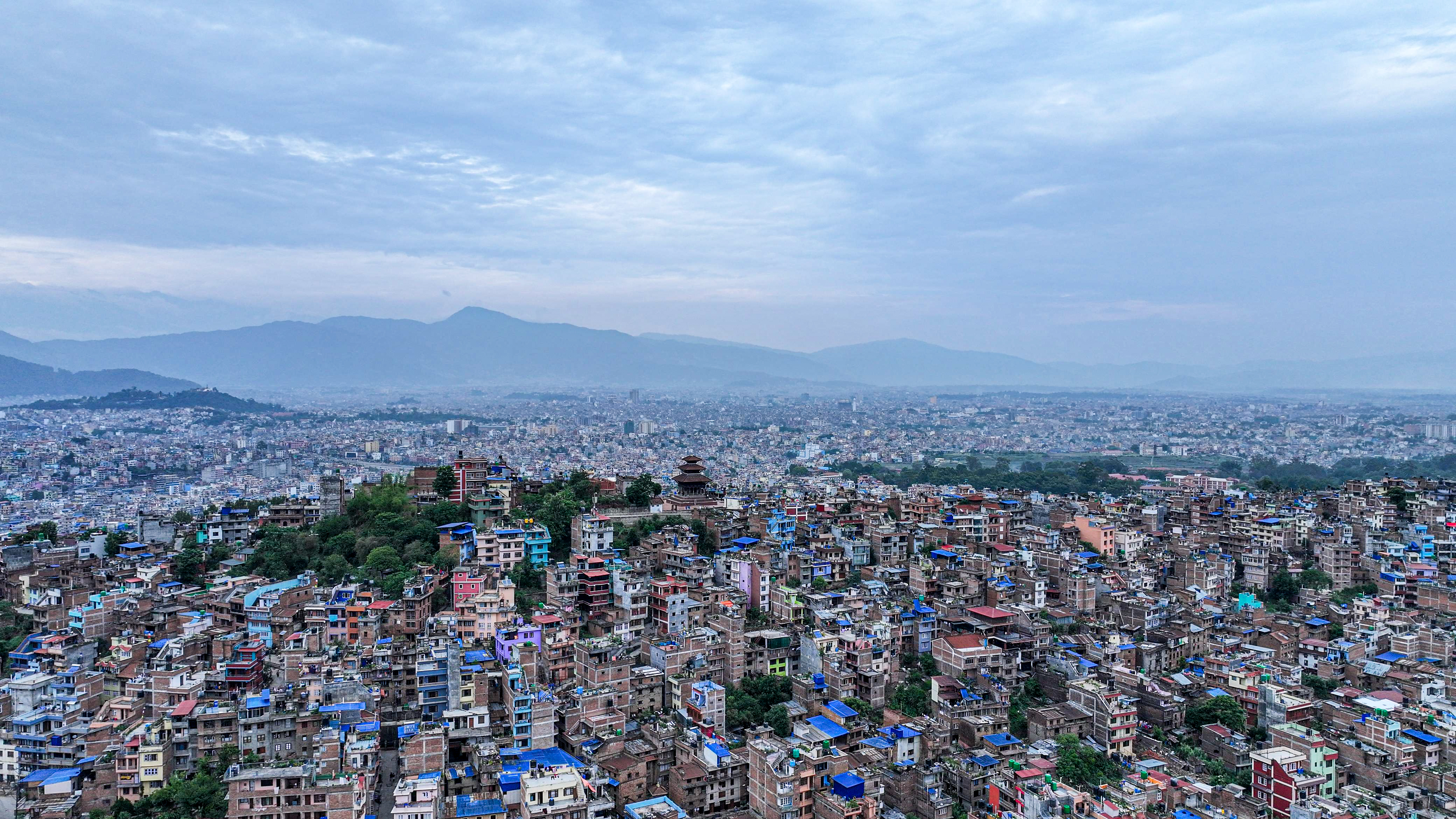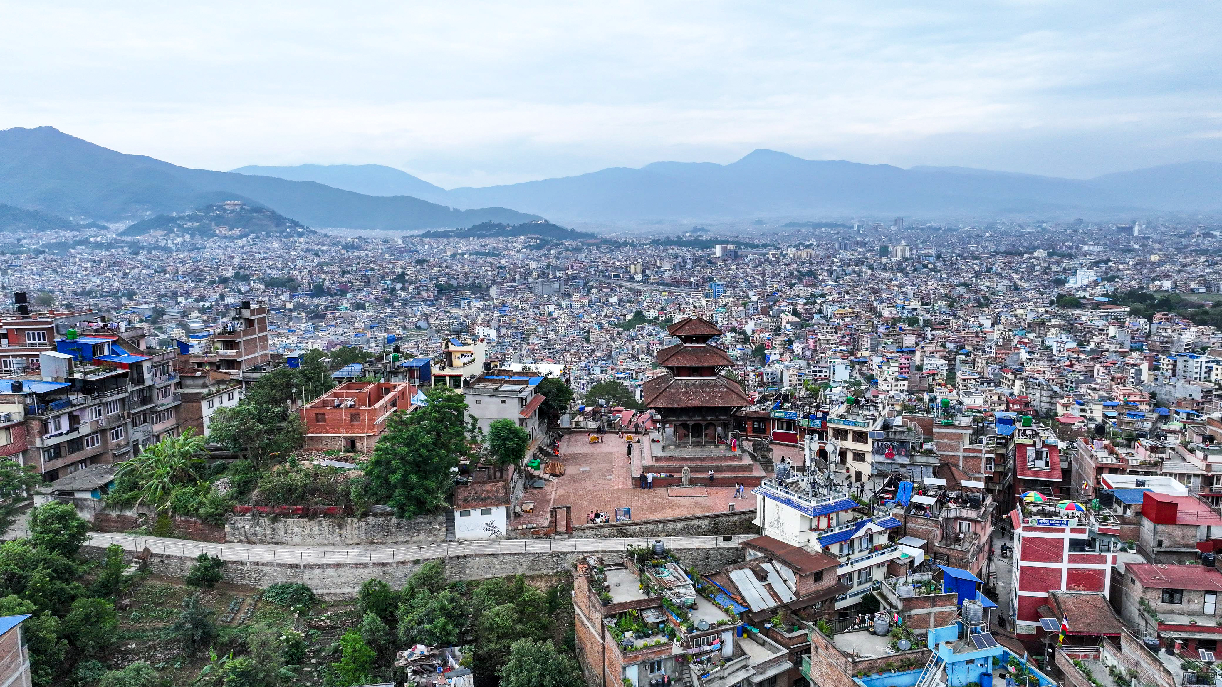 काठमाडाैं। कीर्तिपुरस्थित बाघभैरव मन्दिर परिसरबाट देखिएको खुला आकाश र काठमाडौंको मनमोहक दृश्य