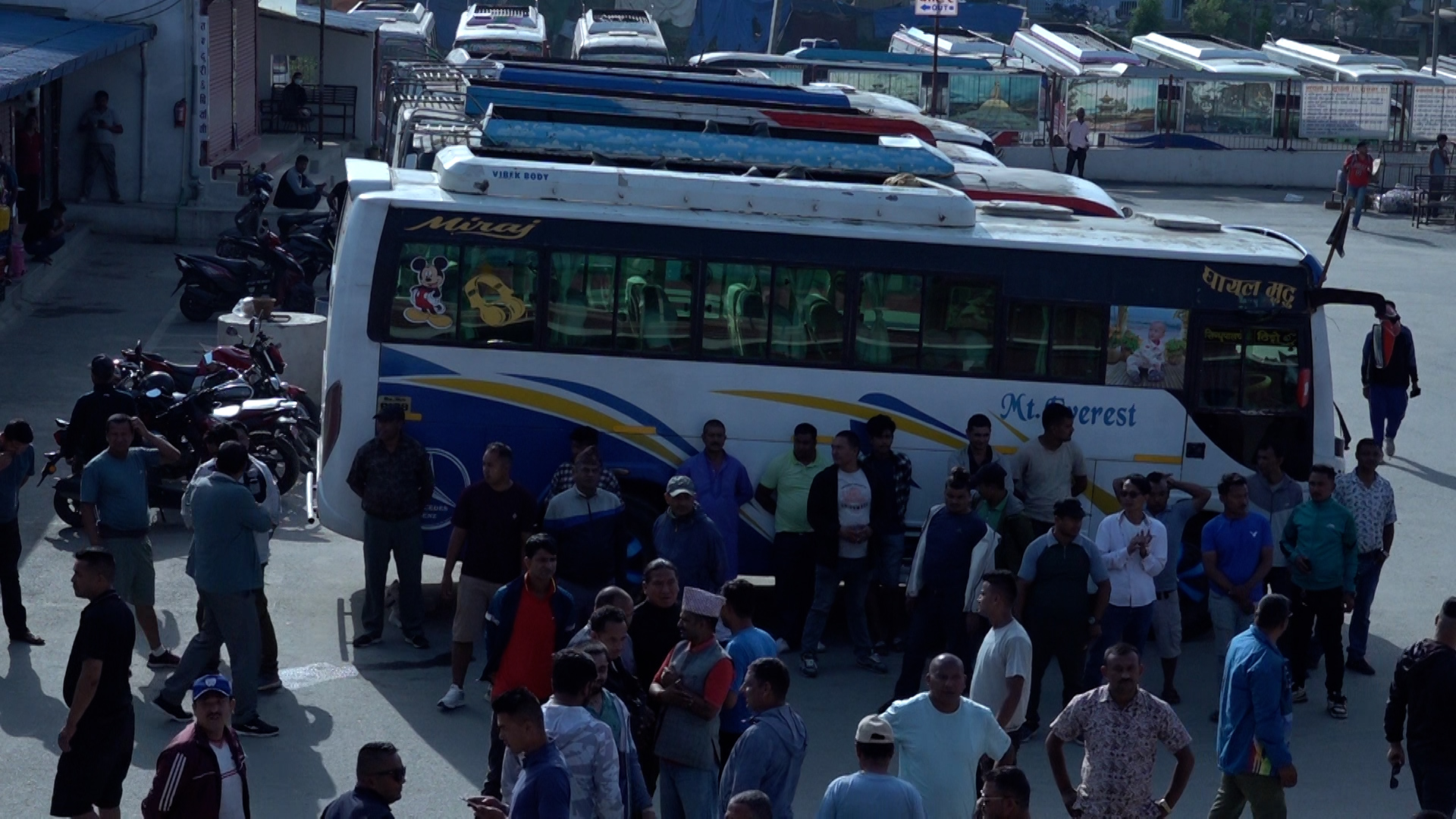 काठमाडौं । ‘सार्वजनिक यातायात बचाउ केन्द्रीय संघर्ष समिति’को आह्वानमा सोमबारदेखि देशभर सार्वजनिक सवारी साधन ग्यारेजमै थन्किएका छन् । अनिश्चितकालीन यातायात बन्दको घोषणा भएसँगै विशेष गरी काठमाडौं उपत्यकामा सार्वजनिक सवारी ठप्प हुँदा यात्रुहरू गन्तव्यमा पुग्न निकै सास्ती खेपिरहेका छन् ।