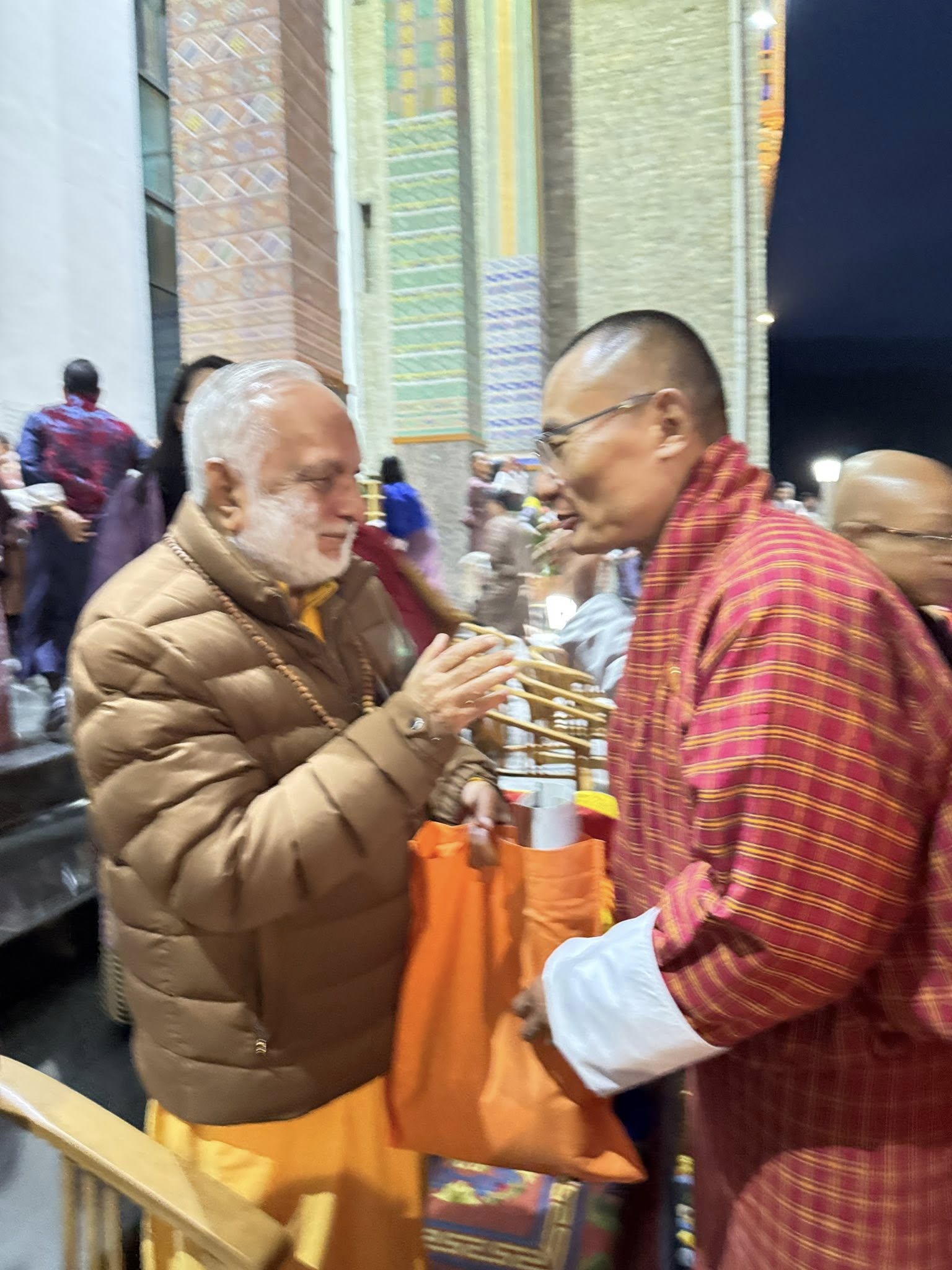 डाशो कर्मा उरा, भुटानको साँघुरो राष्ट्रिय खुसी अध्ययन केन्द्रका अध्यक्ष र सम्मानित विद्वानको अगुवाइमा, स्वामी अरुणलाई बुद्धको अघि घिउ बत्ती बाल्न निमन्त्रणा दिइयो। रिन्पोछेले स्वामीजीलाई आफू बराबरको रूपमा छेउमै बसी स्थान दिए-अतिथि होइन, आध्यात्मिक बराबरीको रूपमा।