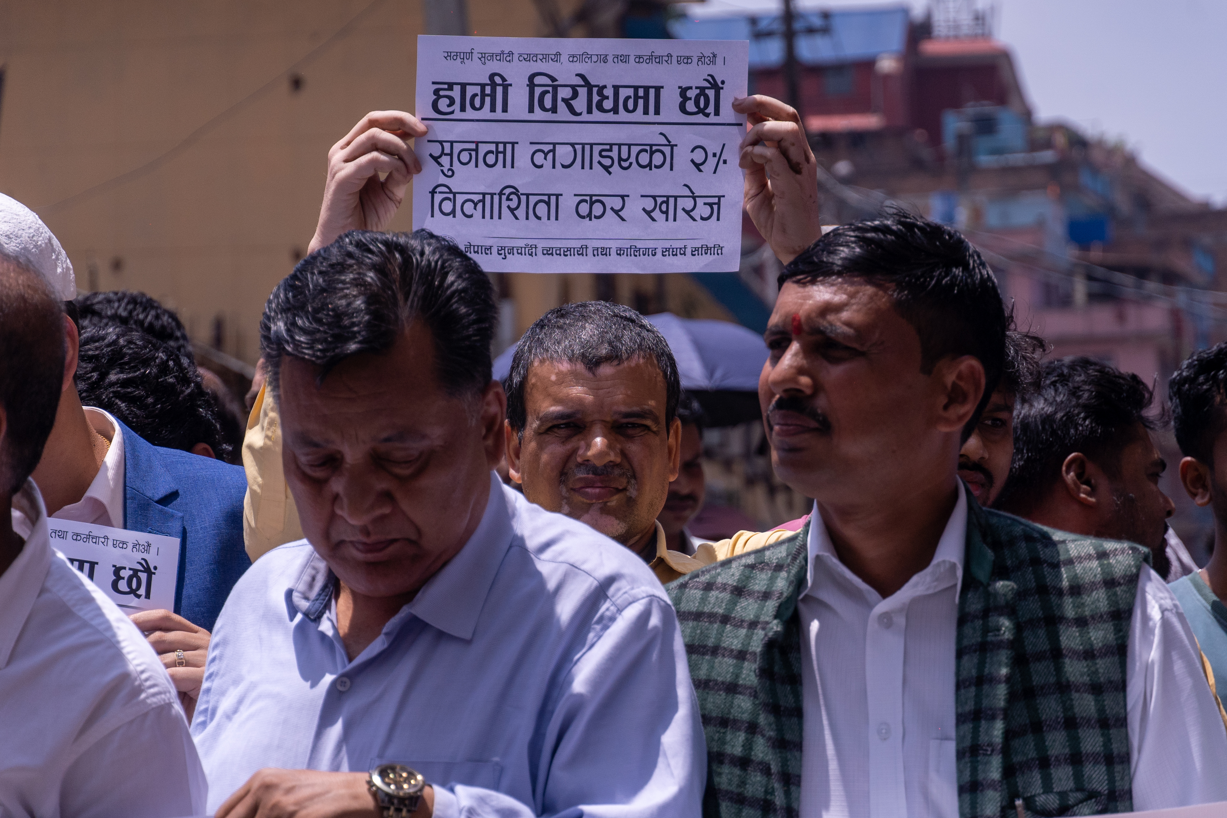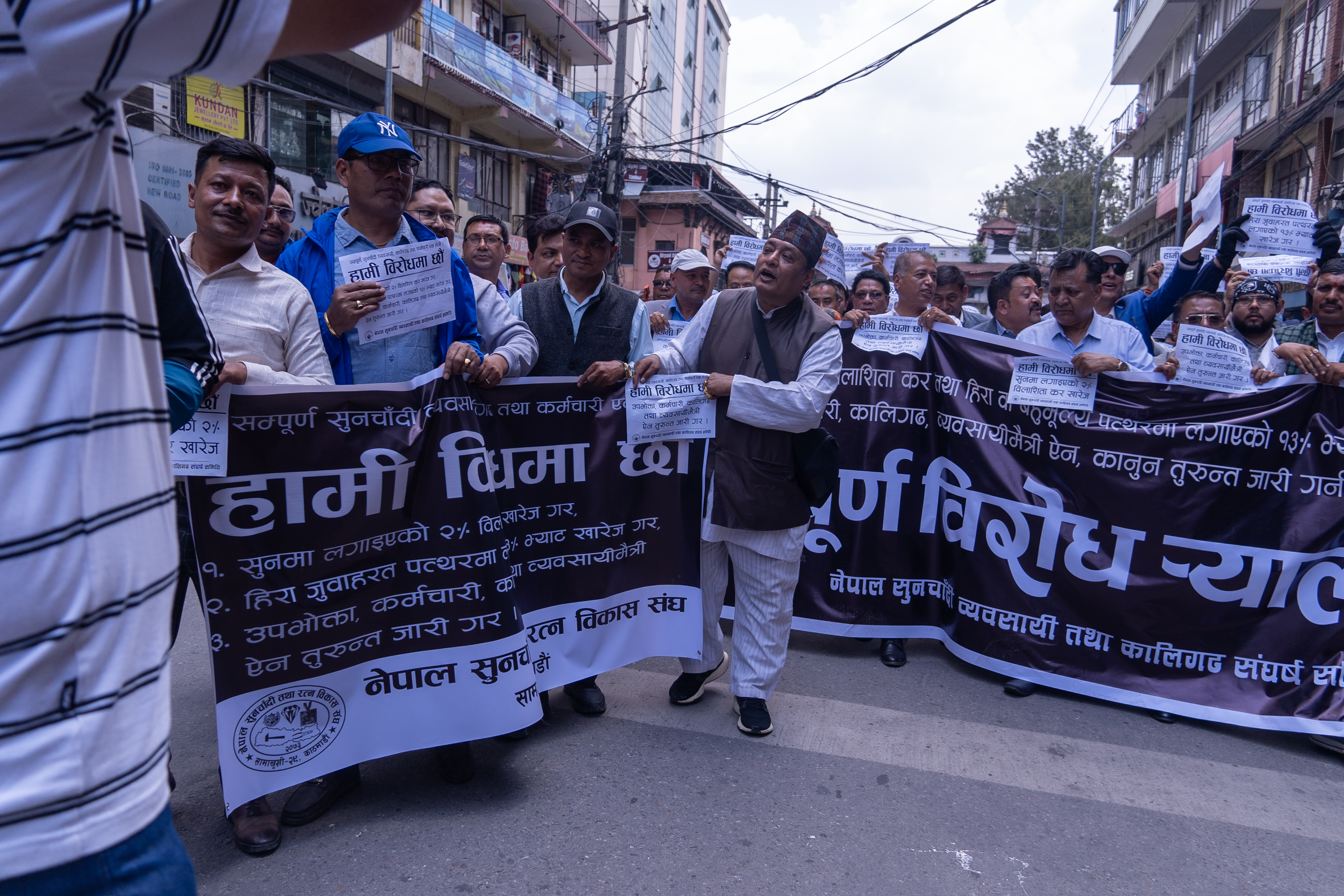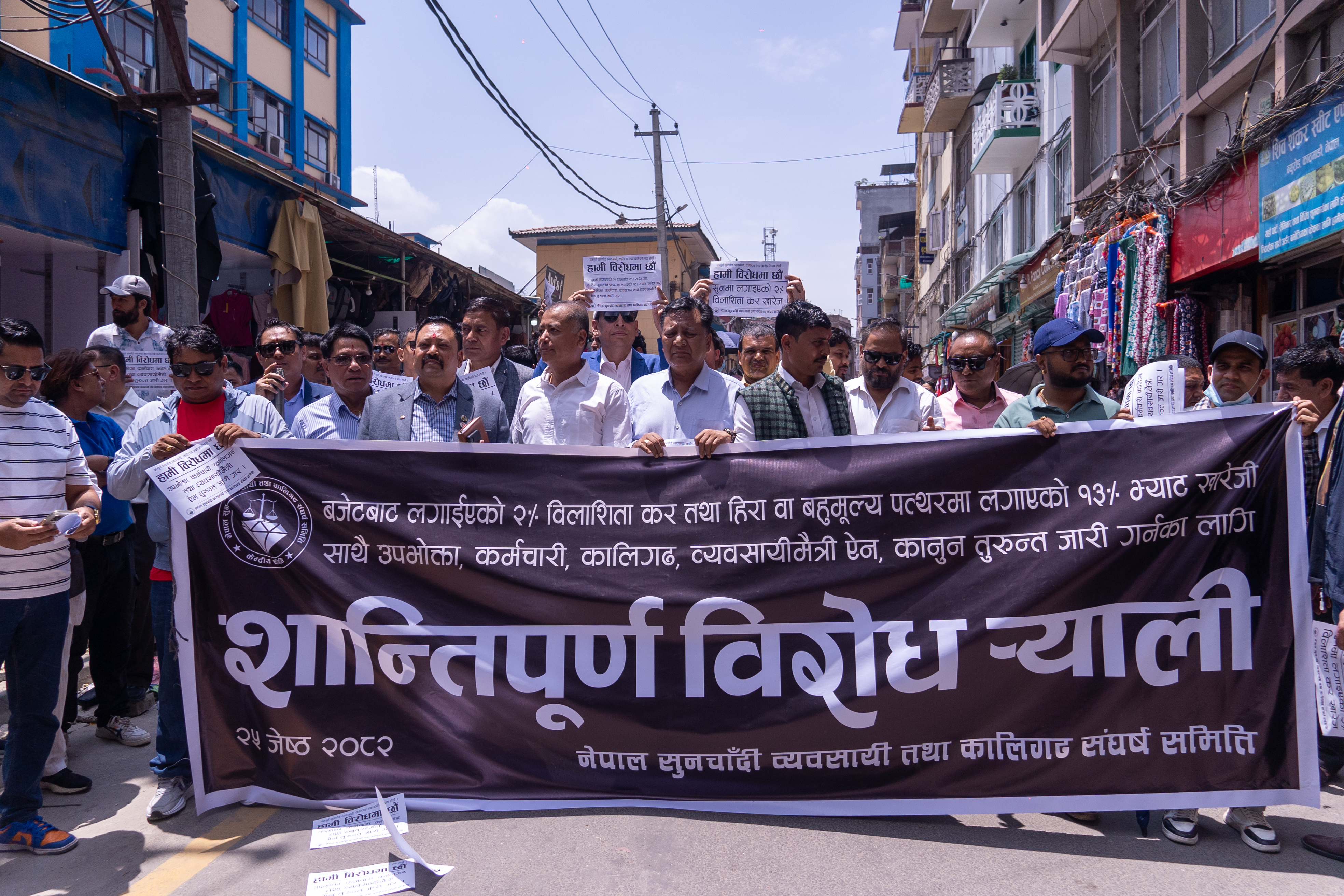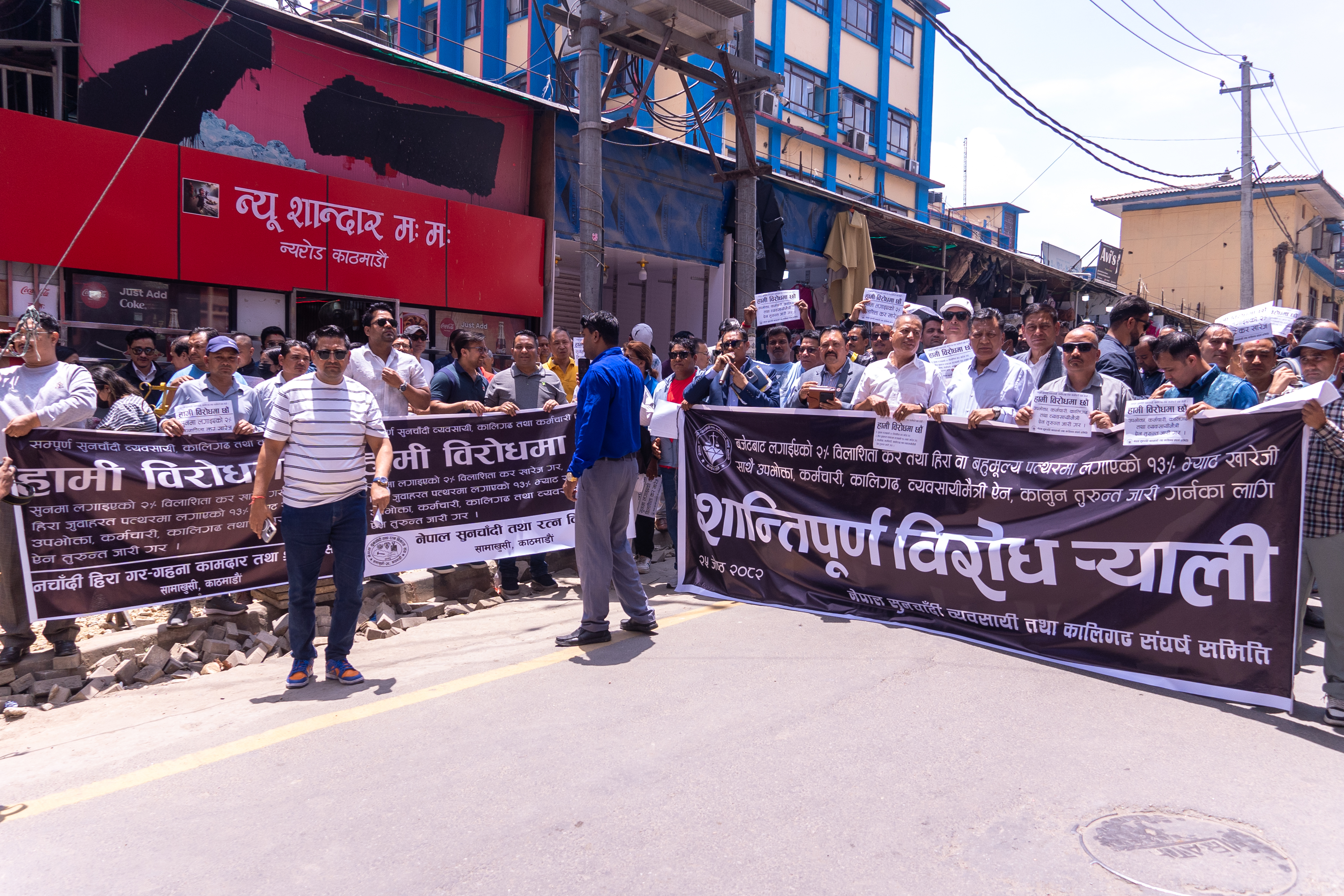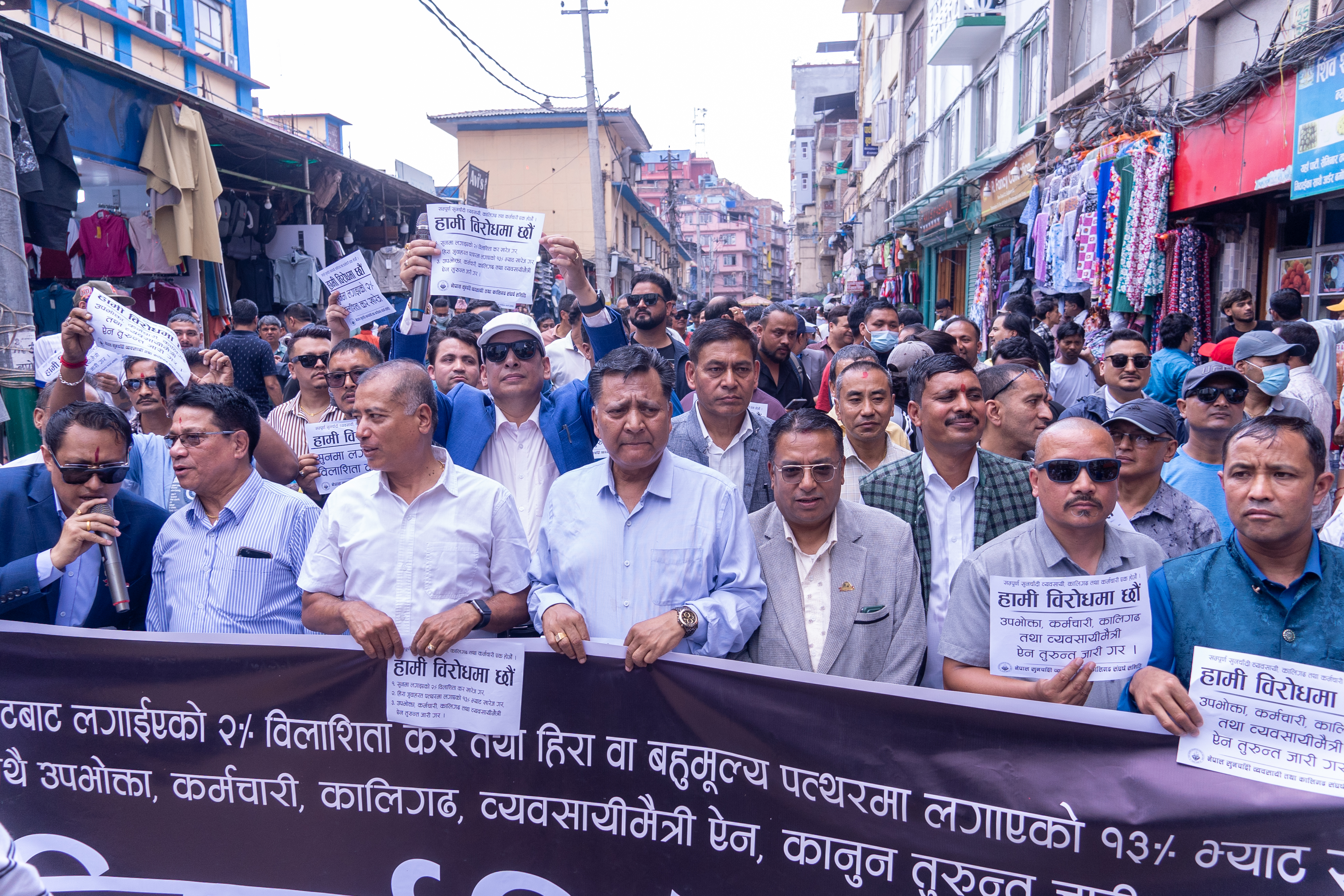 विलासी कर हटाउन माग गर्दै सुनचाँदी व्यवसायी सडकमा (तस्विरहरू)