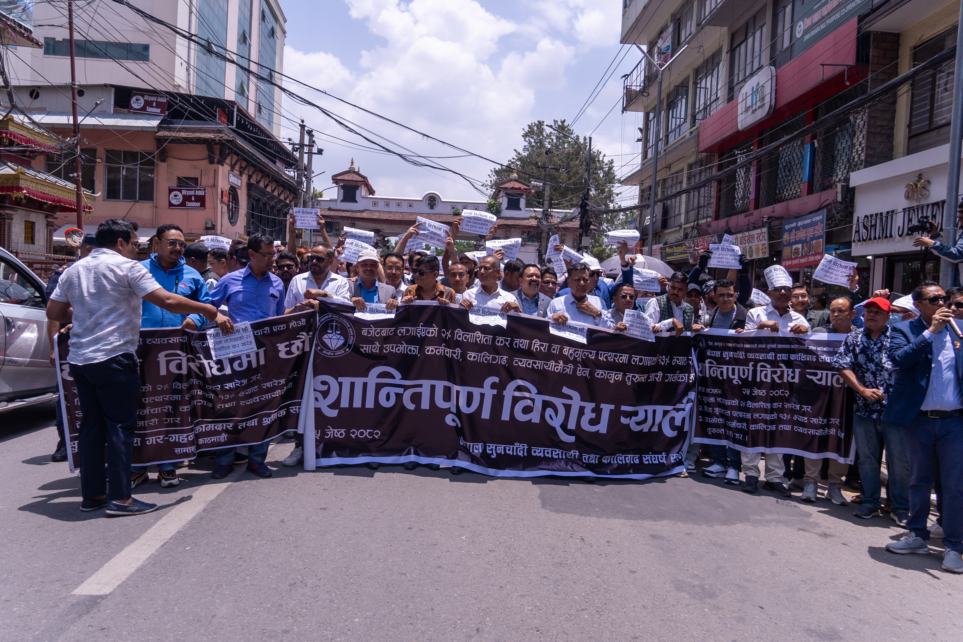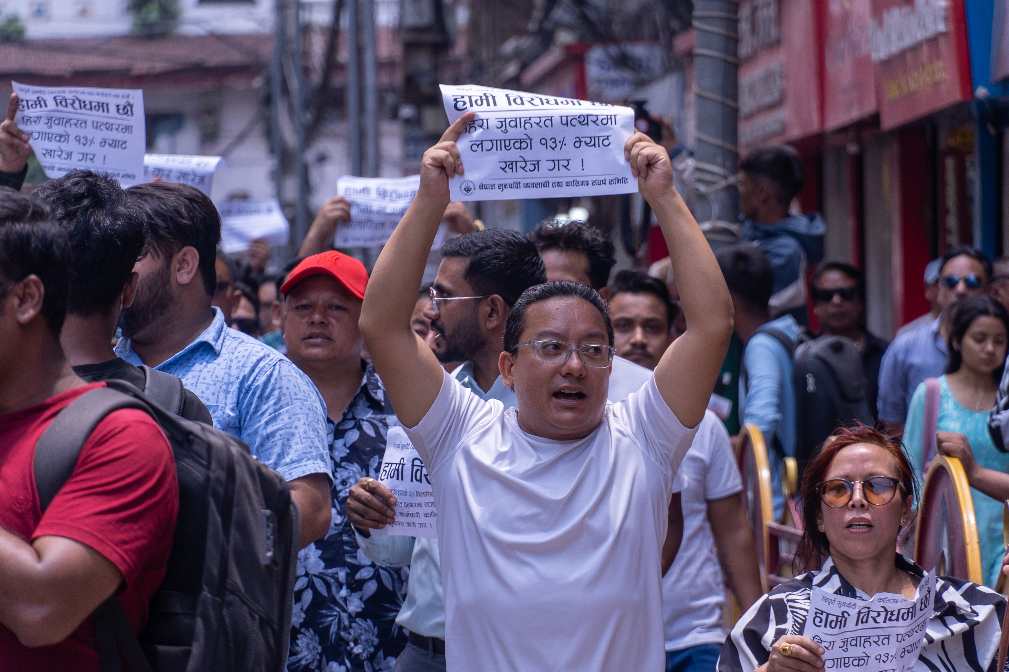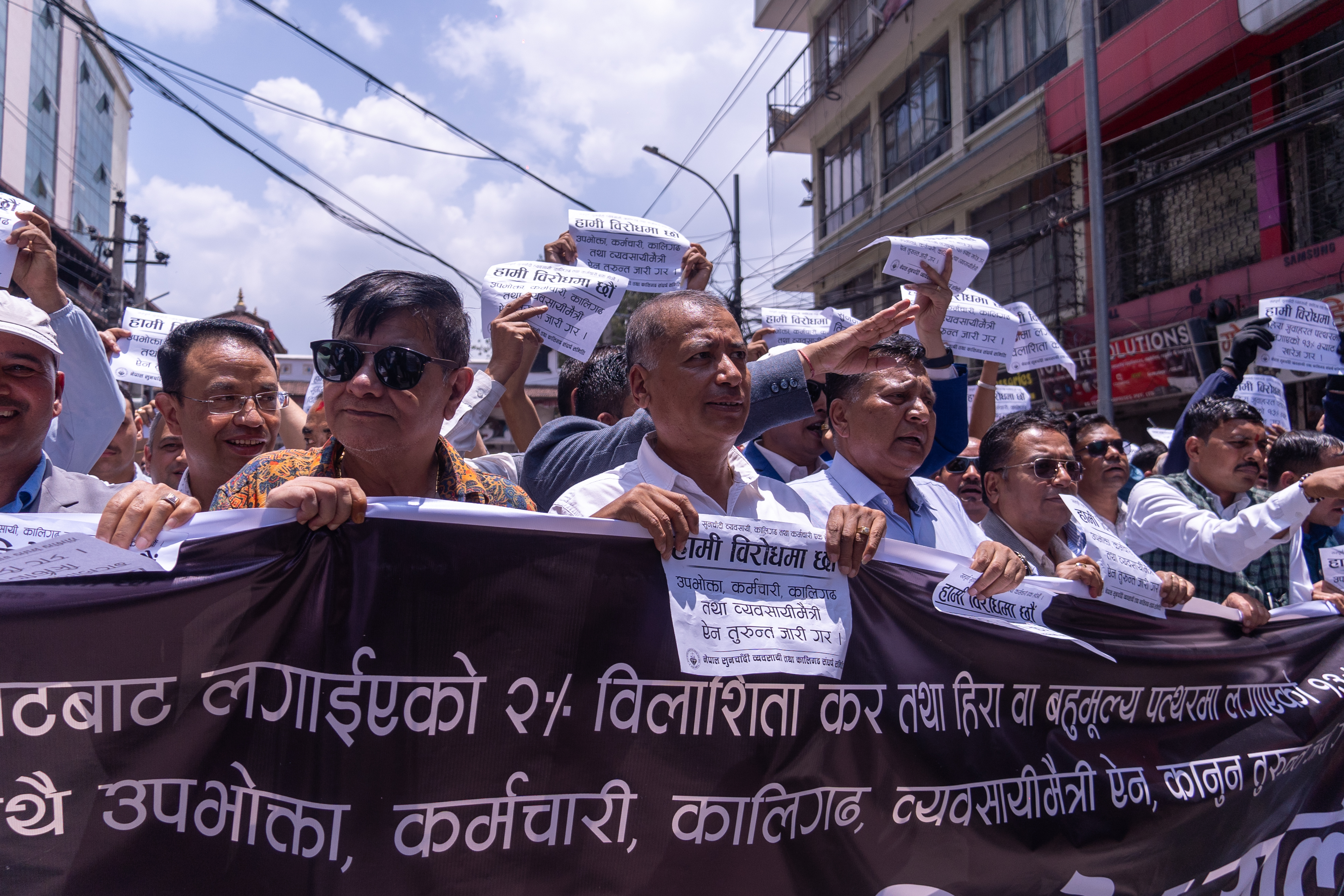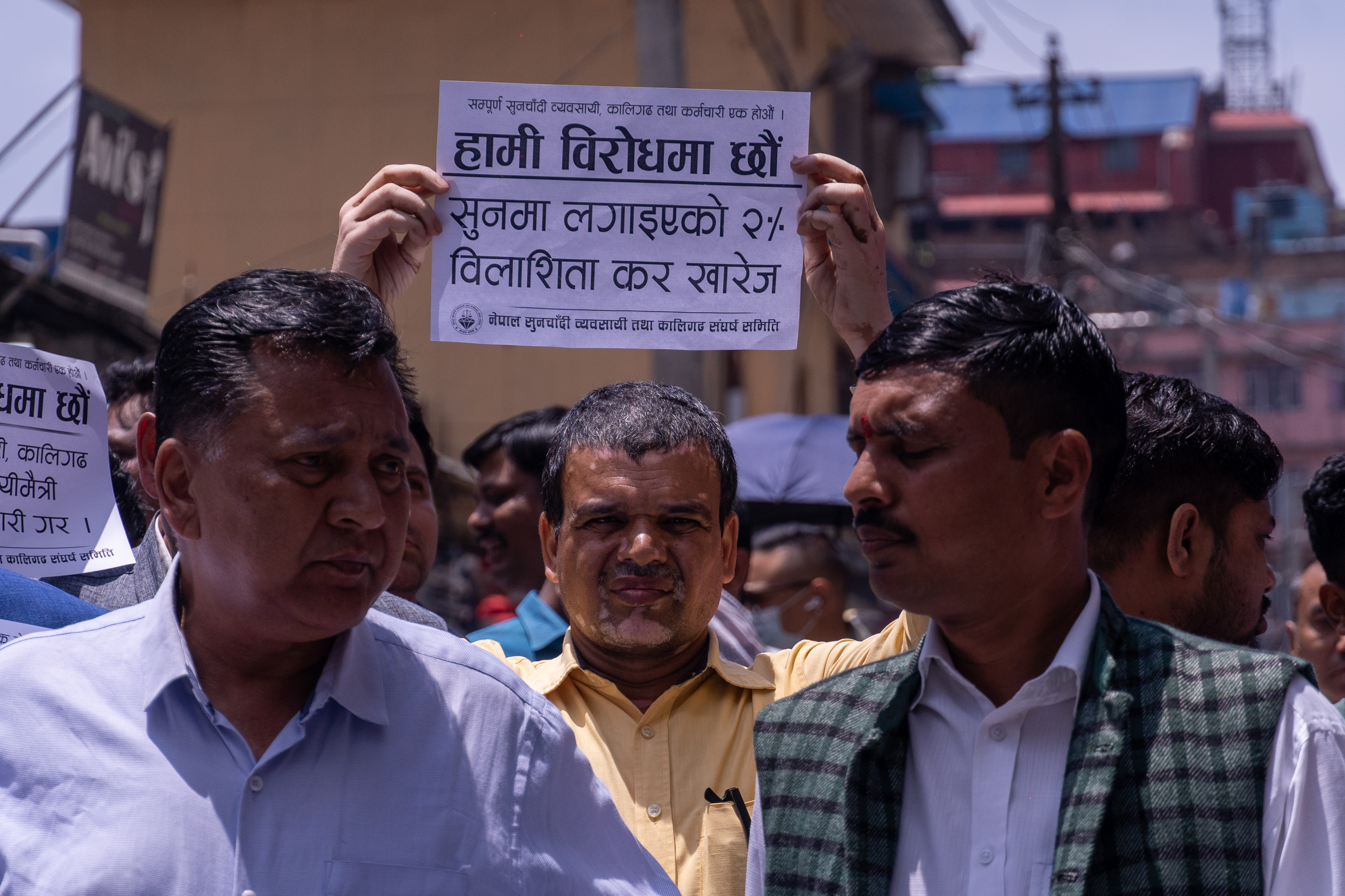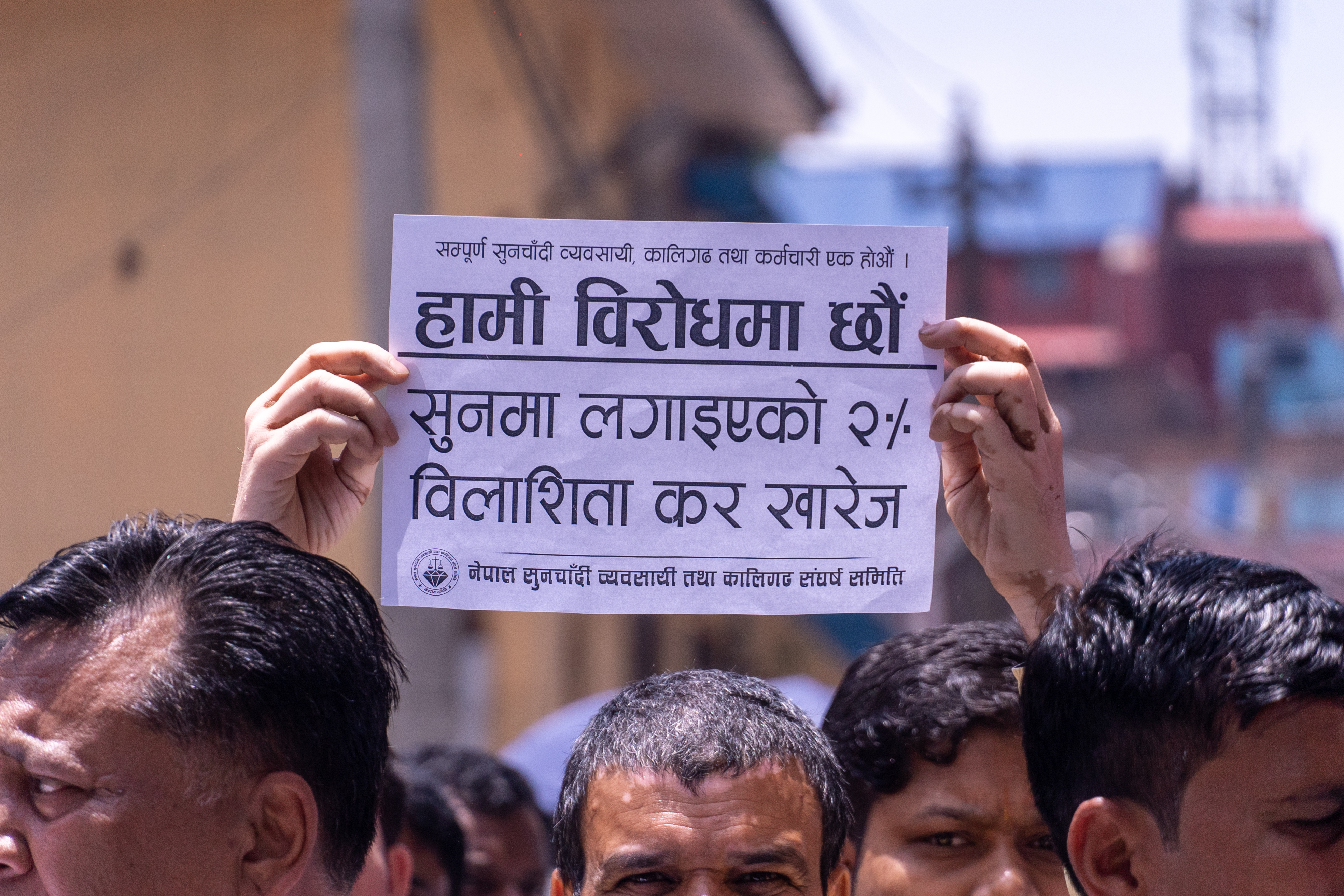 विलासी कर हटाउन माग गर्दै सुनचाँदी व्यवसायी सडकमा (तस्विरहरू)