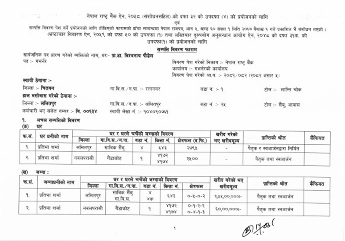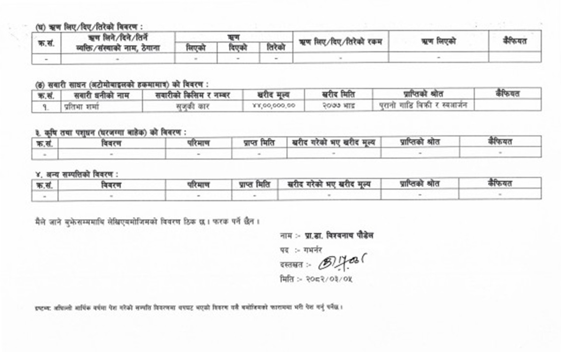 गभर्नर पौडेलको कुल सम्पत्ति कति?