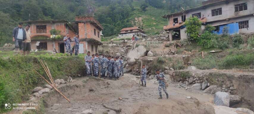सो घटना बारे जानकारी पाउनासाथ सशस्त्र प्रहरी बल नेपाल युएन तालिम शिक्षालय ककनी, नं. १९ गुल्म नुवाकोट र सुरक्षा वेश बञ्चरेबाट गरि  ६५ जना  सुरक्षा फौज उद्धारको लागि खटिएको छ। सो खोललो पशुचौपाय लगायत अन्य सामान बगाएको छ।