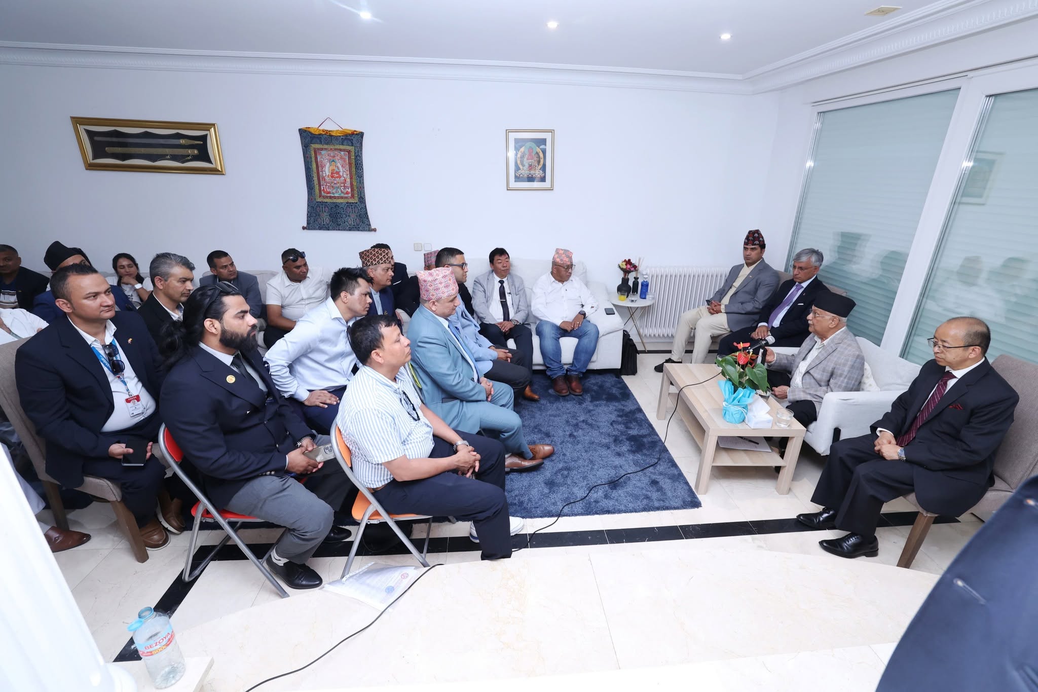 स्पेनका लागि नेपाली राजदूतको निवासमा भएको भेटमा एमाले निकट मञ्चका पदाधिकारीहरूले प्रधानमन्त्री ओलीलाई स्पेनमा स्वागत र सम्मानसहित प्रधानमन्त्री ओलीको नेतृत्वमा नेपालमा भइरहेको विकास र समृद्धिको यात्राको सफलताको कामना पनि गरेका छन्।
