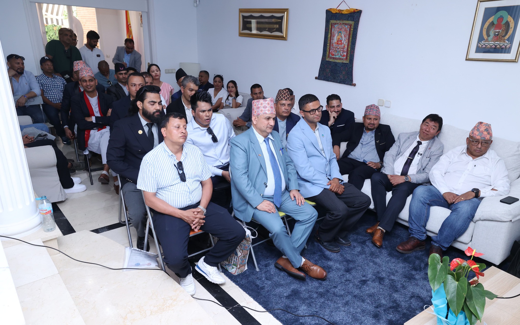 भेटका क्रममा प्रधानमन्त्रीका मुख्य सल्लाहकार एवम् एमालेका उपमहासचिव विष्णुप्रसाद रिमाल, स्पेनका लागि नेपाली राजदूत शनिल नेपाल,एनआरएनए स्पेनका अध्यक्ष पेशल कोइराला, प्रवासी नेपाली मञ्च, अन्तर्राष्ट्रिय कमिटीका सचिव एवं संगठन विभाग प्रमुख हेम शेर्पा, युरोप महादेश कमिटीका संयोजक मुक्तबहादुर गुरुङ, मञ्चका स्पेन अध्यक्ष केदार ढुंगाना, मेड्रिड कमिटीका अध्यक्ष शिवराज सिग्देल र पोर्चुगलका अध्यक्ष दीपक क्षेत्रीलगायत सहभागी थिए।