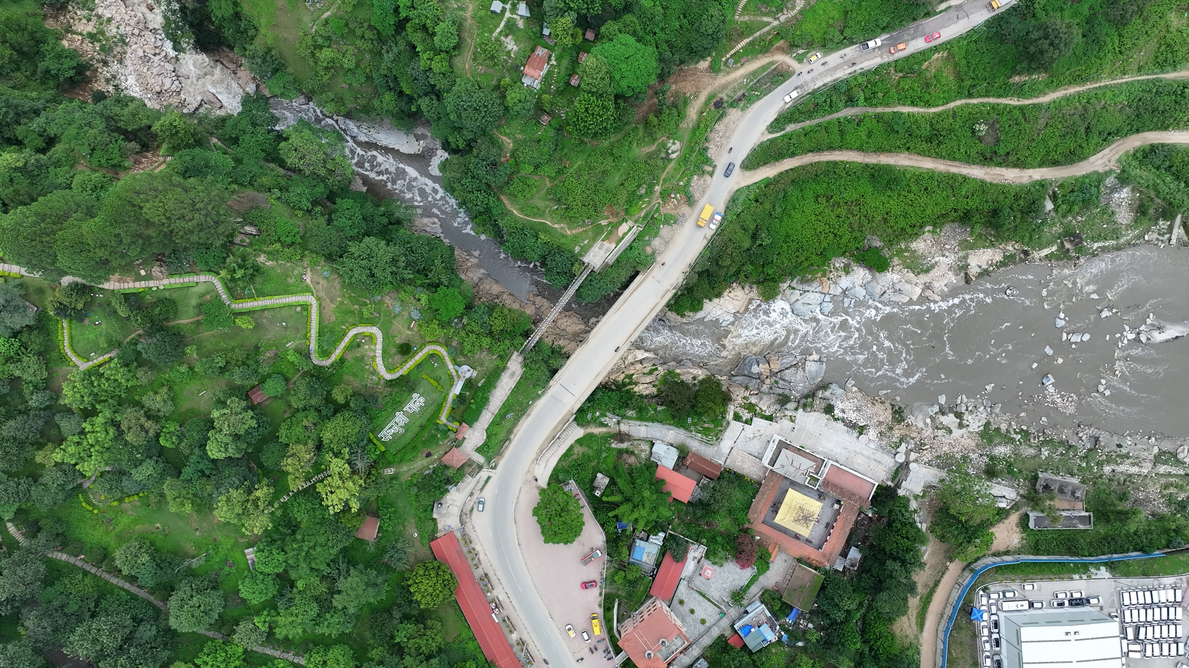 यस्तो देखियो ड्रोनबाट काठमाडौं उपत्यकाको निकास विन्दु: चोभार गल्छी (फोटोफिचर)