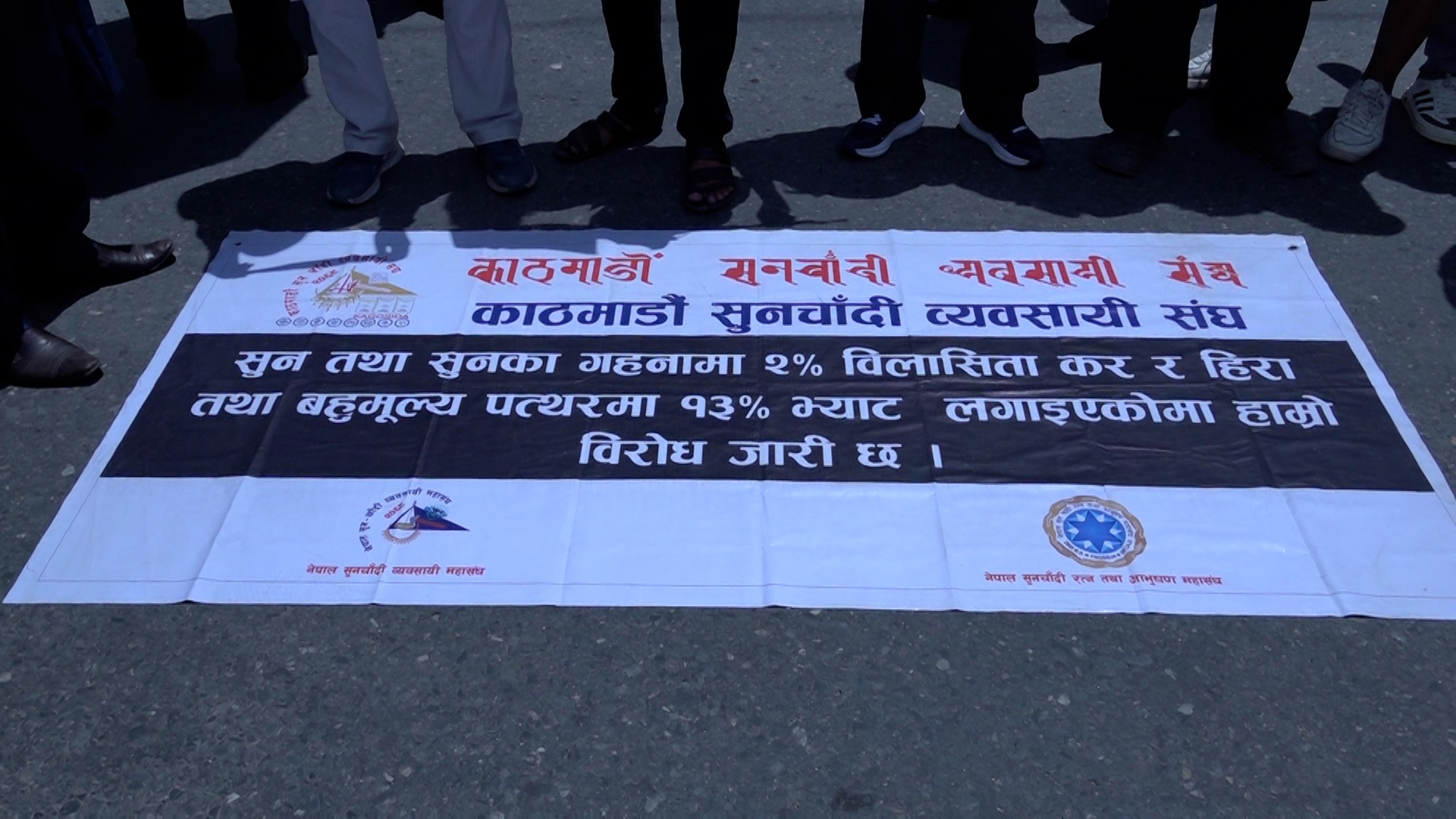काठमाडौं। नेपाल सुनचाँदी व्यवसायी महासंघ र नेपाल सुनचाँदी रत्न तथा आभूषण महासंघले काठमाडौंको न्यूरोड क्षेत्रमा संयुक्त रूपमा विरोध प्रदर्शन गरेका छन्।