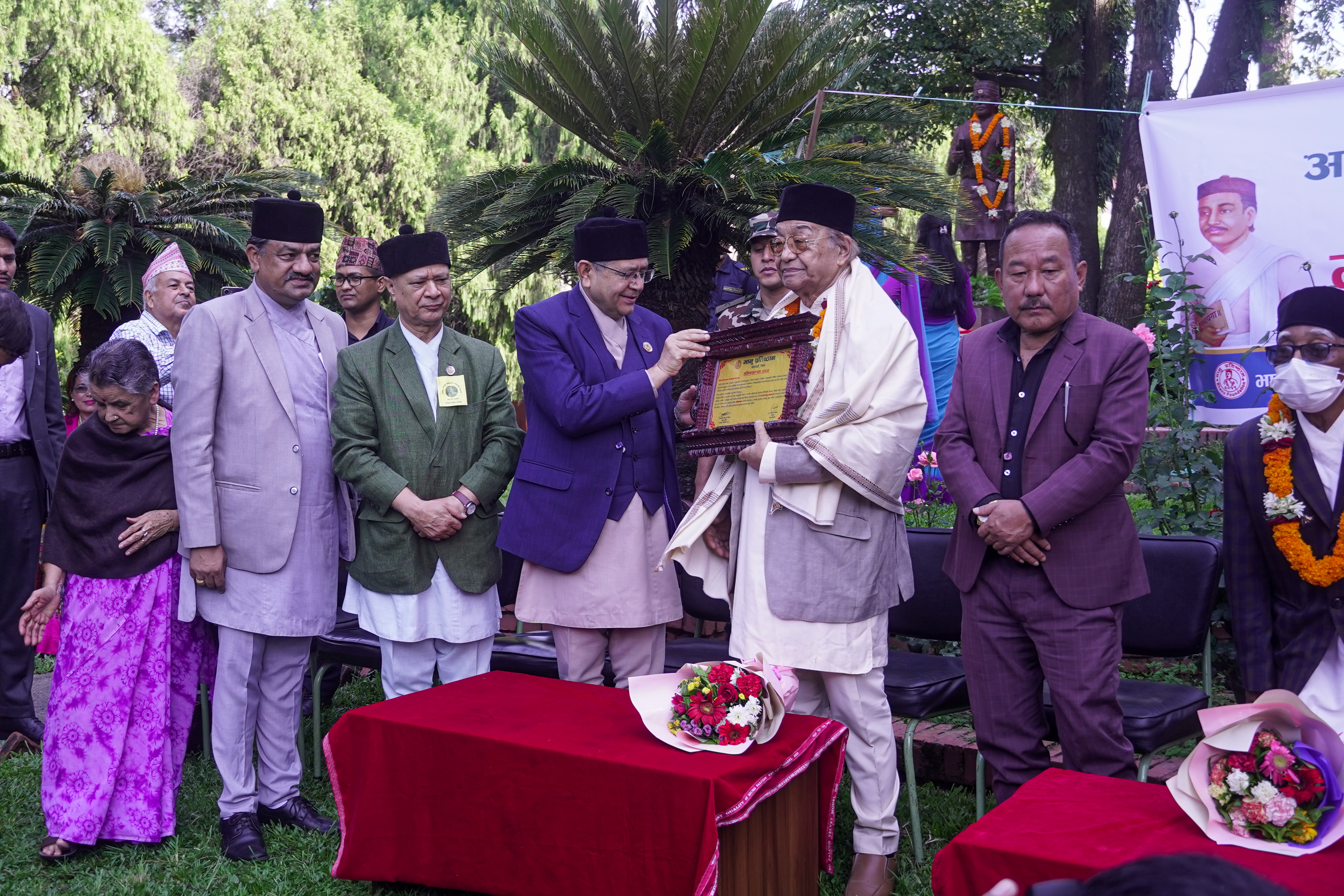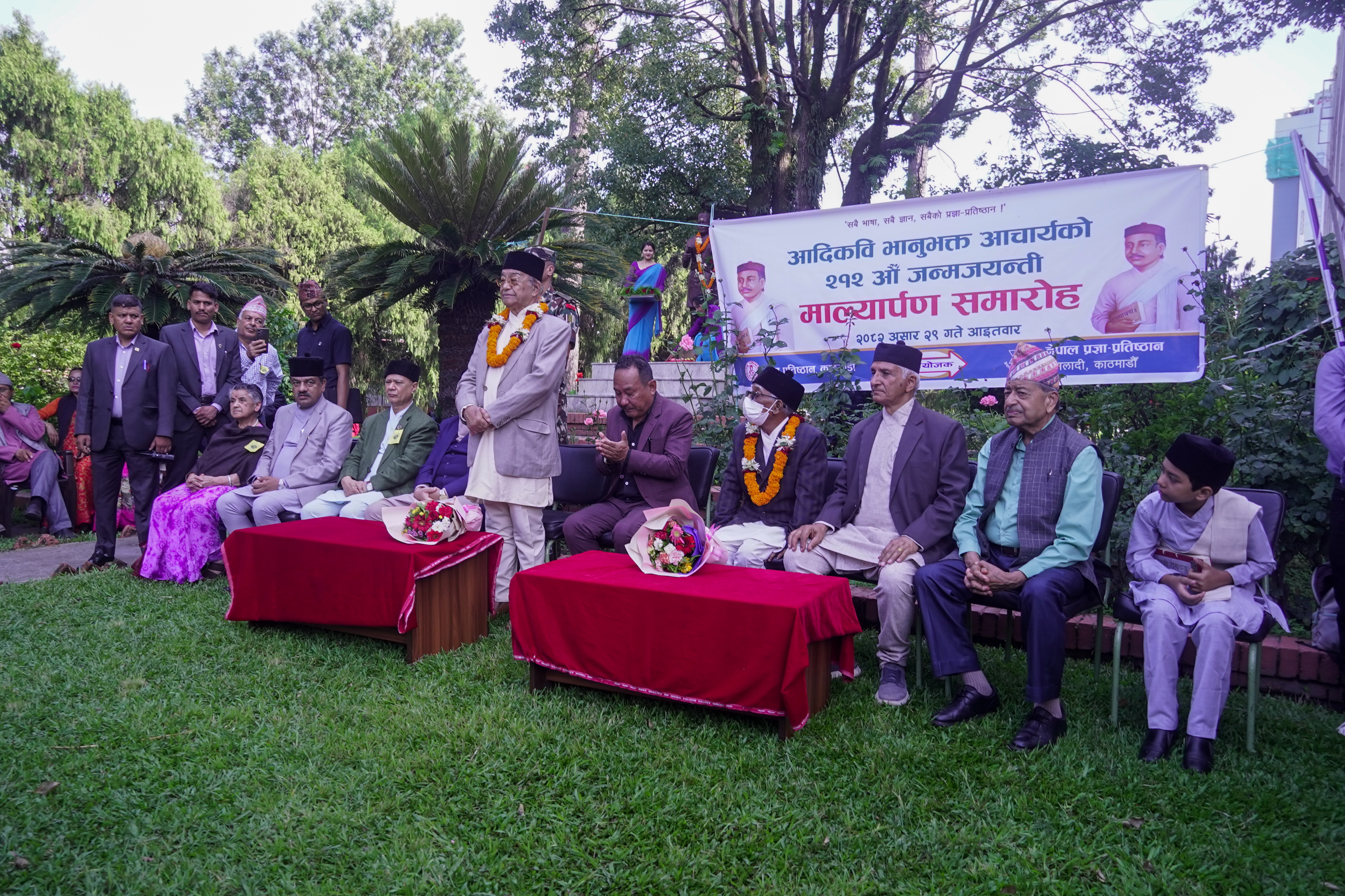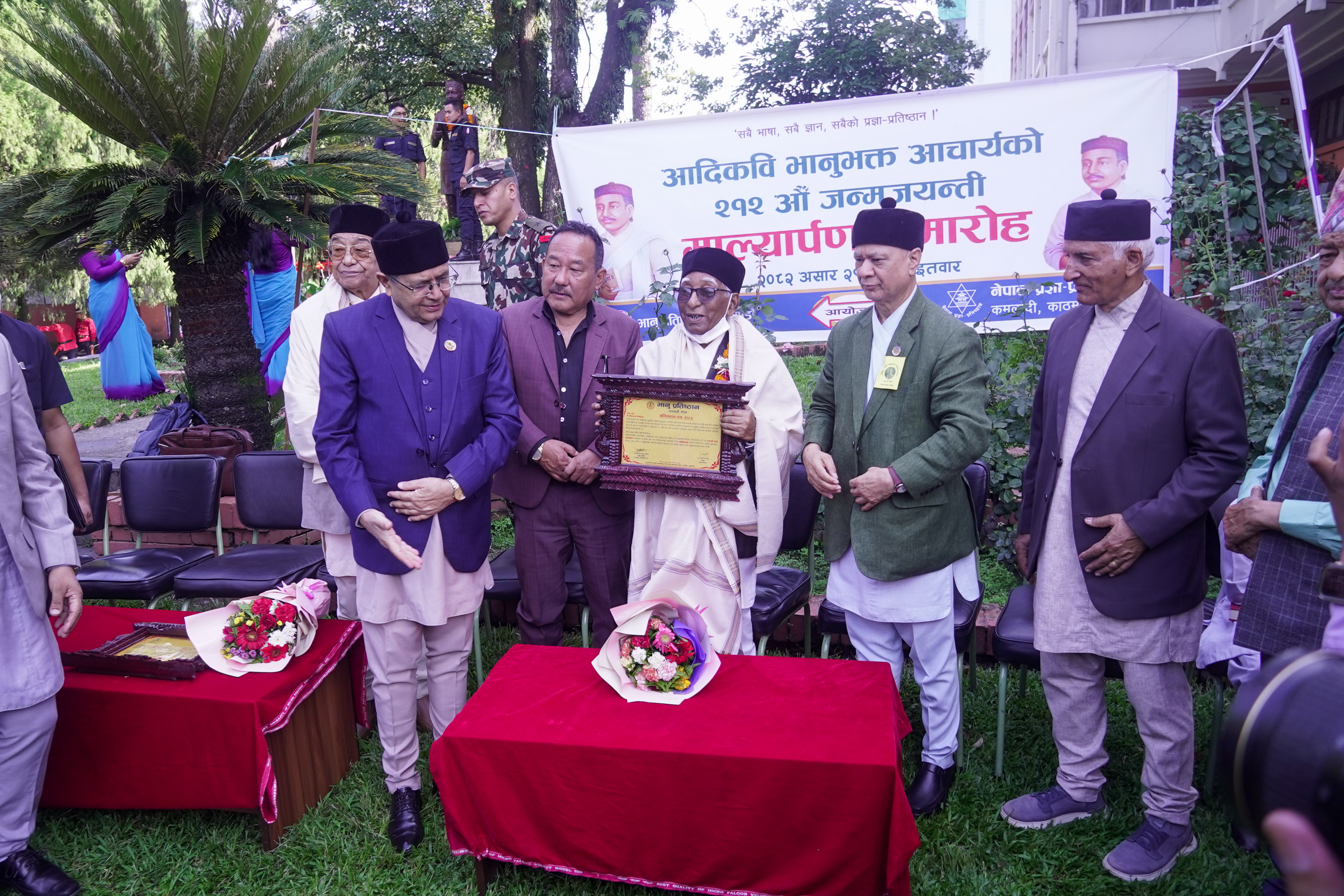 २१२ औं जन्मजयन्तीको अवसरमा भानुभक्तको पूर्ण कदको सालिकमा माल्यार्पण (तस्विर)