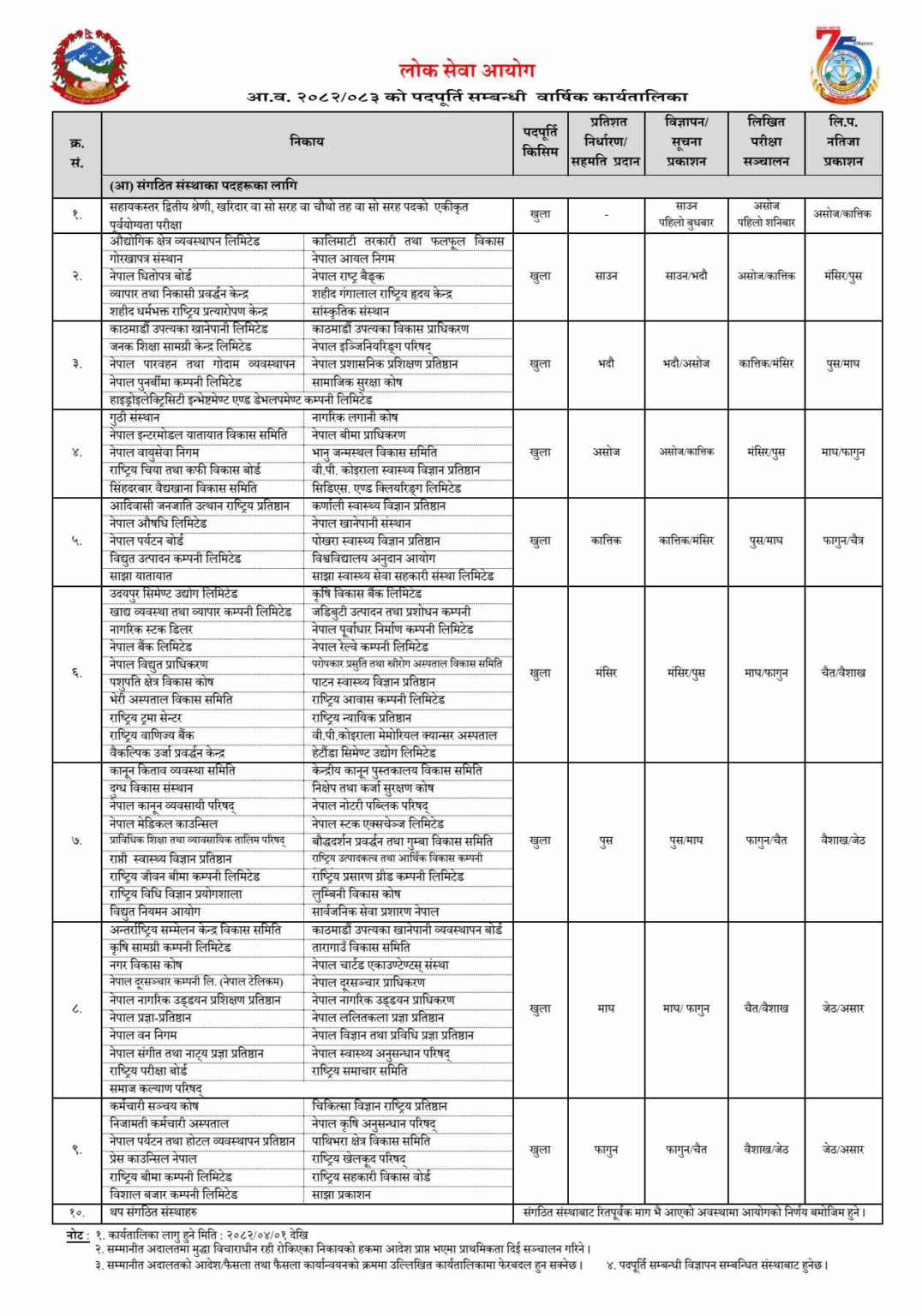 कुन पदको विज्ञापन कहिले? यस्तो छ लोकसेवाको वार्षिक कार्यतालिका