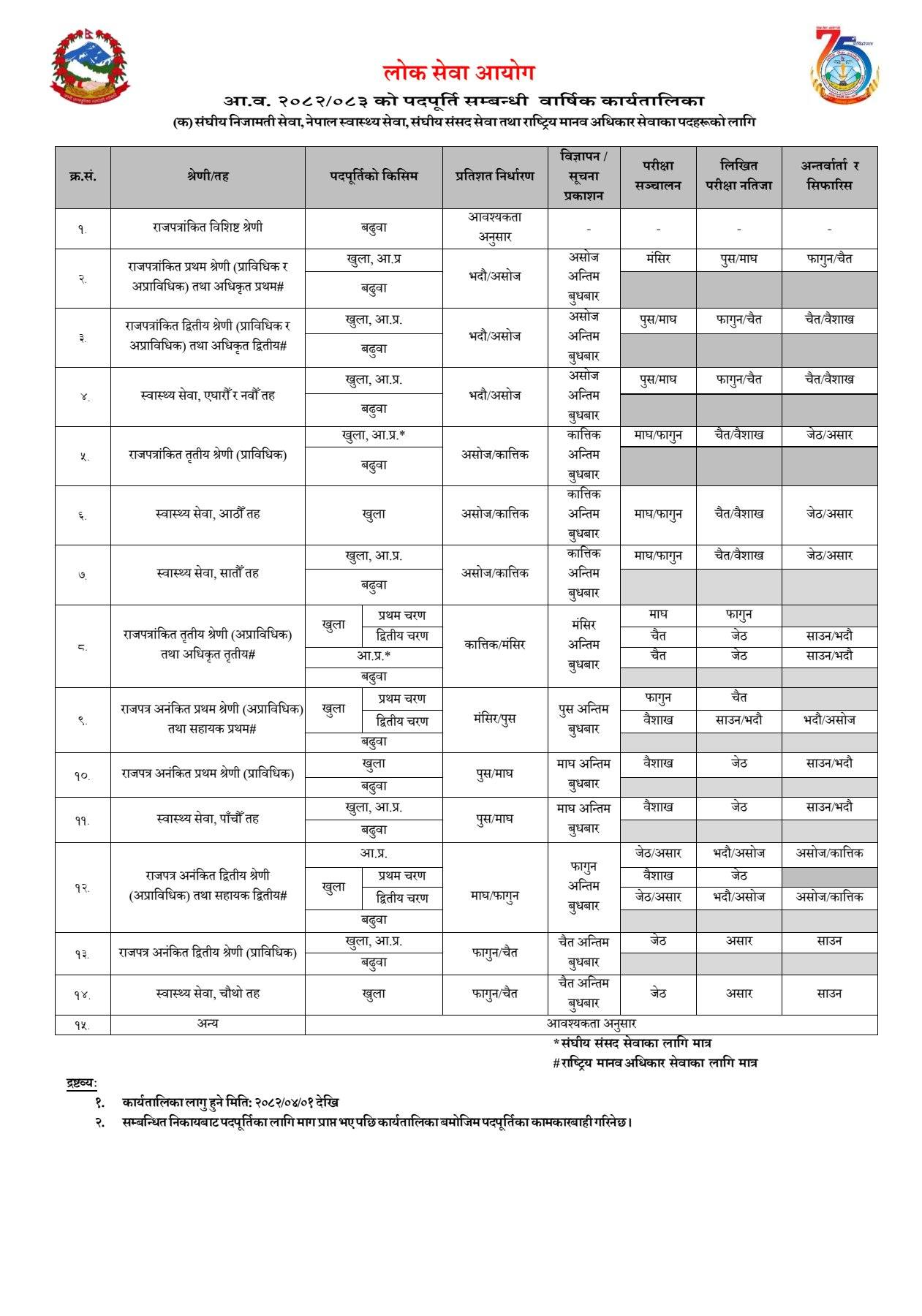 कुन पदको विज्ञापन कहिले? यस्तो छ लोकसेवाको वार्षिक कार्यतालिका