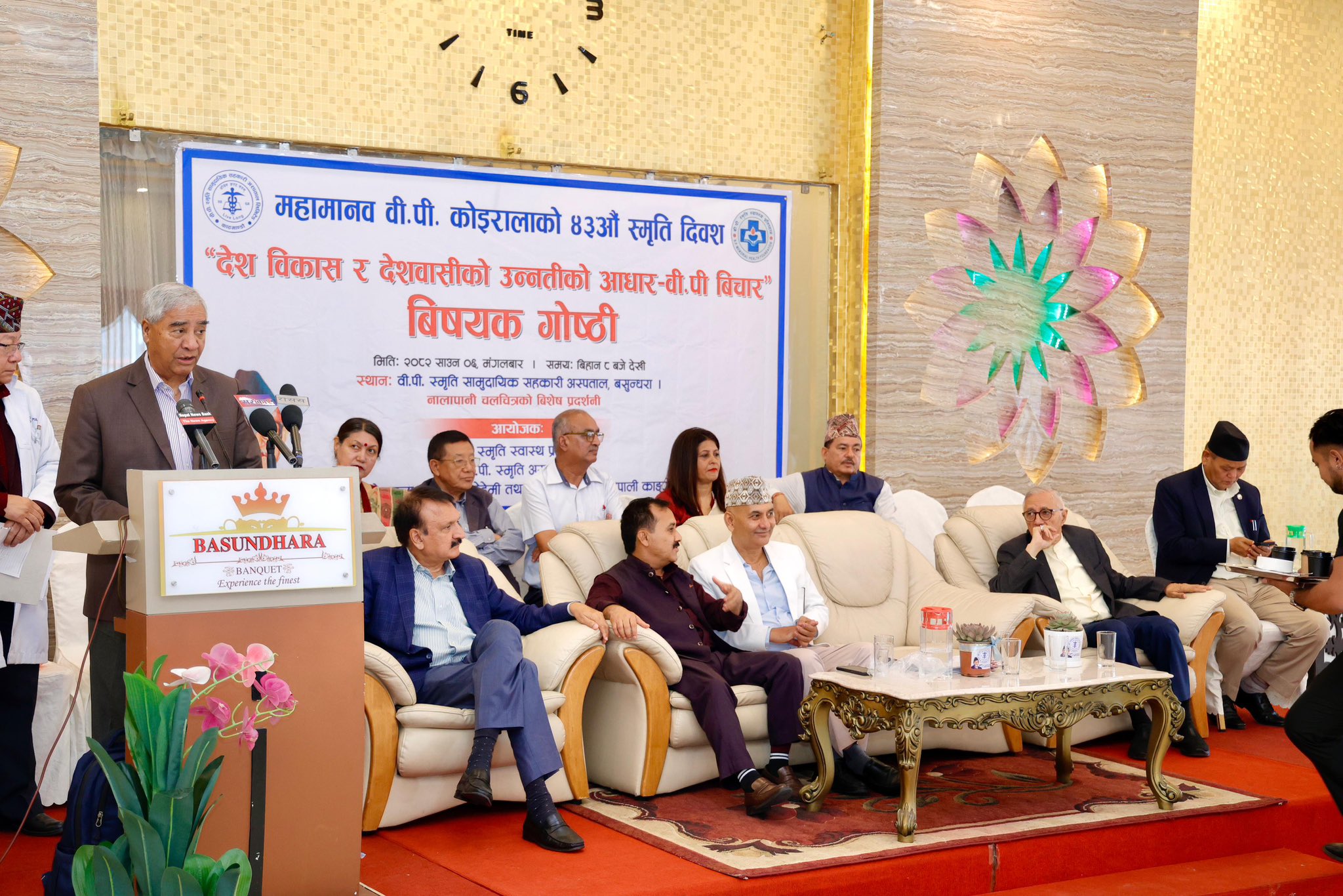 साे अवसरमा सभापति देउवाले नेपालको राजनीति बिपी कोइरालाले अपनाएको राष्ट्रिय नीतिको जगमा उभिएको बताए।