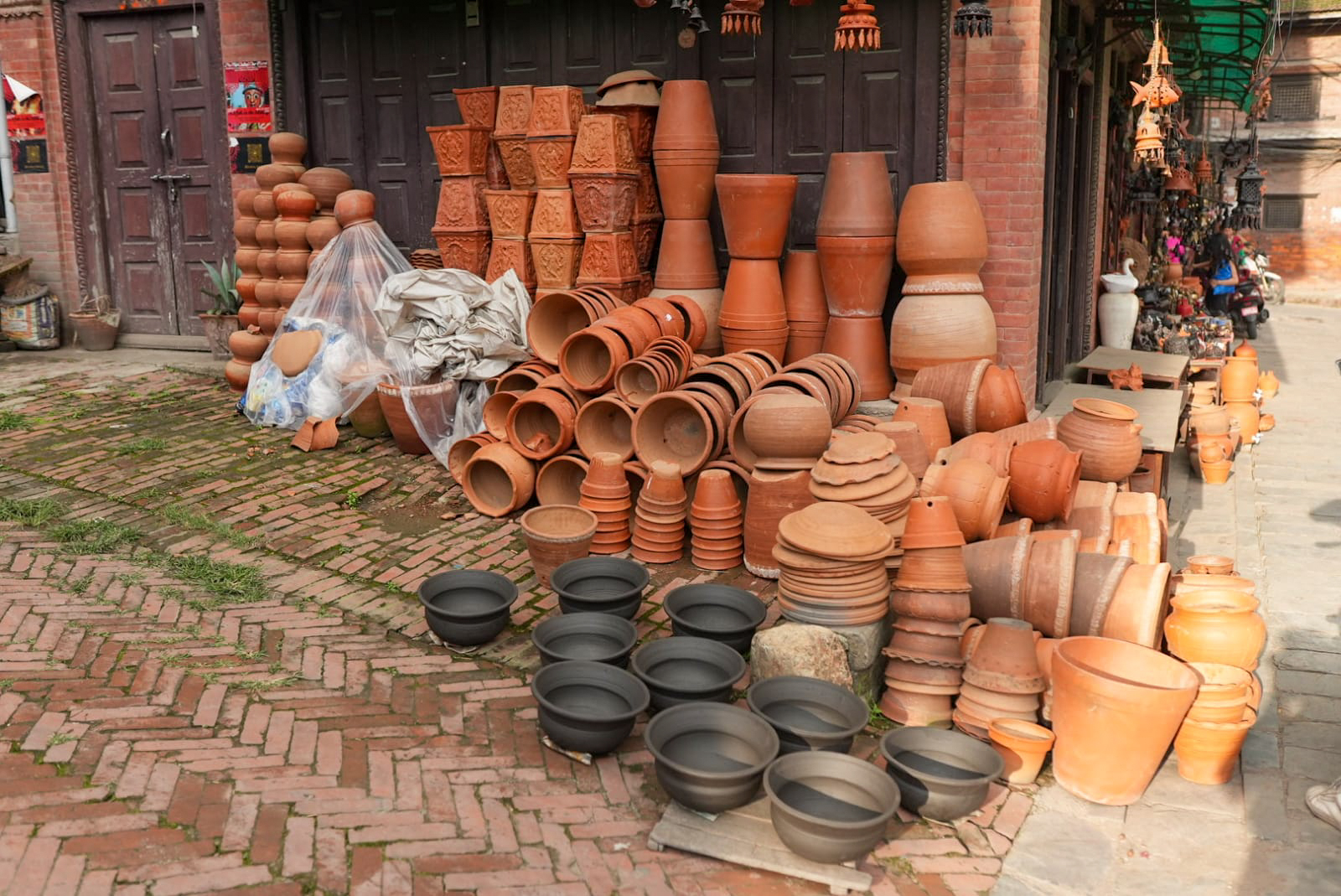 भक्तपुर। भक्तपुरको दरबार स्क्वायरसँगै रहेको ‘पोटरी स्क्वायर’मा स्थानीयहरु माटोको विभिन्न भाँडाकुँडा बनाउन व्यस्त छन्।