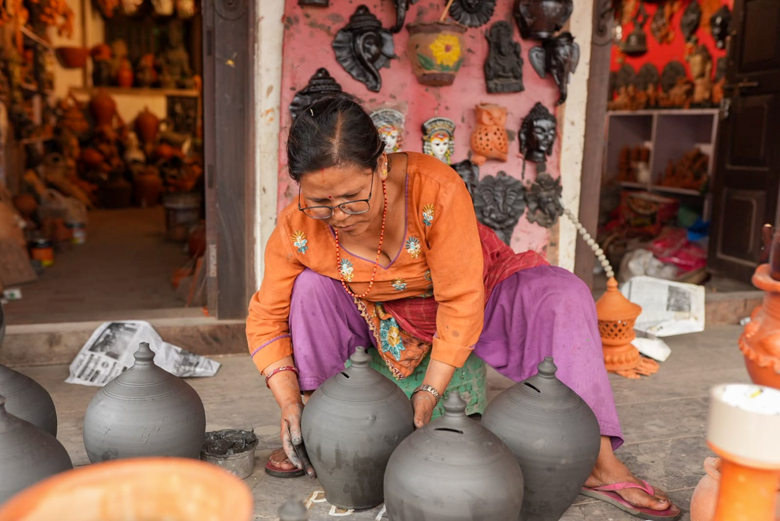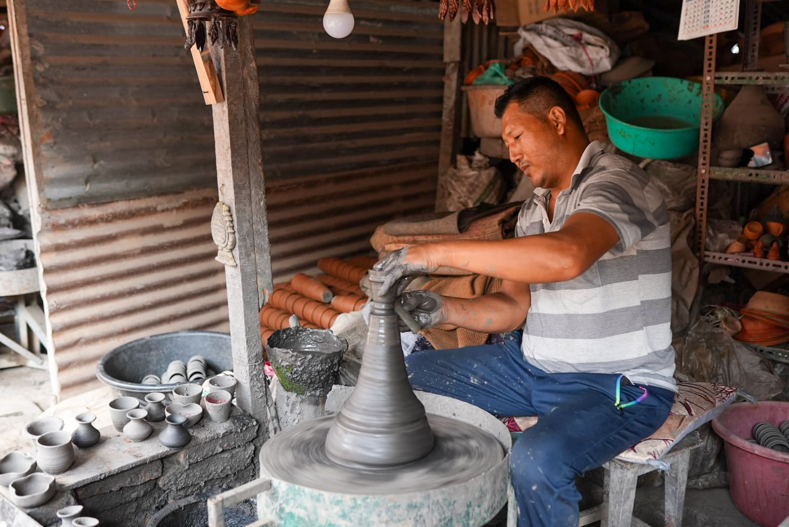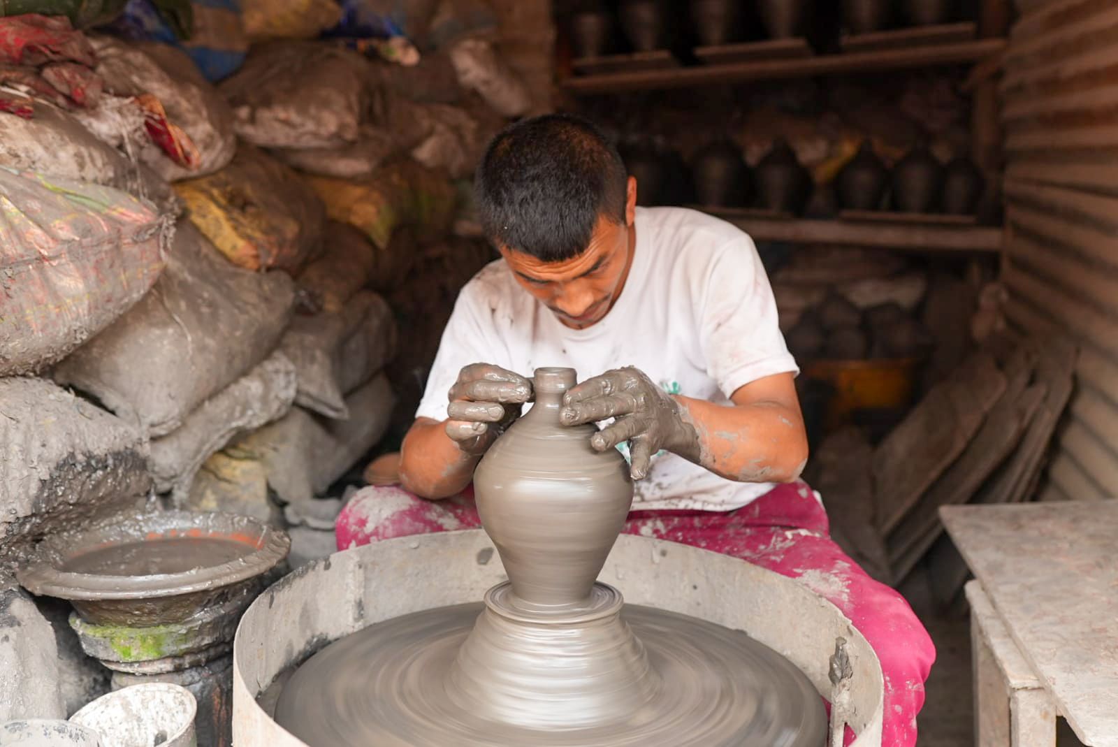 भक्तपुरको ‘पोटरी स्क्वायर’मा स्थानीय माटोको भाँडा बनाउनमा व्यस्त (फोटोफिचर)