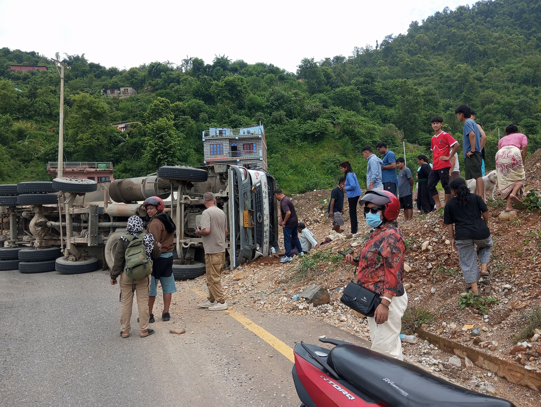 पृथ्वी राजमार्गमा ट्याङ्कर दुर्घटना