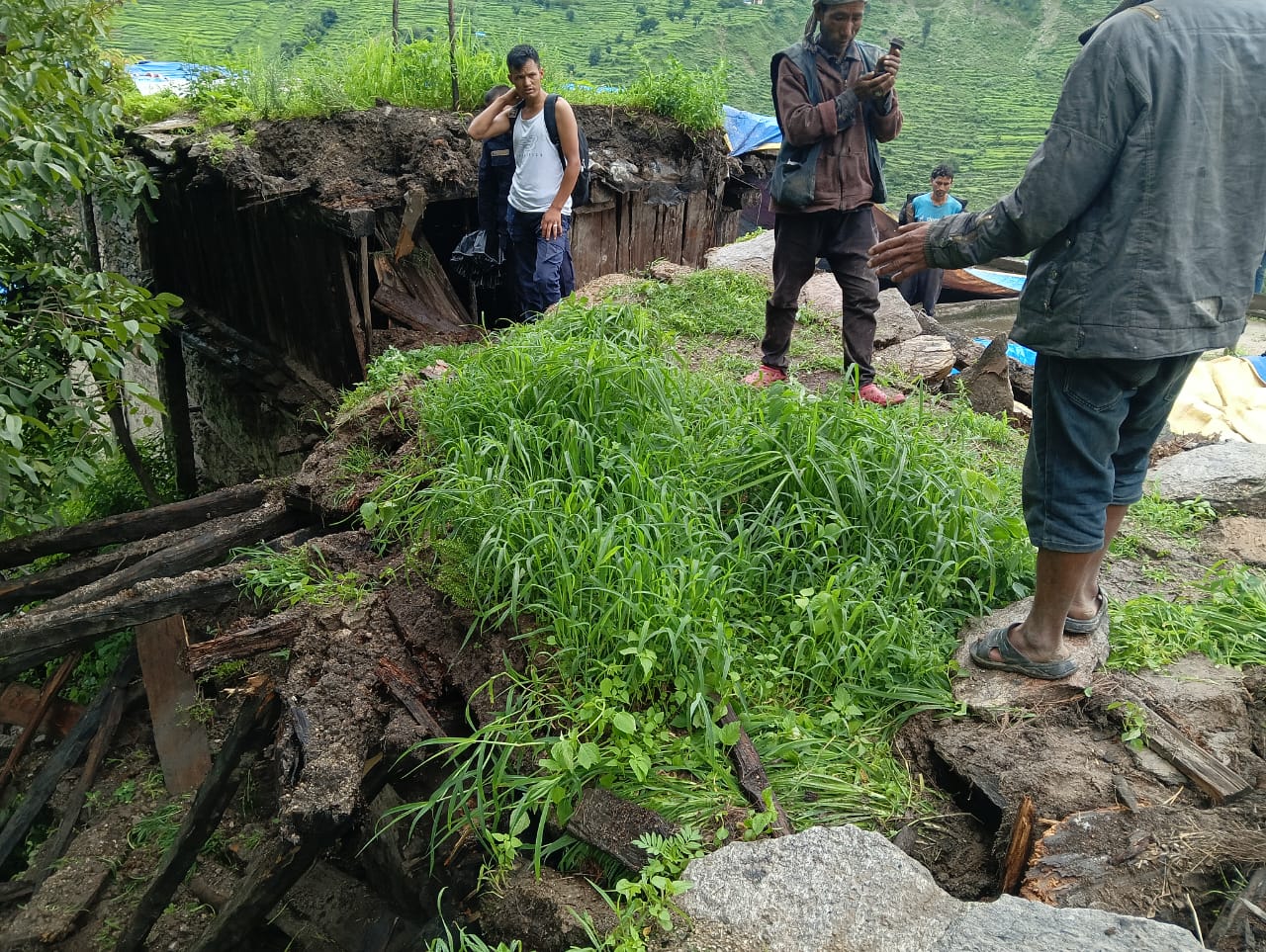 तीन दिनसम्म लगातार परेको वर्षात्का कारण साउन १४ गते बेलुका ५ बजेतिर चार घर भत्किँदा सँगै जोडिएका अन्य पाँच घरमा आंशिक क्षति पुगेको स्थानीय देवी कृष्ण बुढाले जानकारी दिए। बुढाका अनुसार घर भत्किँदा मानवीय क्षति नभएपनि घरभित्र रहेका अन्न, भाँडाकुँडा, लत्ताकपडा, अन्नबाली, गरगहनालगायत अन्य उपभोग्य सामग्री सबै नष्ट भएको छ।