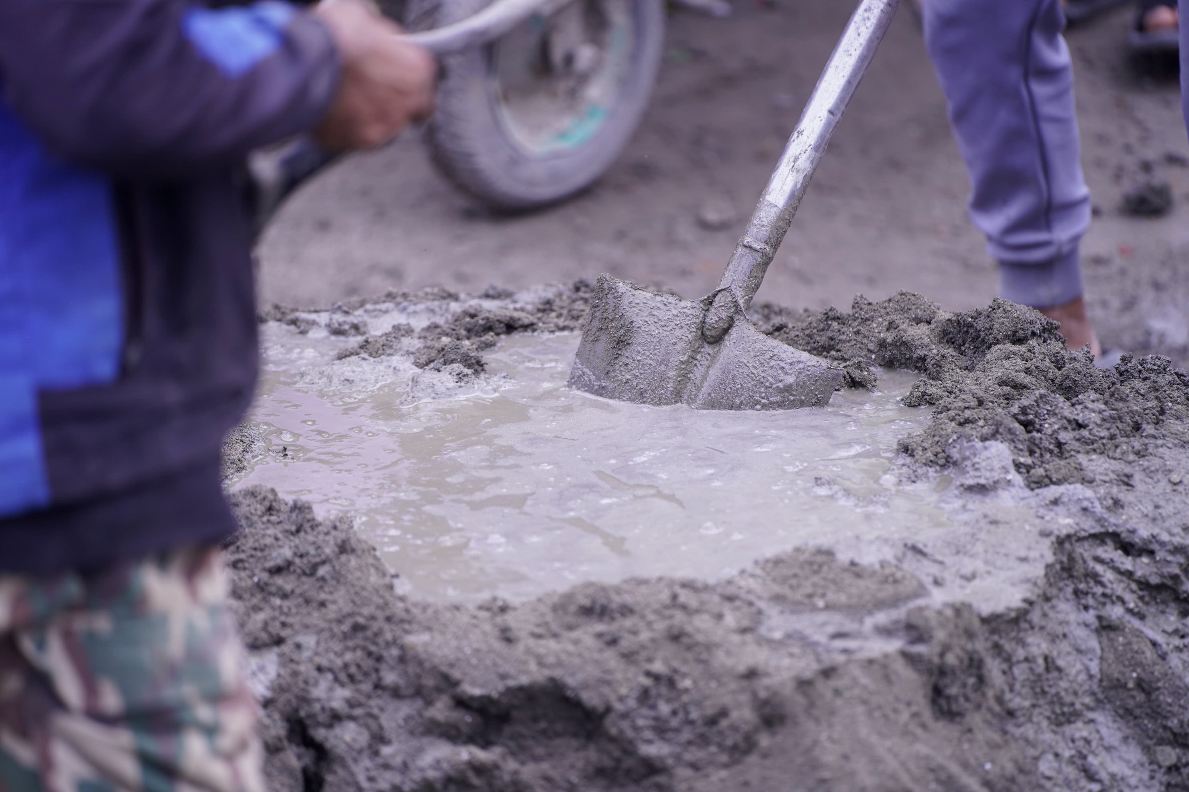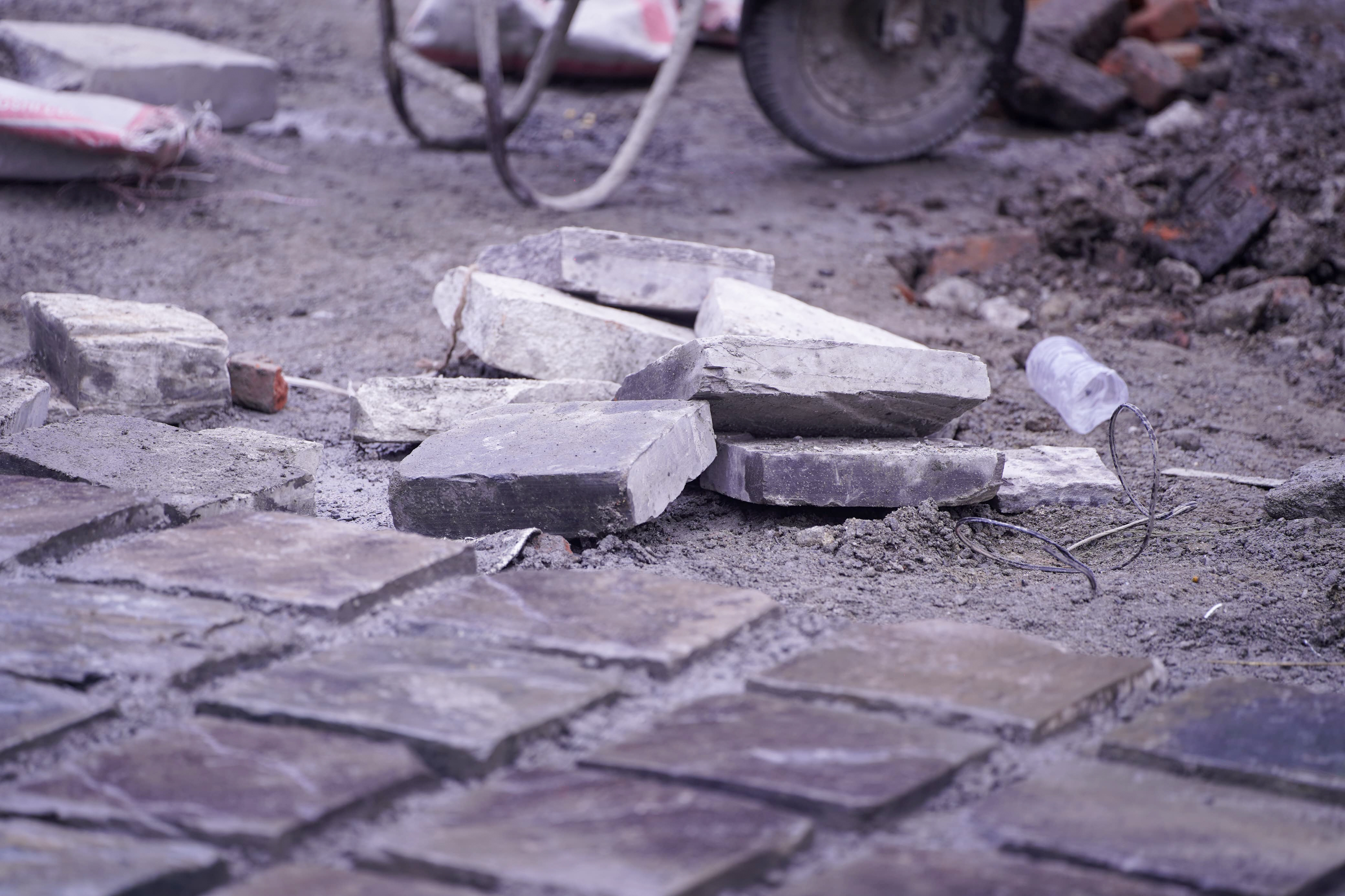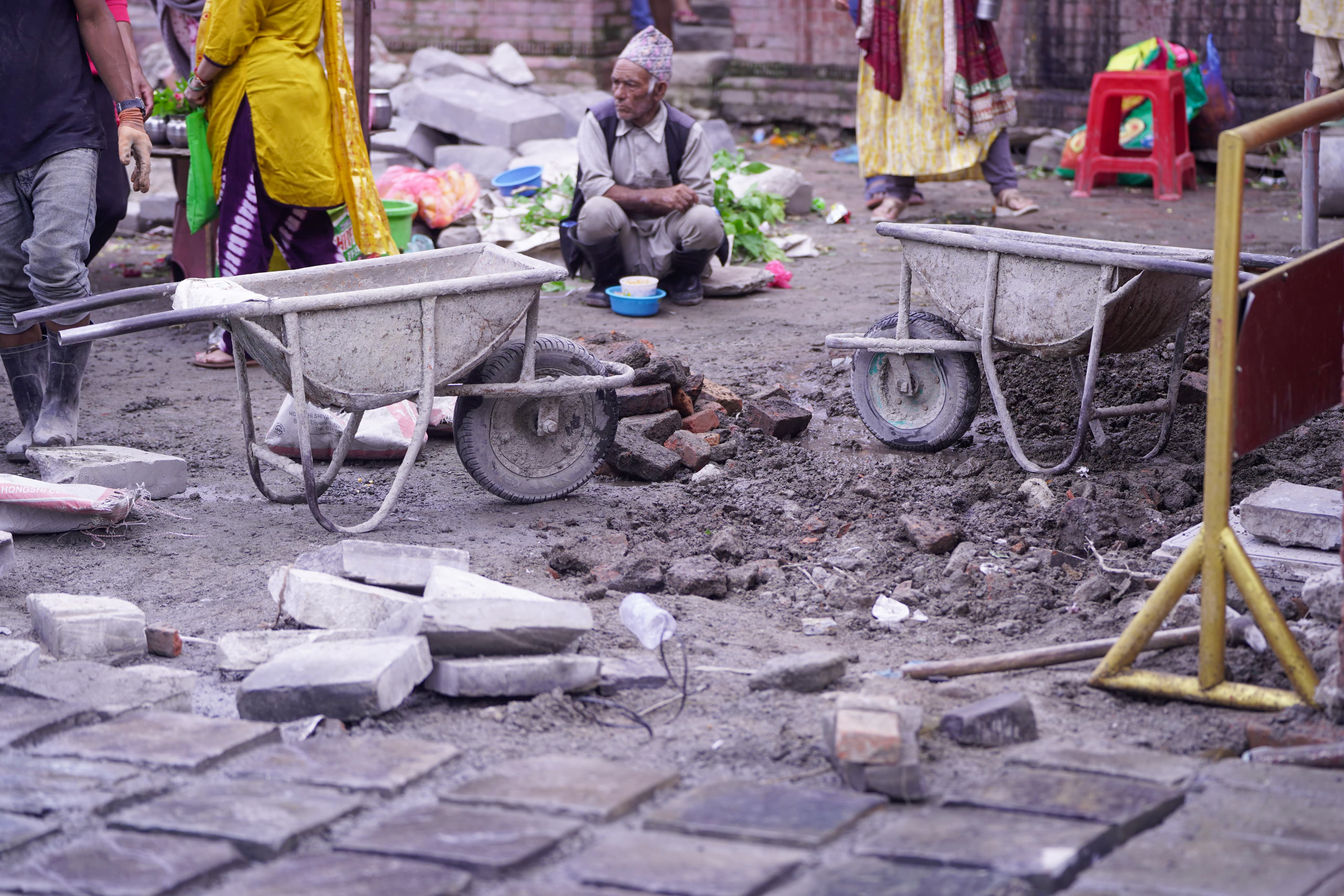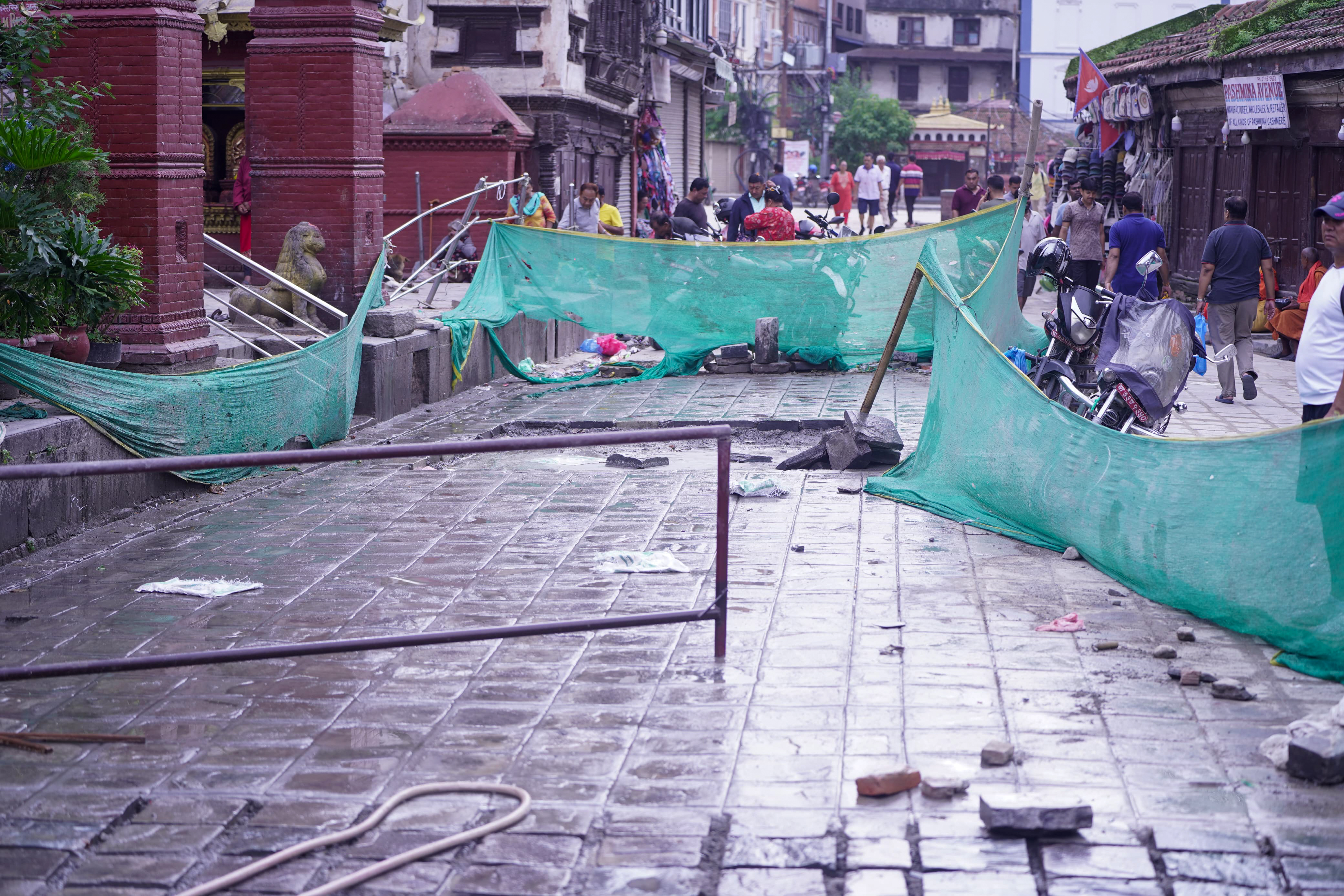 बसन्तपुर दरबार स्क्वायर प्रवेशद्वारमा ढुंगा छाप्ने काम गर्दै महानगर (तस्विरहरू)
