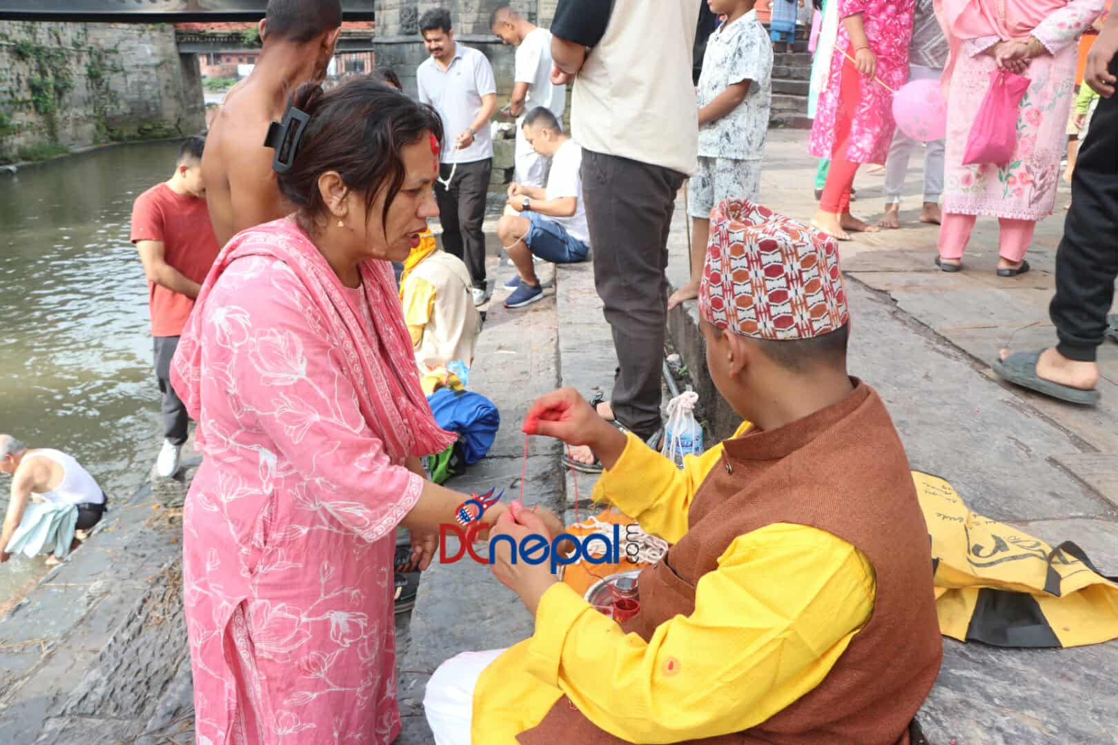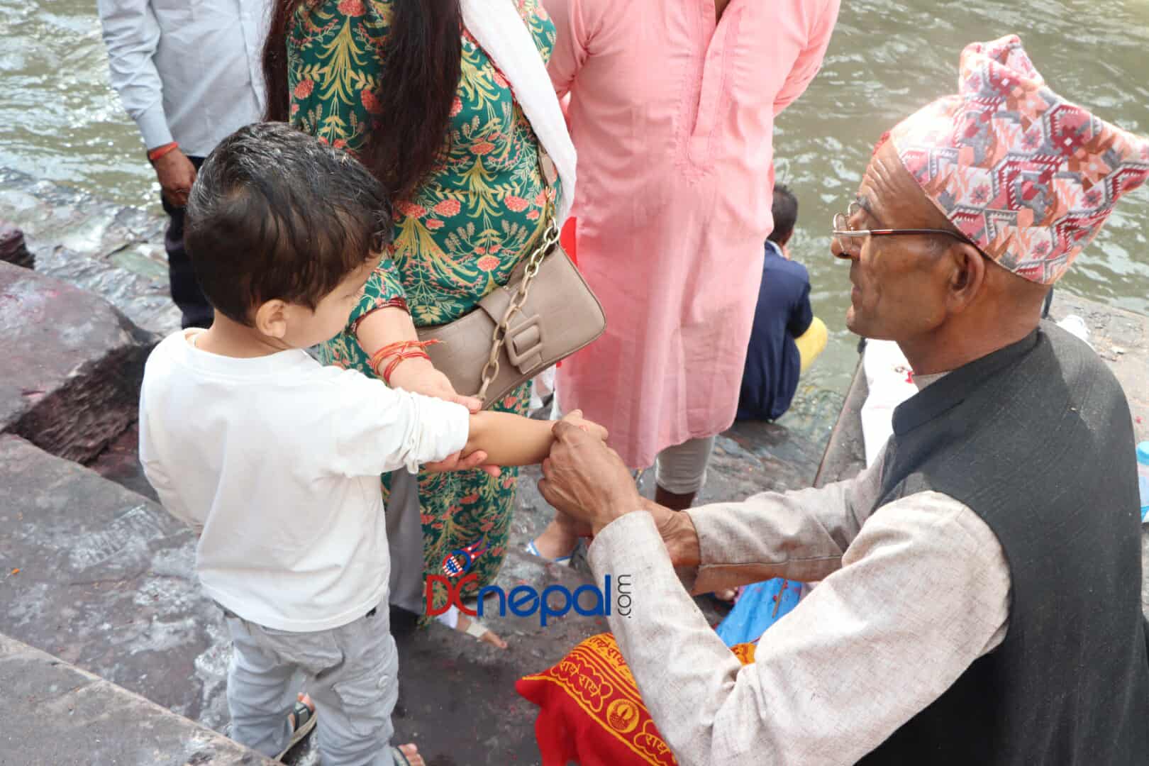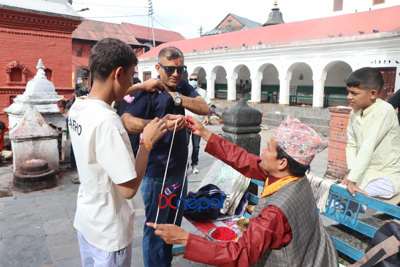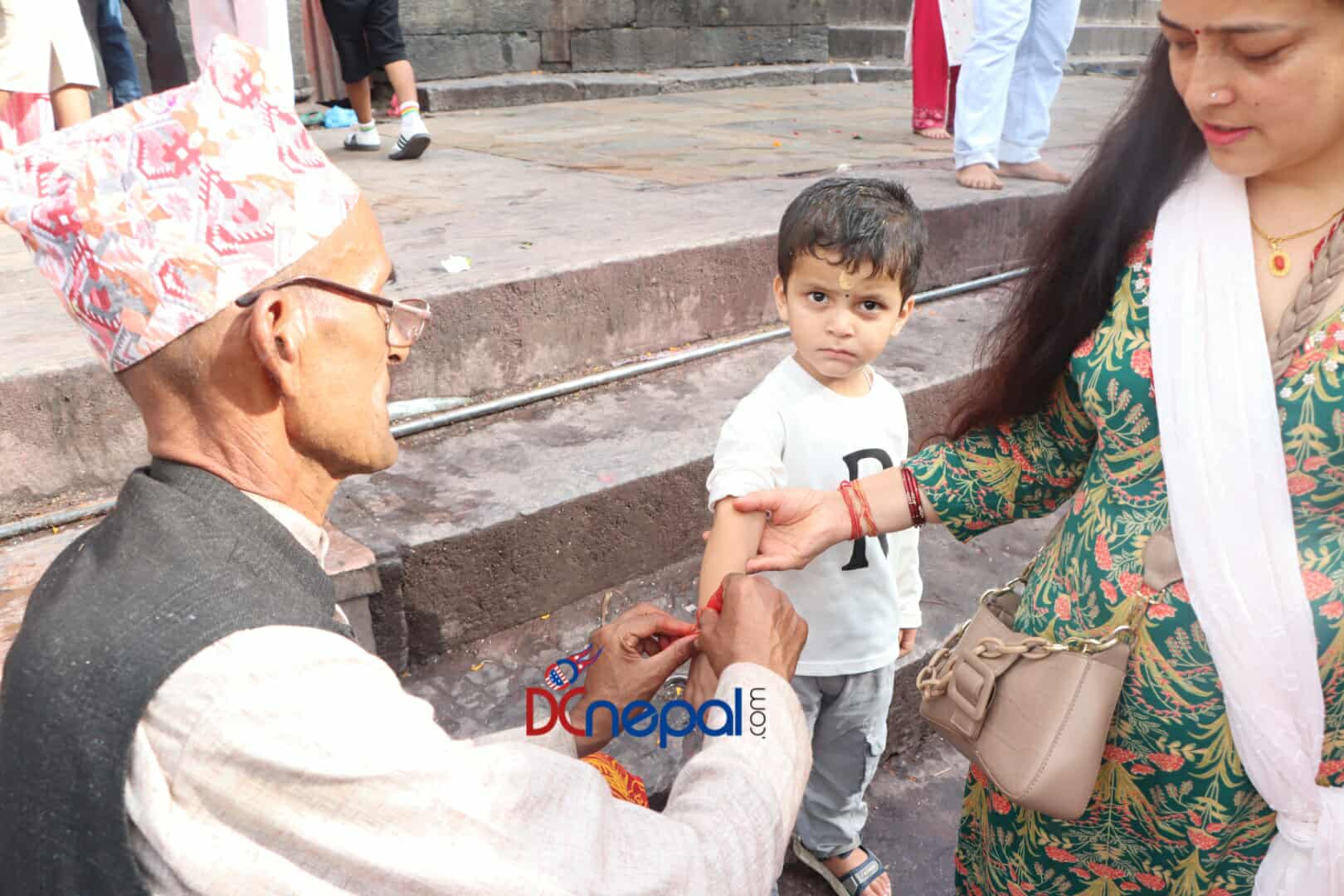 जनै पूर्णिमामा पशुपतिनाथमा नव यज्ञोपवीत एवम् रक्षाबन्धन धारण गर्नेको घुइँचो (तस्बिर)