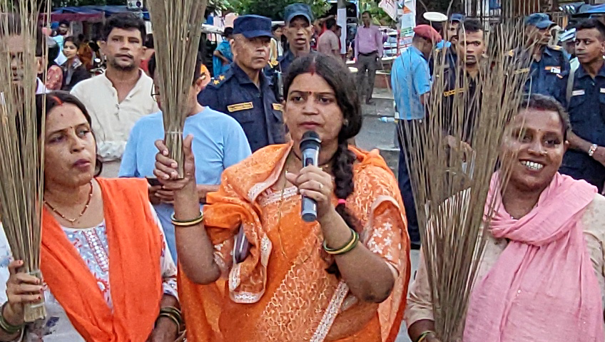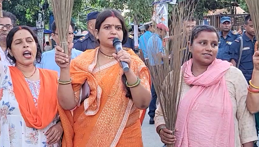समाजवादी महिला संघ धनुषाद्वारा जनकपुरधाममा झाडुसहित प्रदर्शन