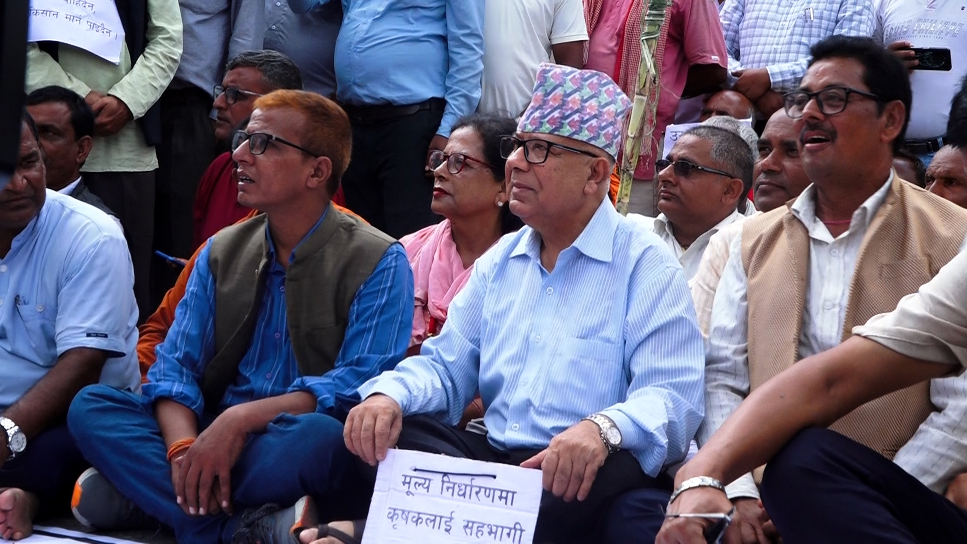 मंगलबार माइतीघरमा उखु किसानहरुको आन्दोलनमा नेताहरु माधव कुमार नेपाल, डा. बाबुराम भट्टराई, नारायणकाजी श्रेष्ठलगायतका नेता आन्दोलनरत किसानको मागप्रति ऐक्यबद्धता जनाए।