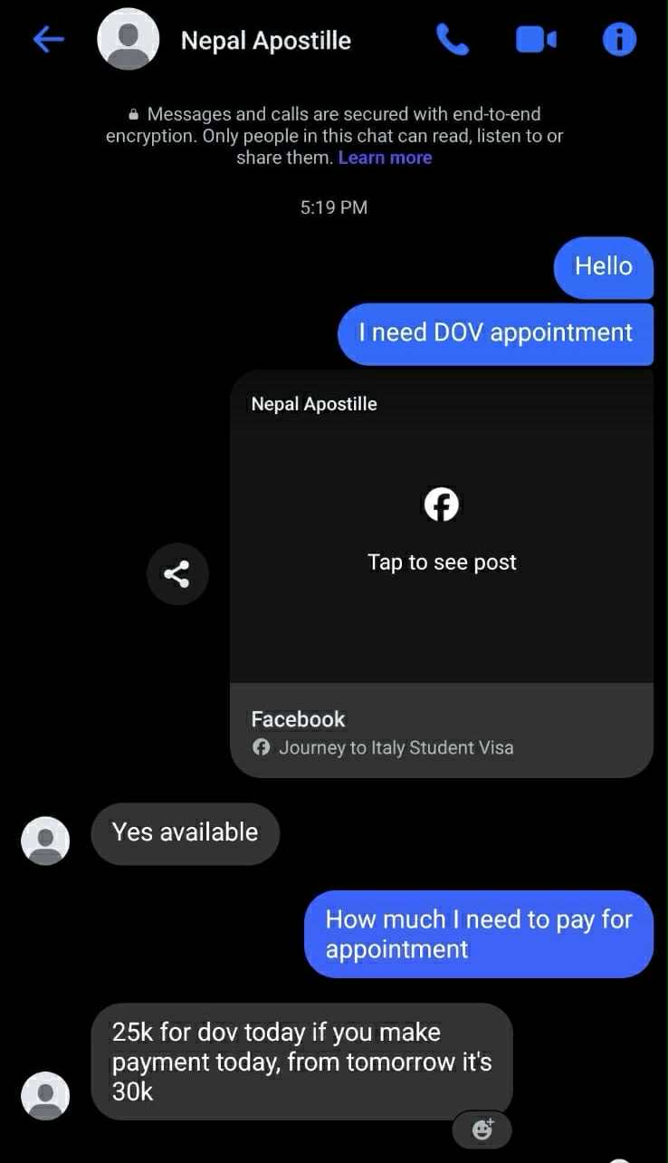 अपोइन्टमेन्टको अभावले गर्दा एक किसिमको अनौपचारिक ‘कालोबजारी’ फस्टाएको छ। केही व्यक्तिहरूले अपोइन्टमेन्टको स्लट बेच्नका लागि विद्यार्थीहरूसँग ३० हजार रुपैयाँसम्म माग गरेको आरोप लागेको छ। डिसी नेपालसँग पनि यसबारे प्रमाण रहेको छ। यो अवैध धन्दाले विद्यार्थीहरूलाई आर्थिक र मानसिक रूपमा थप कमजोर बनाएको छ।