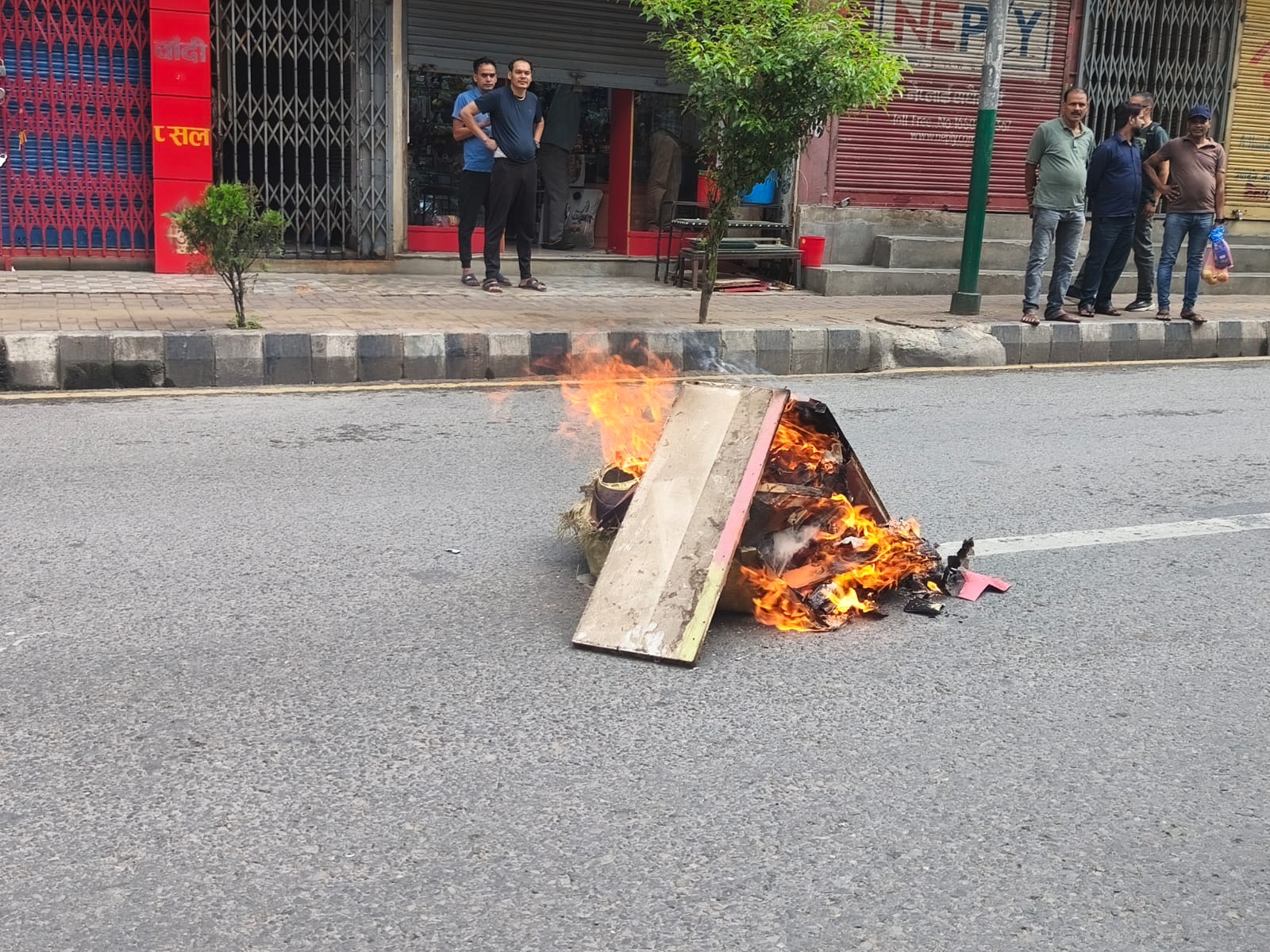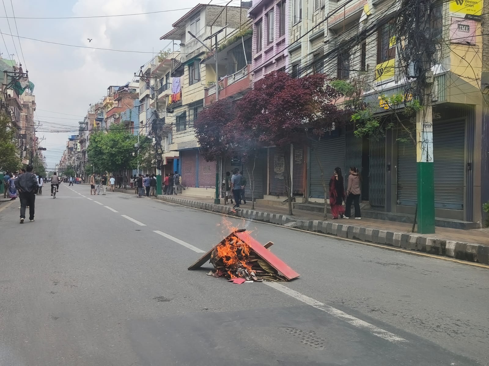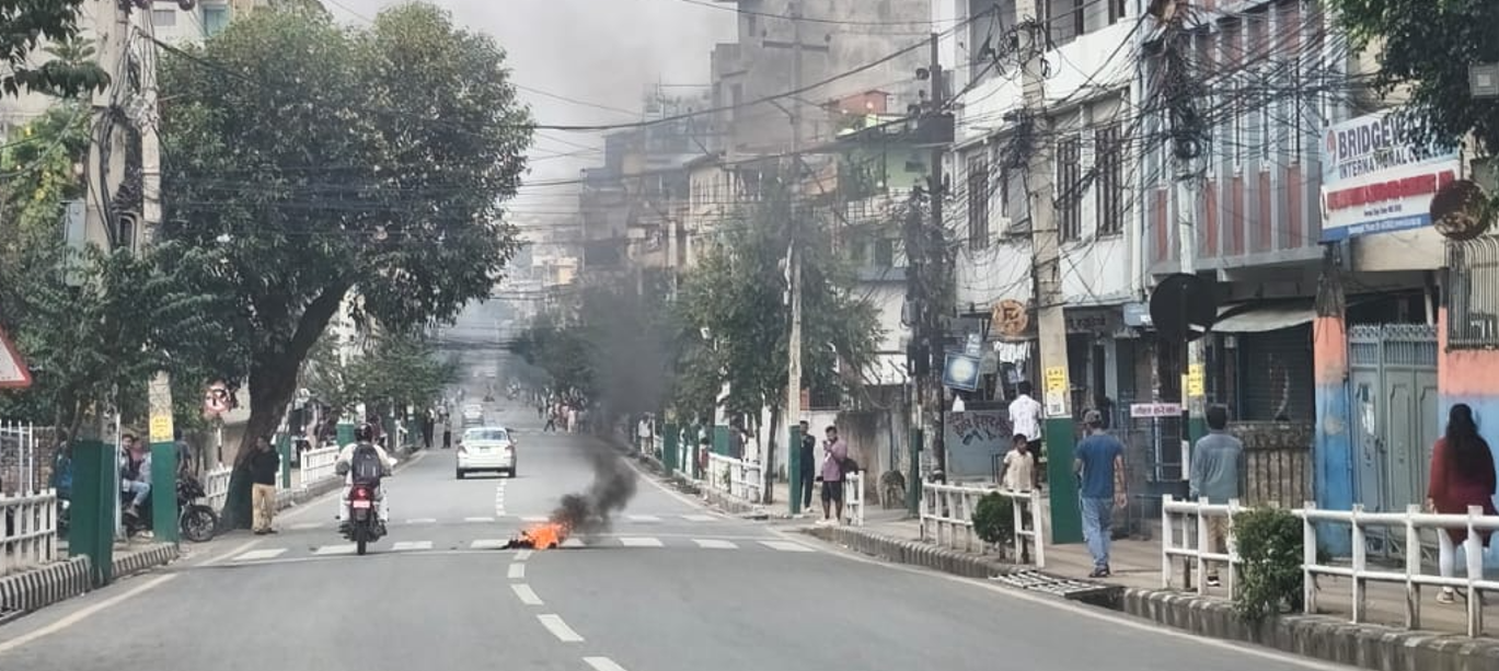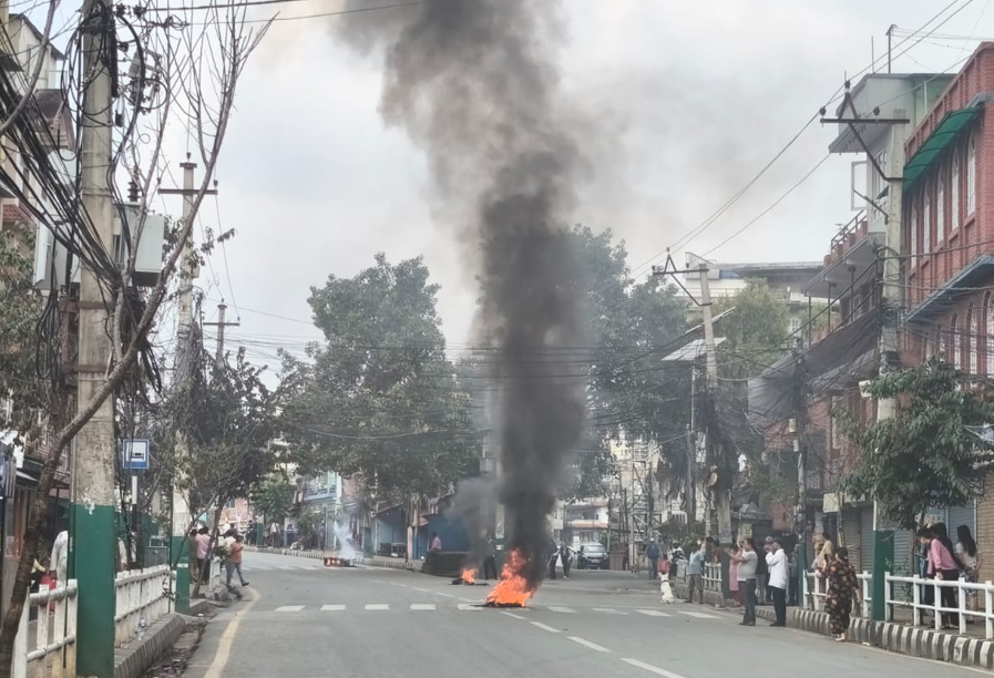 पुरानो बानेश्वरको क्षेत्रमा सबै युवाहरुले बिहानैदेखि रोडमा टायर, टेबल र कागजहरु जलाइरहेका छन् ।