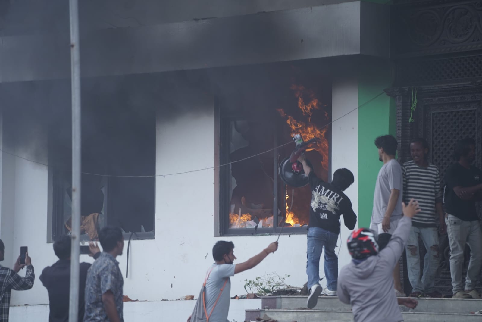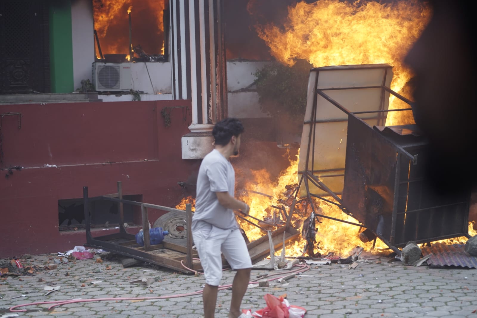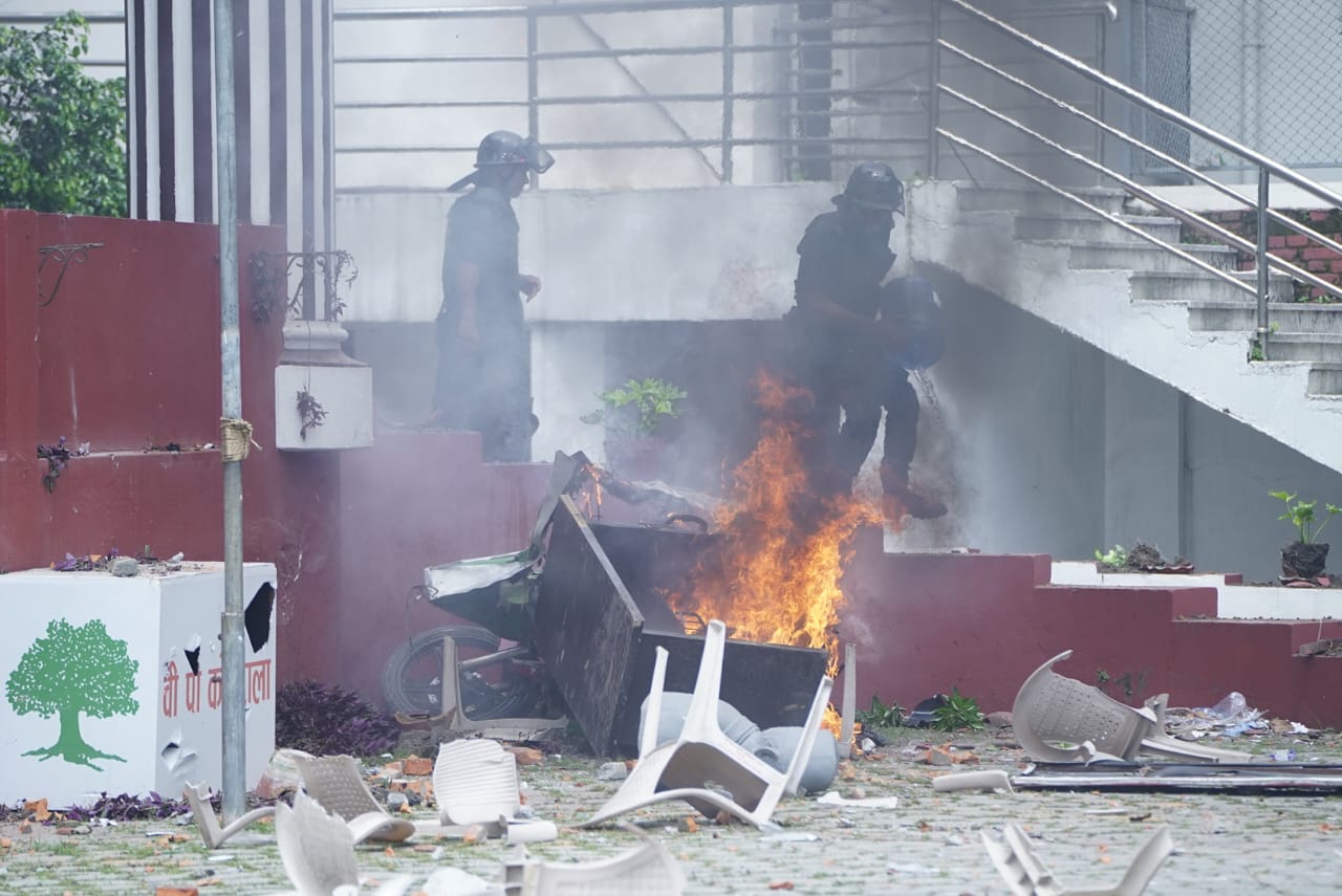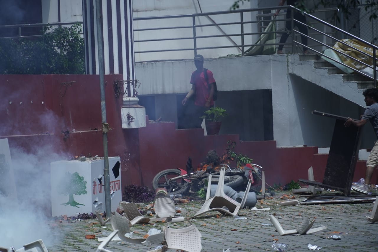 कांग्रेसको पार्टी कार्यालयमा आगजनी (फोटो फिचर)