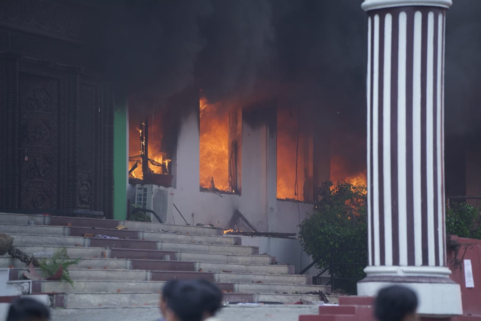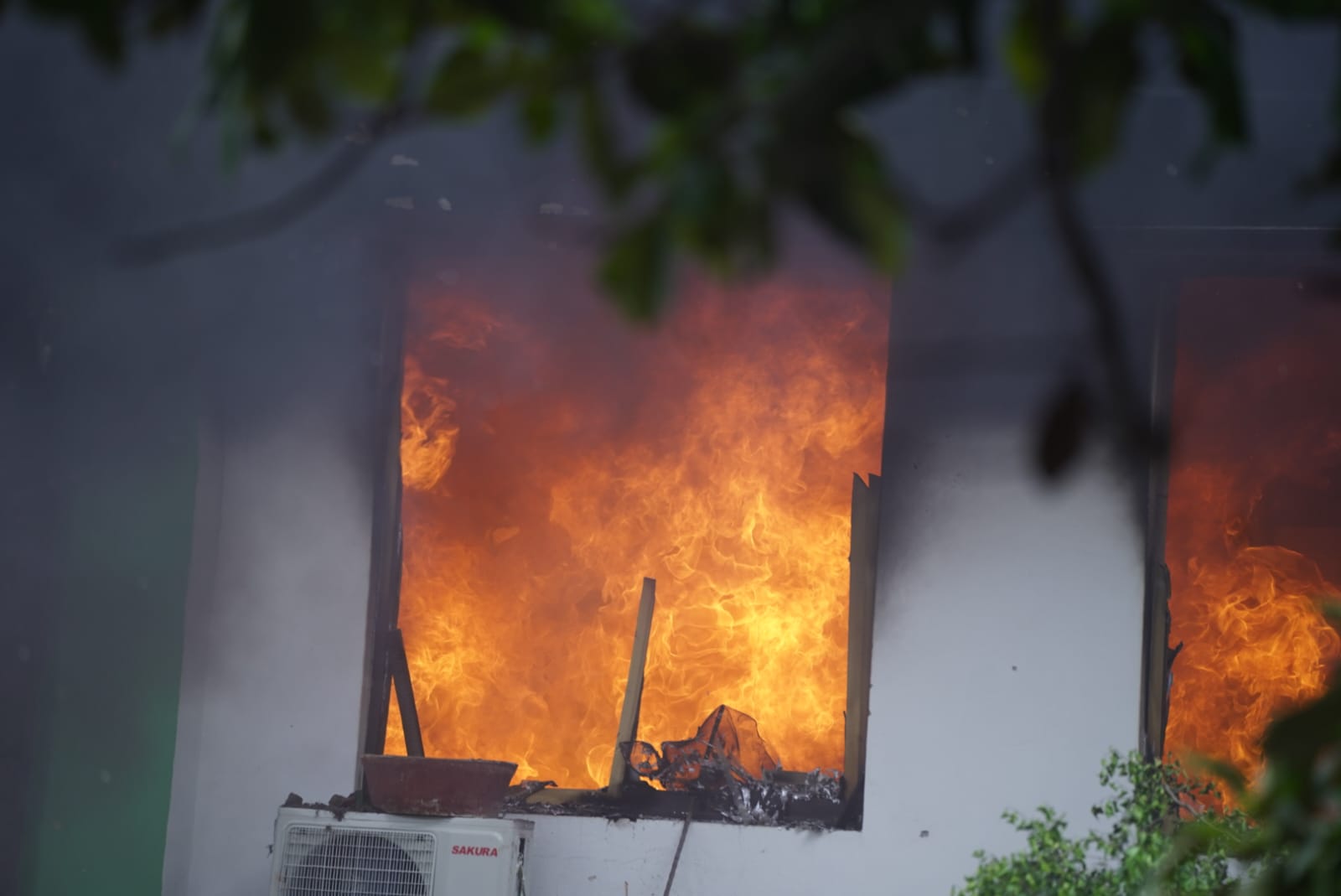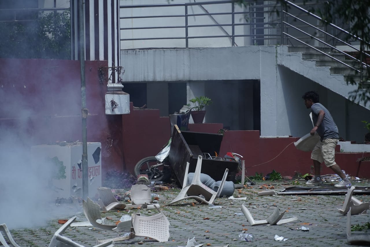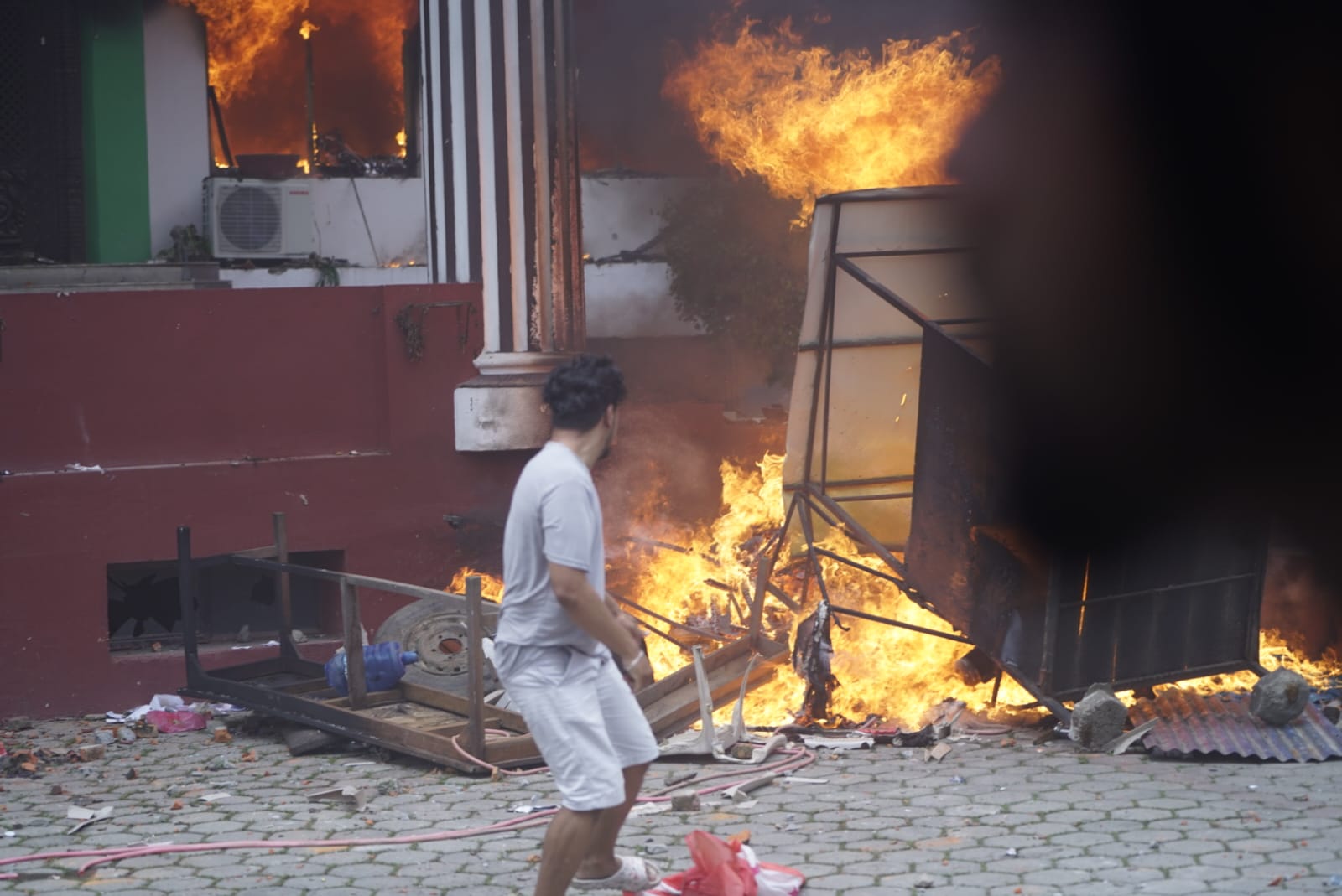 कांग्रेसको पार्टी कार्यालयमा आगजनी (फोटो फिचर)