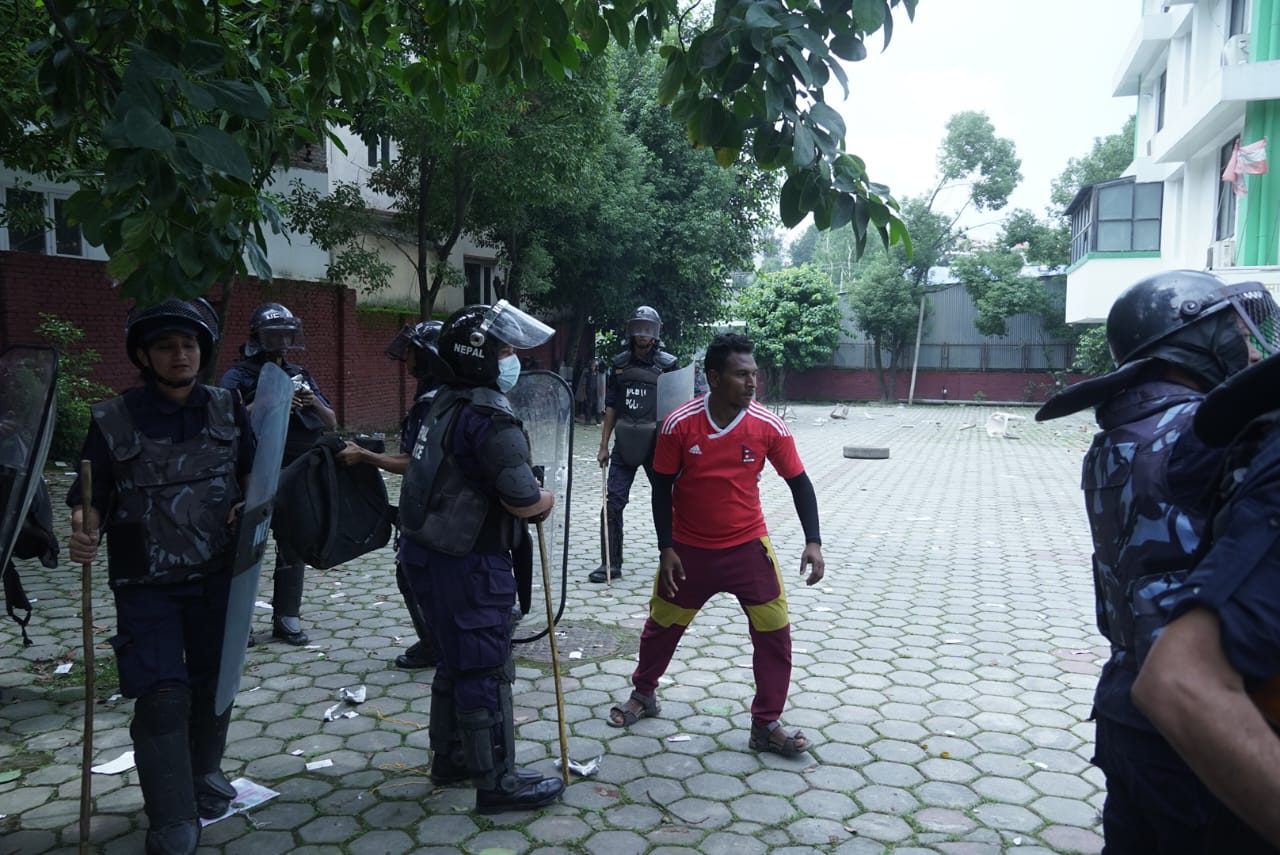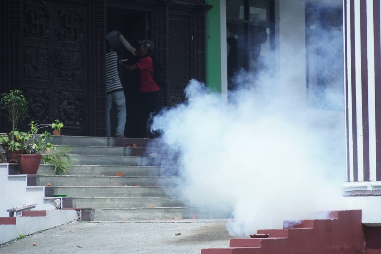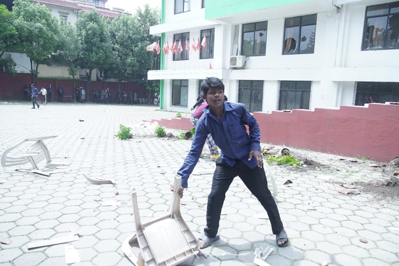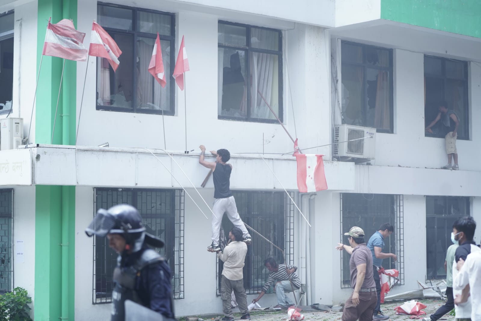 कांग्रेसको पार्टी कार्यालयमा आगजनी (फोटो फिचर)