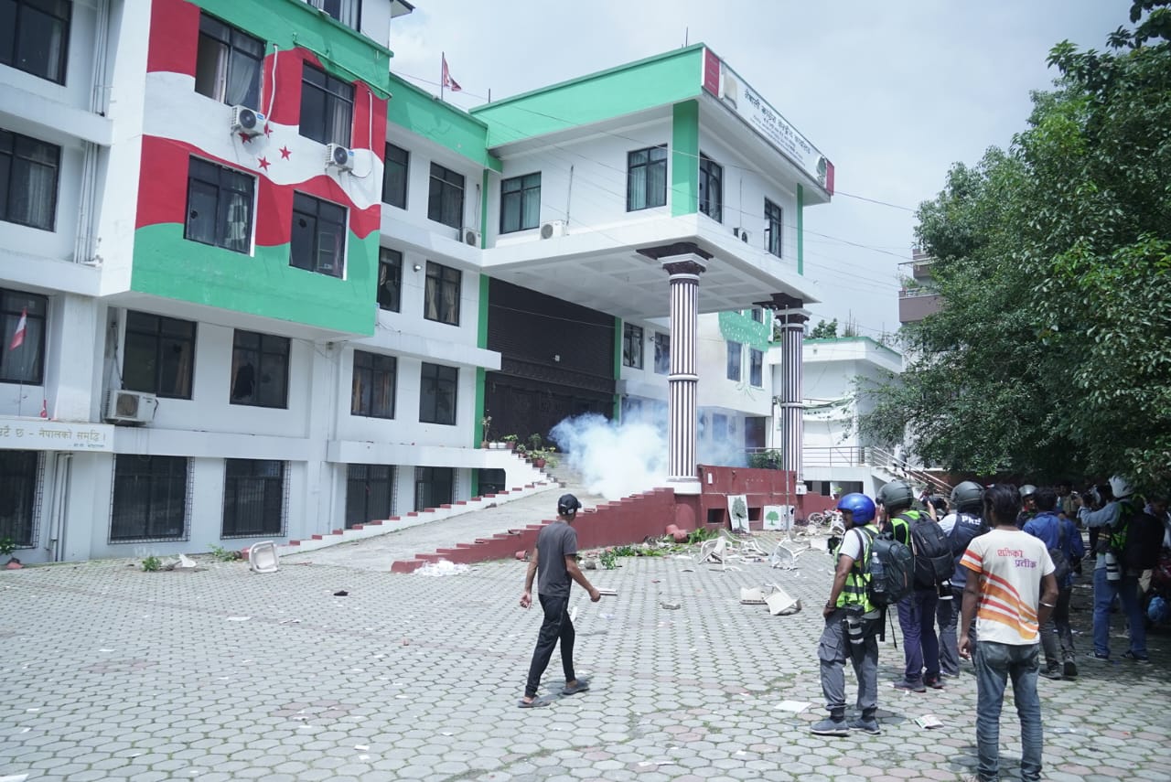 काठमाडाैं। नेपाली कांग्रेसको पार्टी कार्यालयमा जेनजी पुस्ताका आन्दोलनकारीहरुले आगजनी गरेका छन्। मंगलबार पार्टी कार्यालय सानेपामा पुगेर युवाहरुले नाराबाजी गरेको थिए । केही समयपछि उनीहरुले तोडफोडसहित आगजनी गरेका हुन्।