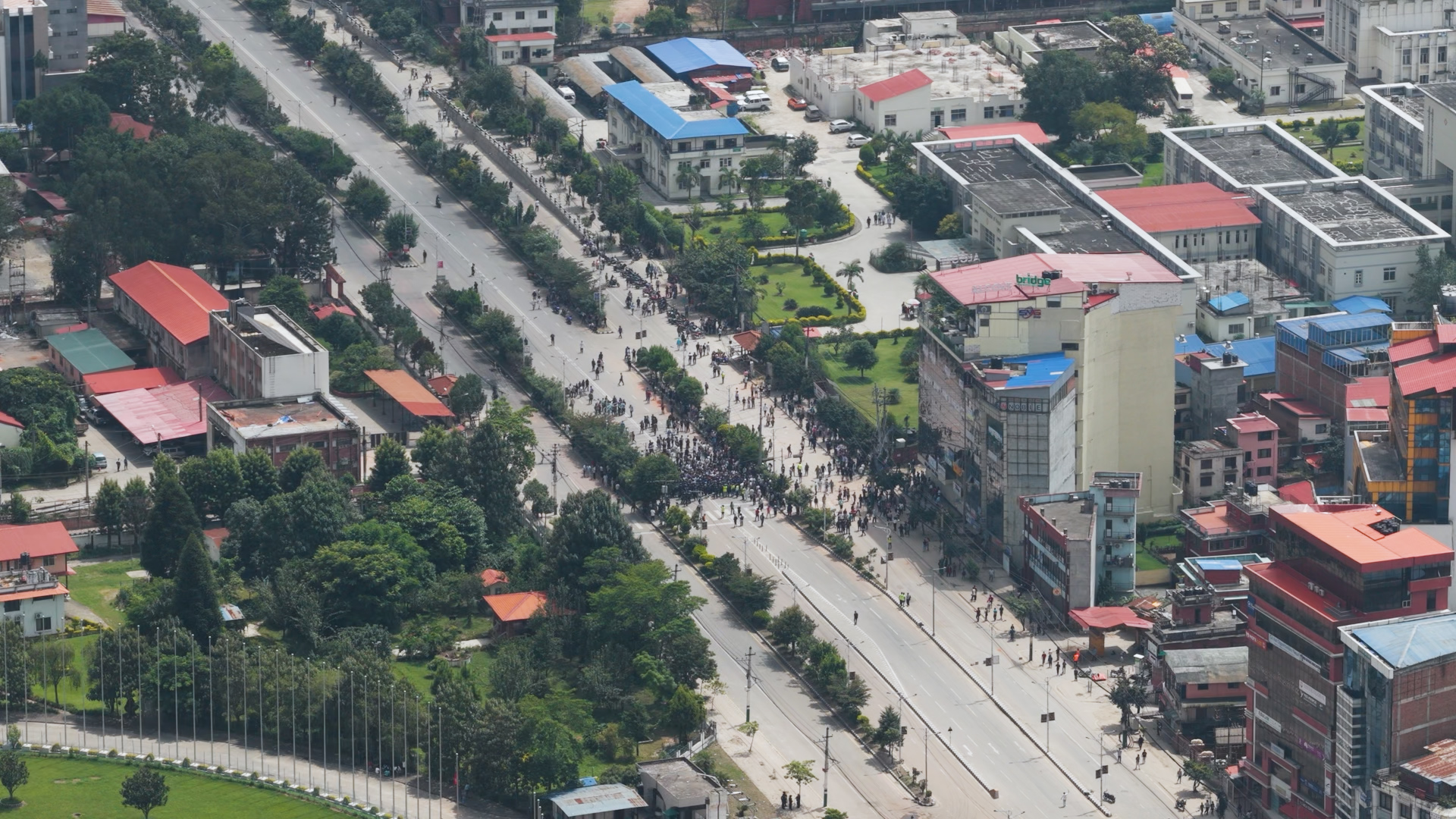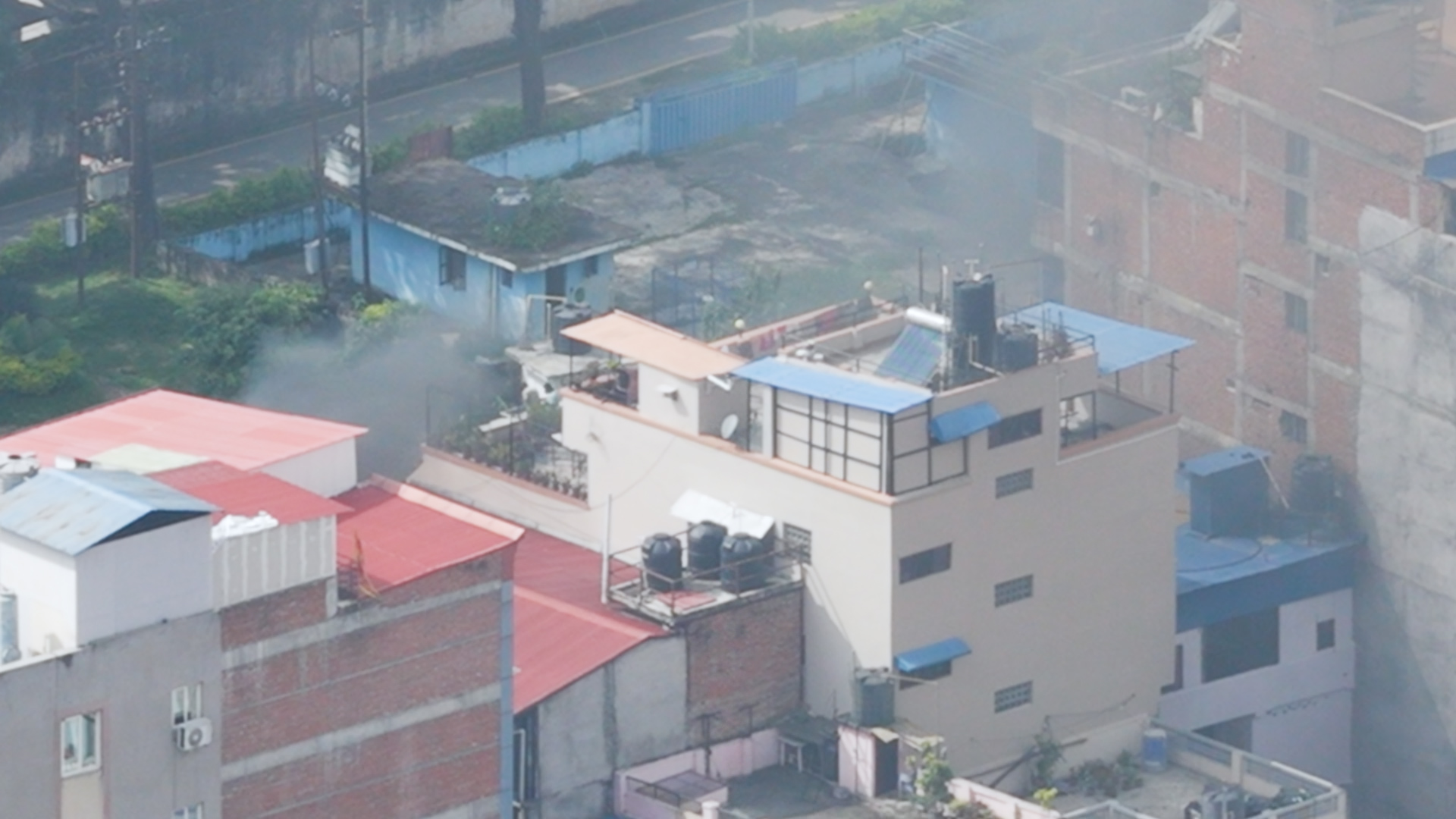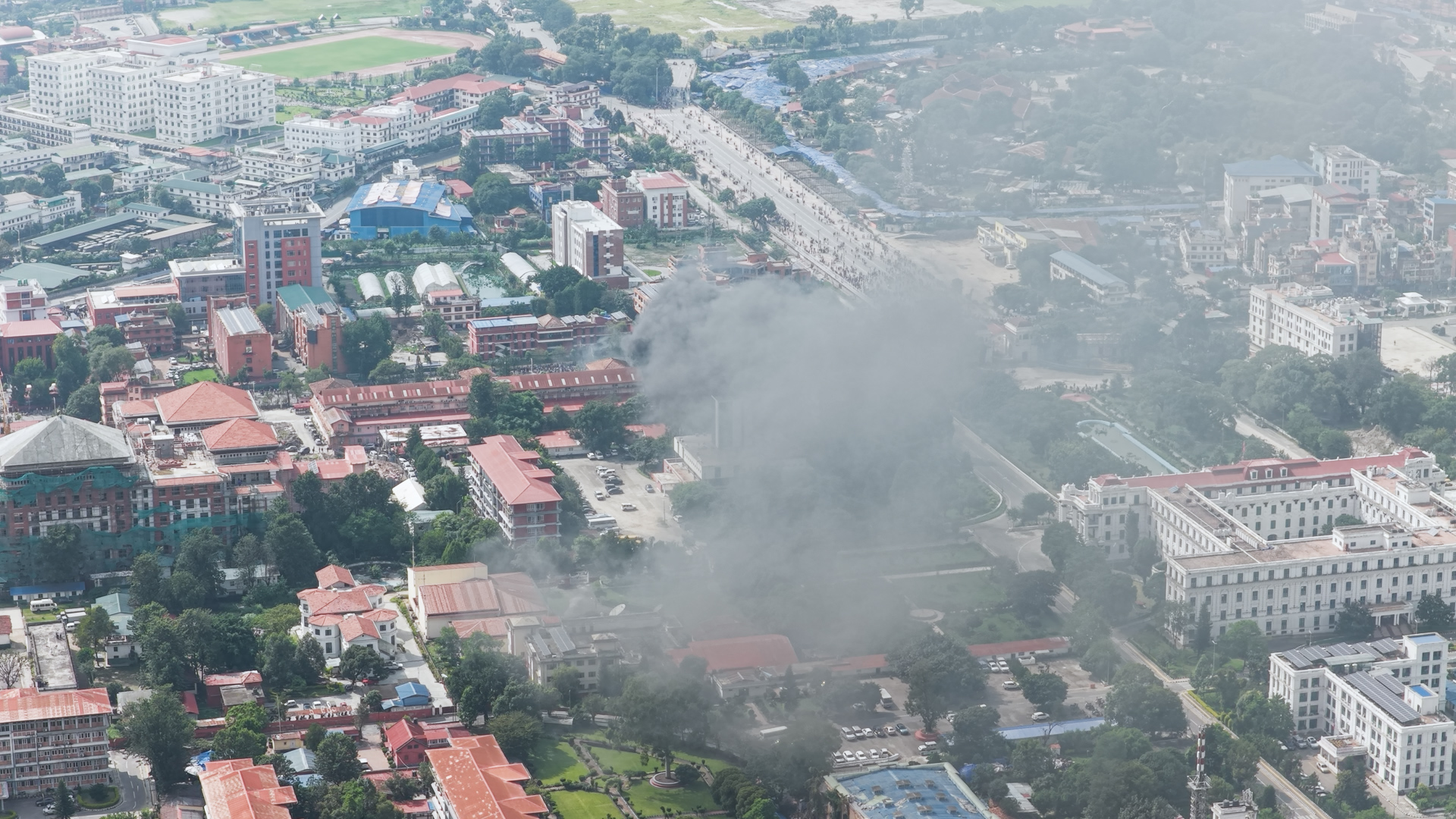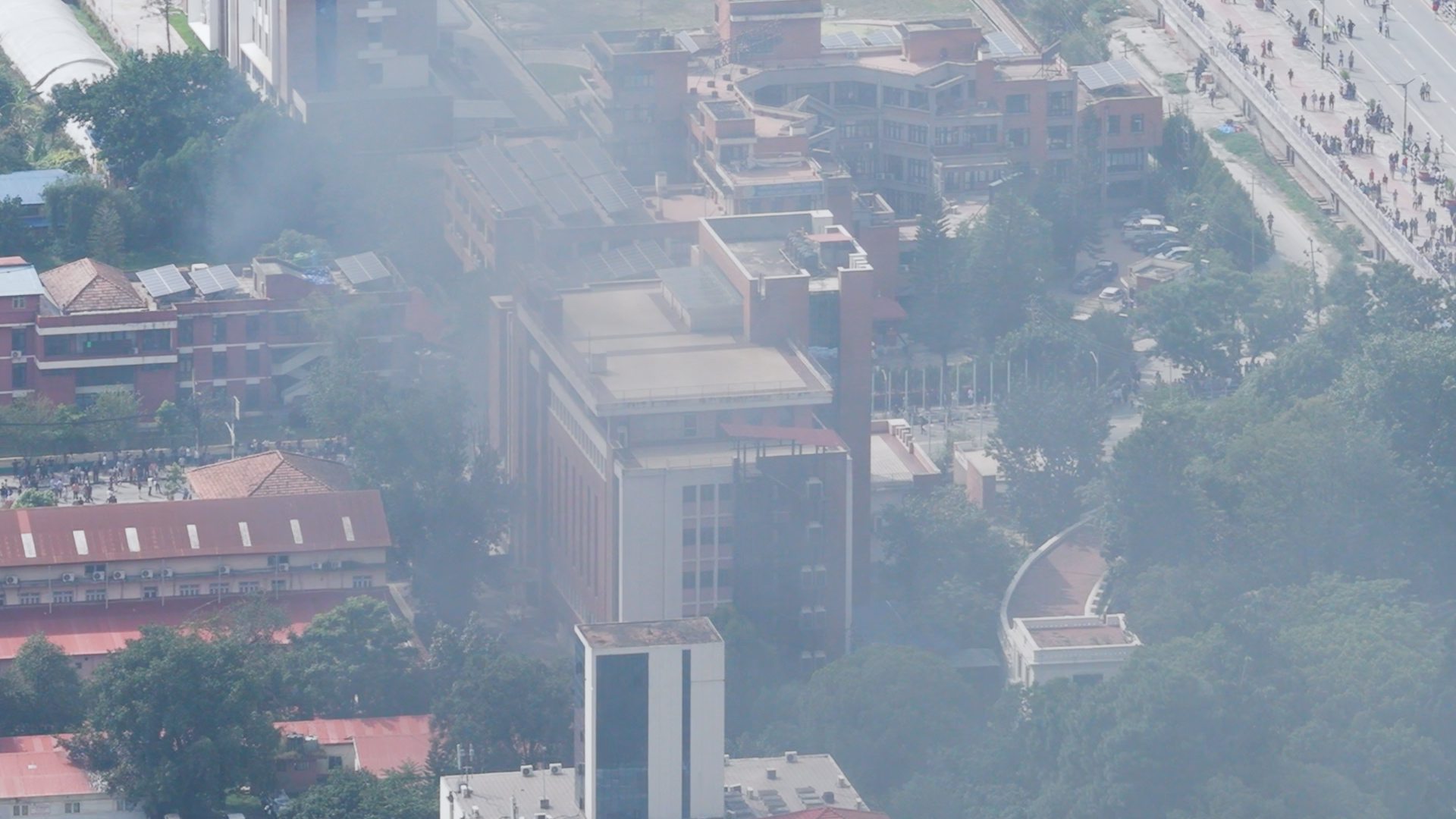 ड्रोनबाट हेर्दा संसद भवनको आगलागी झन् भयाभह देखिएको छ।