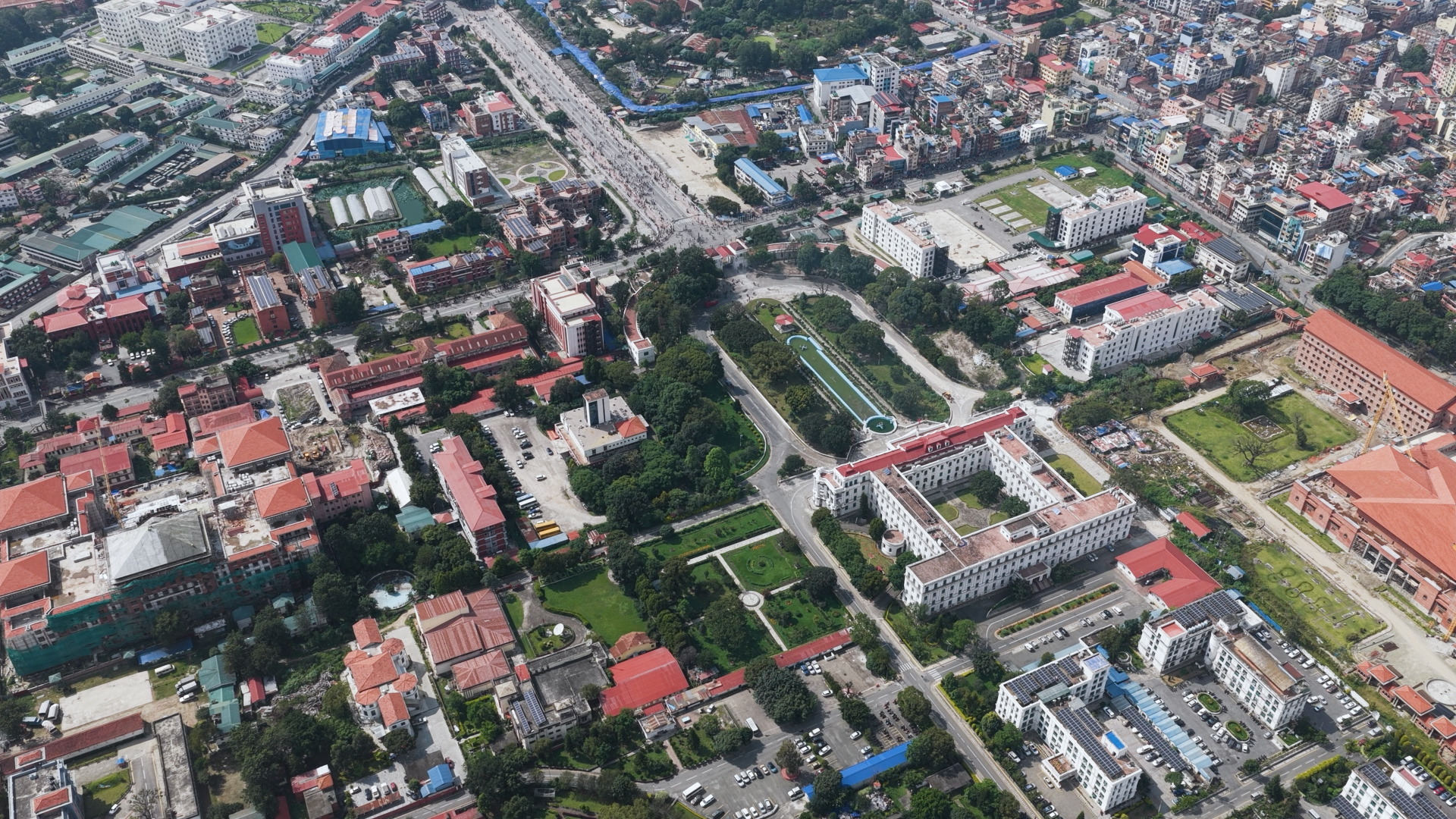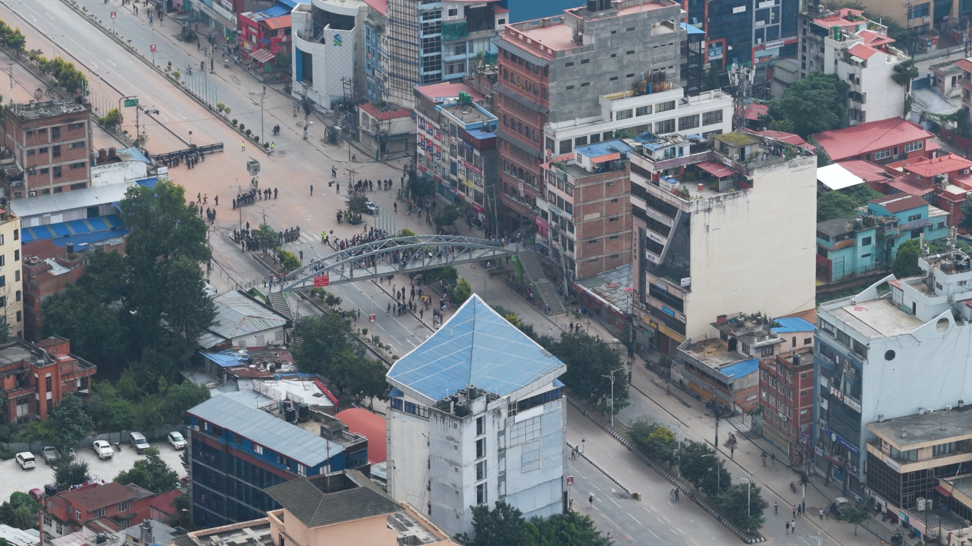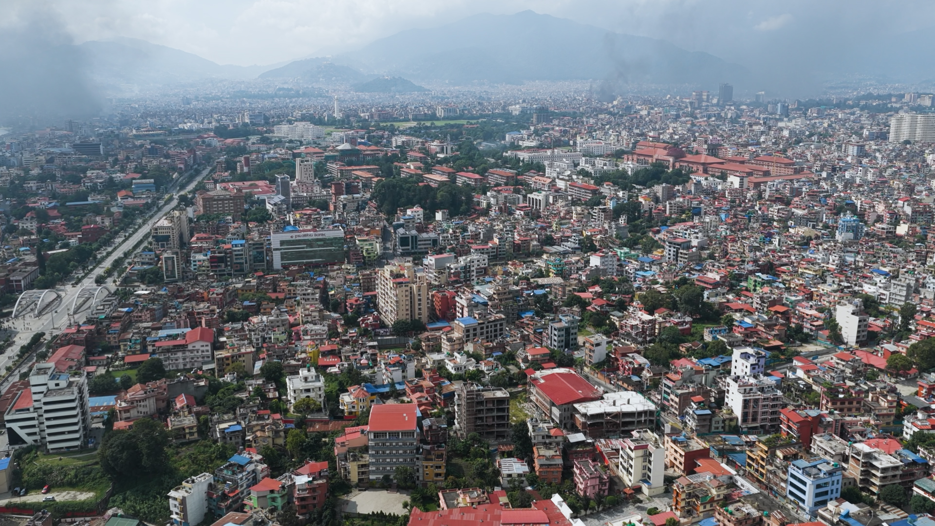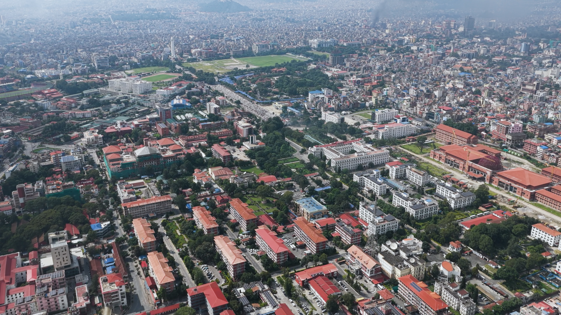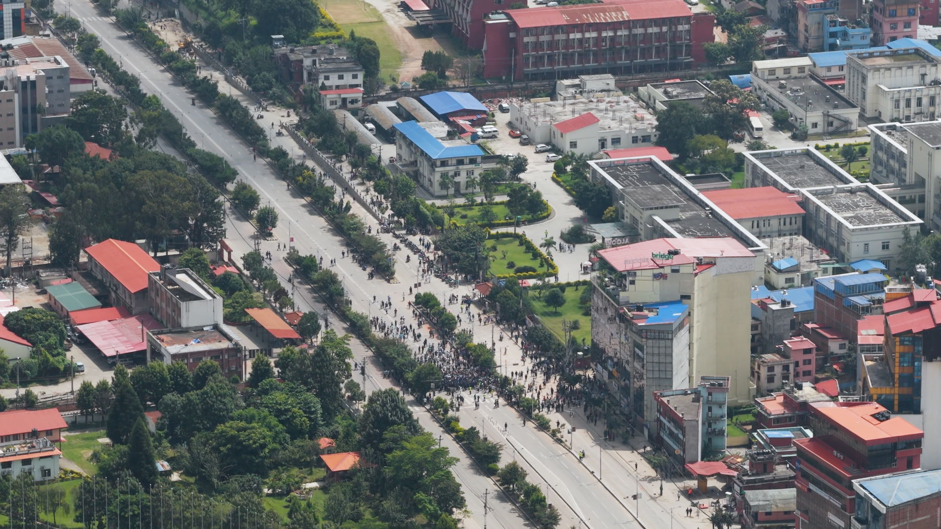 ड्रोनबाट हेर्दा संसद भवनको आगलागी झन् भयाभह देखिएको छ।