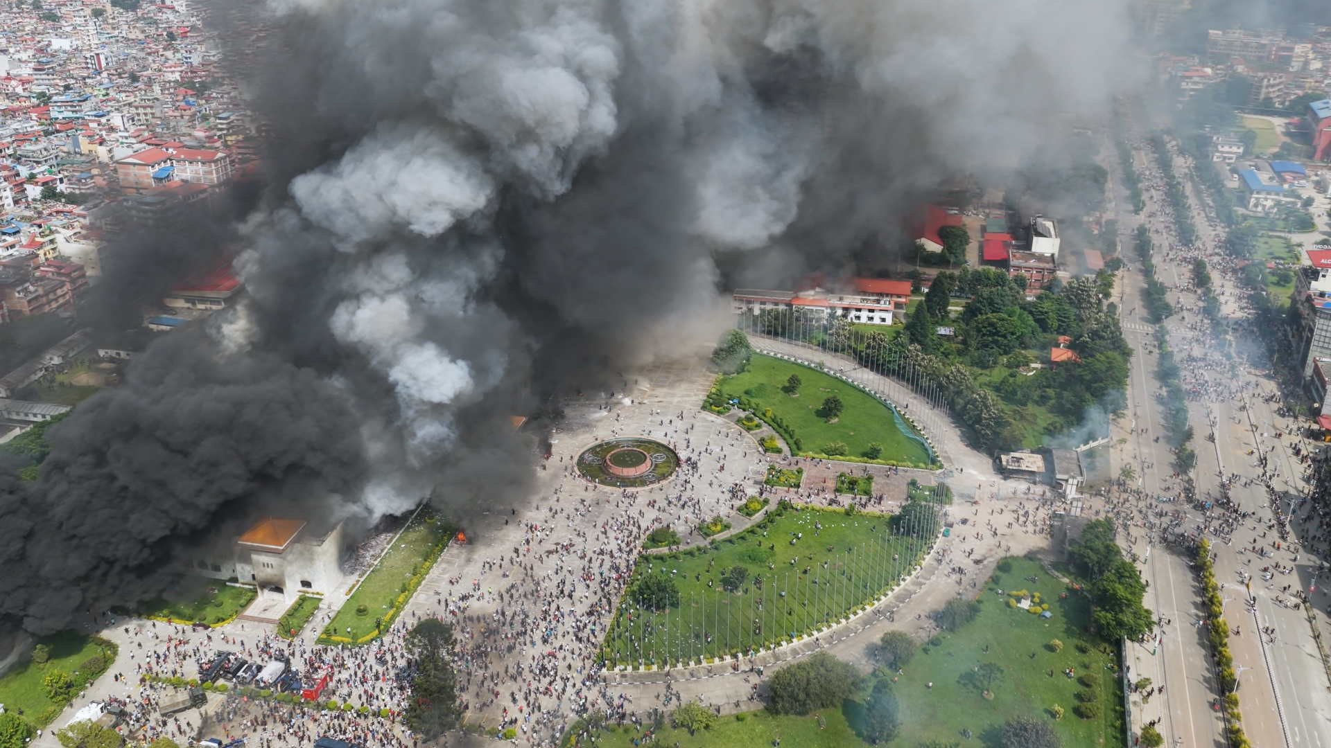 ड्रोनबाट यस्तो देखियो संसद भवनको आगलागी (तस्बिरहरू)