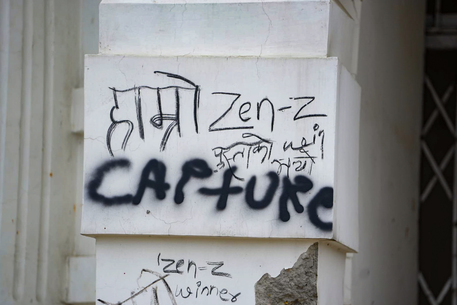 जेन्जी आन्दोलन : तस्बिरमा हेर्नुहोस् सिंहदरबारको पर्खालमा लेखिएको आक्रोश