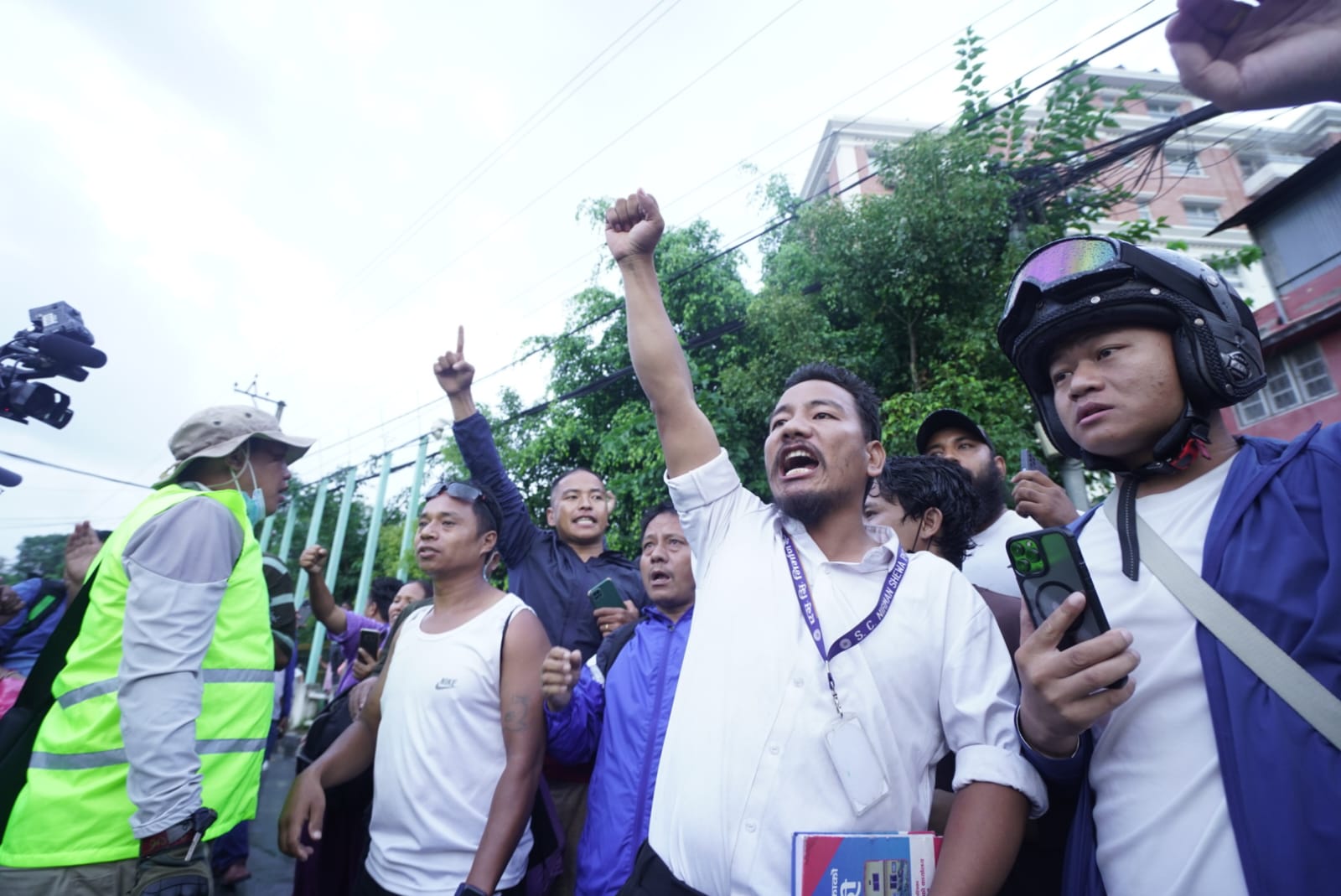 कुलमान र हर्कको समर्थनमा शीतल निवास अगाडि नाराबाजी