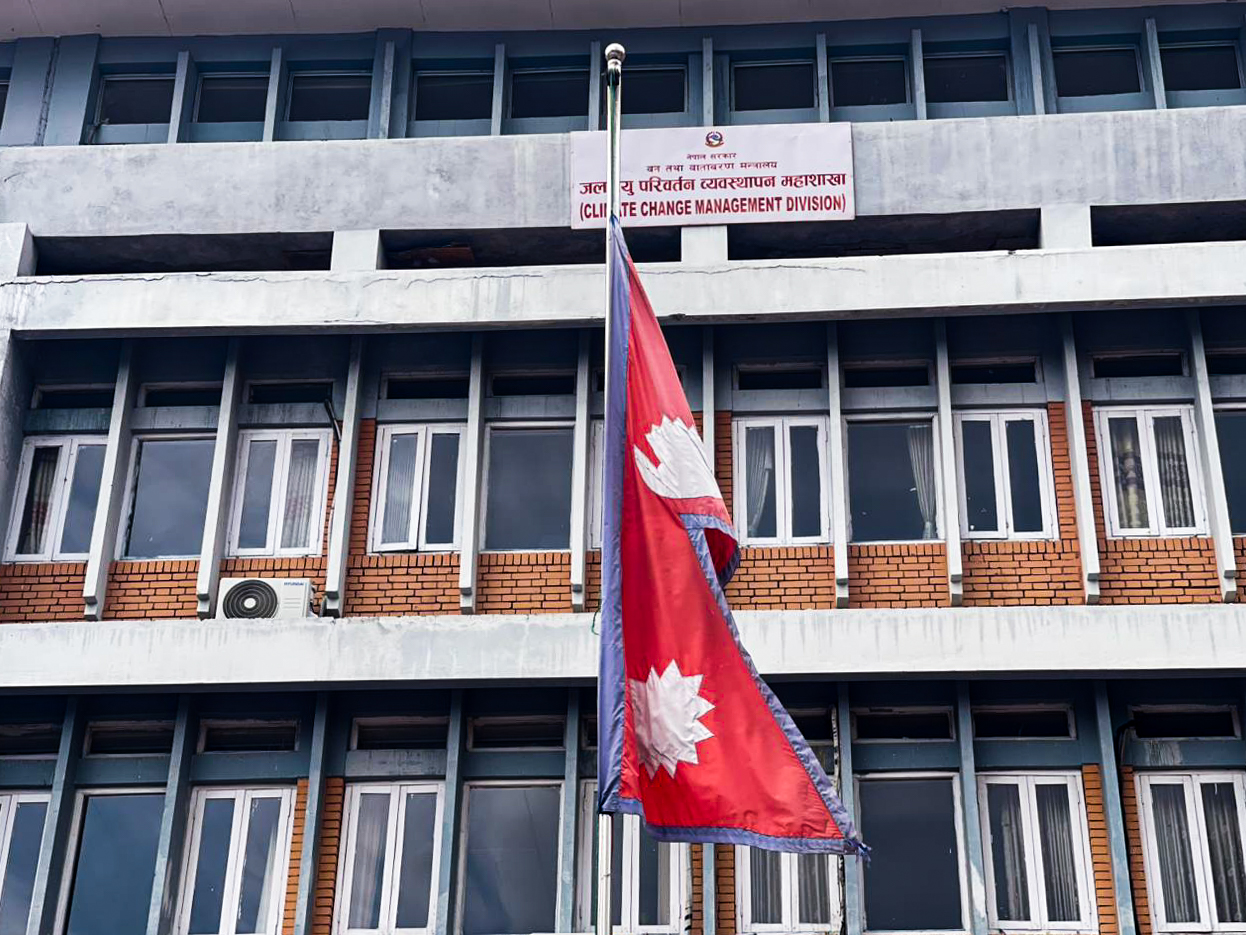 काठमाडौं । आज आन्दोलनमा सहिद भएकाहरूको शोकमा मन्त्रालयसहित सरकारी कार्यालयमा राखिएको राष्ट्रिय झण्डा आधा झुकाइएको छ।
