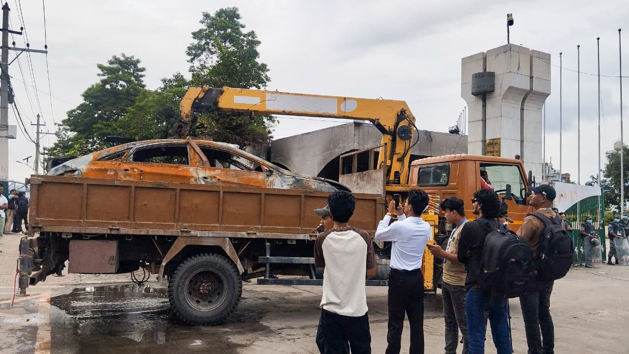 काठमाडाैं। जेनजी आन्दोलनको क्रमम जलेका सबै गाडी हालको लागि संसद भवन पछाडि राख्ने गरि व्यवस्था गरिएको छ। गाडीहरु पूर्ण रुपमा जलेर ध्वस्त भएको हुनाले हालको लागि त्यहाँ राखेर पछि निलामी गरेर बेच्ने व्यवस्था गरिएको छ।