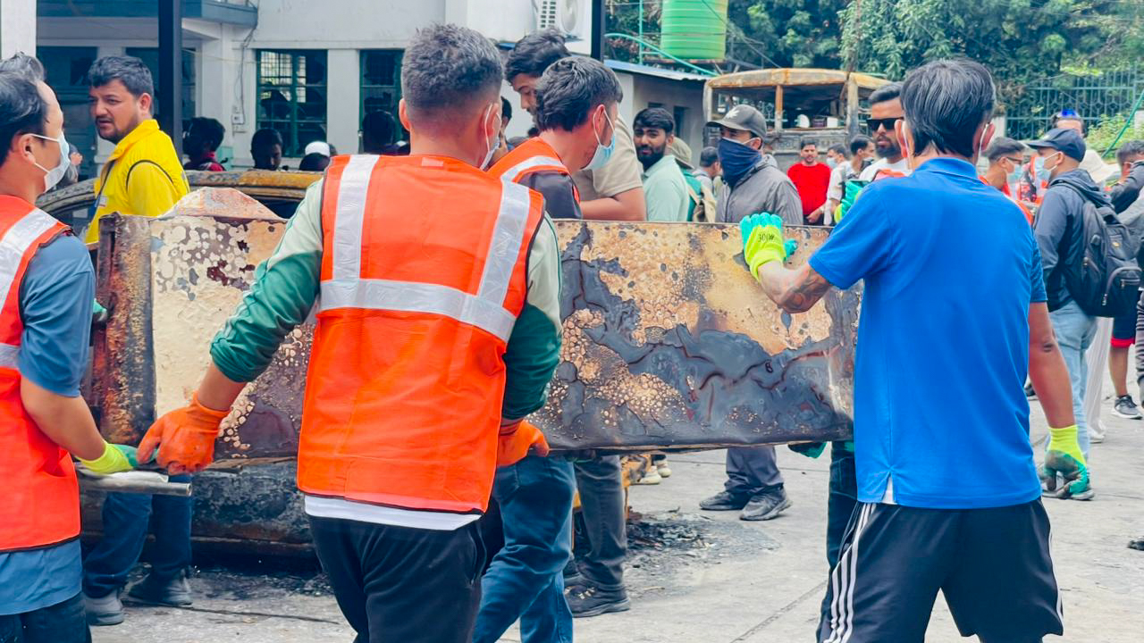 काठमाडाैं। गत भदौ २३ र २४ गते जेनजी समुहको आन्दोलनबाट आगजनी भएको यातायात व्यवस्था विभागमा जेनजी समुहले श्रमदान गरेका छन् । शुक्रबार उनीहरुले आगजनी भएको उक्त भवनमा श्रमदान गरेका हुन्।