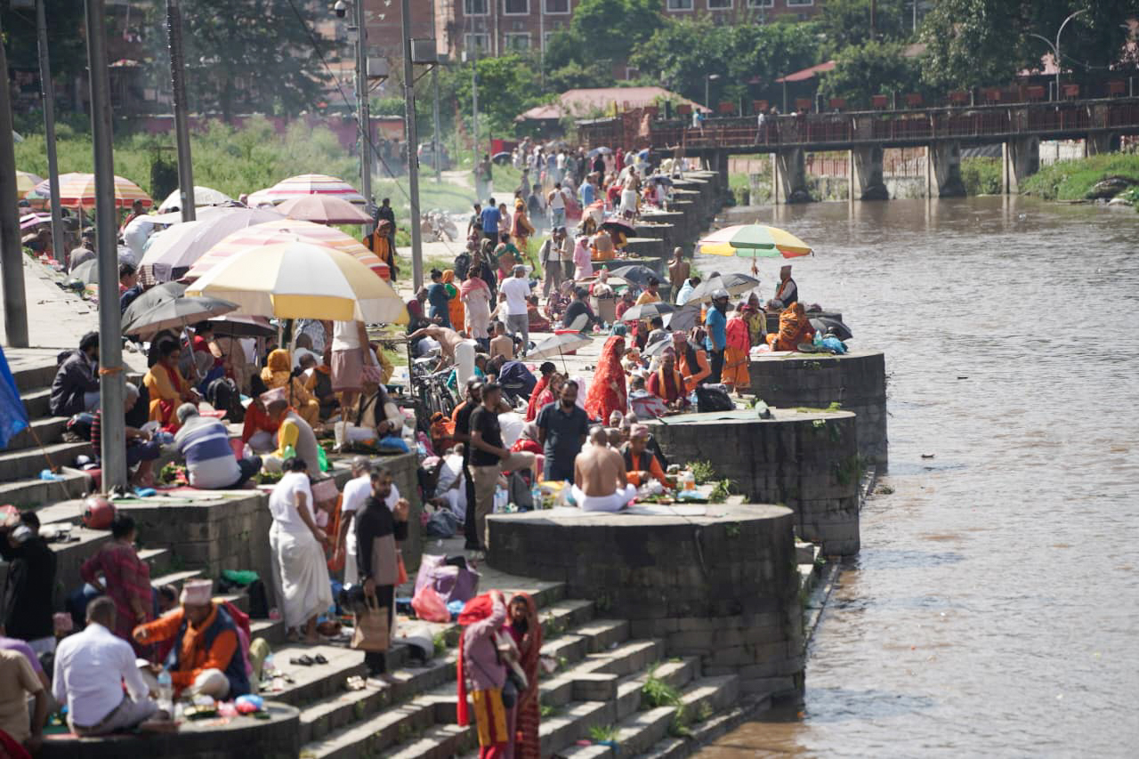 श्राद्धको अन्तिम दिन परेका कारण आज बिहानैदेखि काठमाडौंको पशुपतिनाथ मन्दिर परिसरमा श्रद्धालुहरूको ठूलो भीड देखिएको छ। आफ्ना दिवंगत पितृहरूको सम्झनामा तर्पण, पिण्डदान तथा अन्य धार्मिक कार्य गर्न भक्तजनहरू बिहानैदेखि पशुपतिमा छन्।