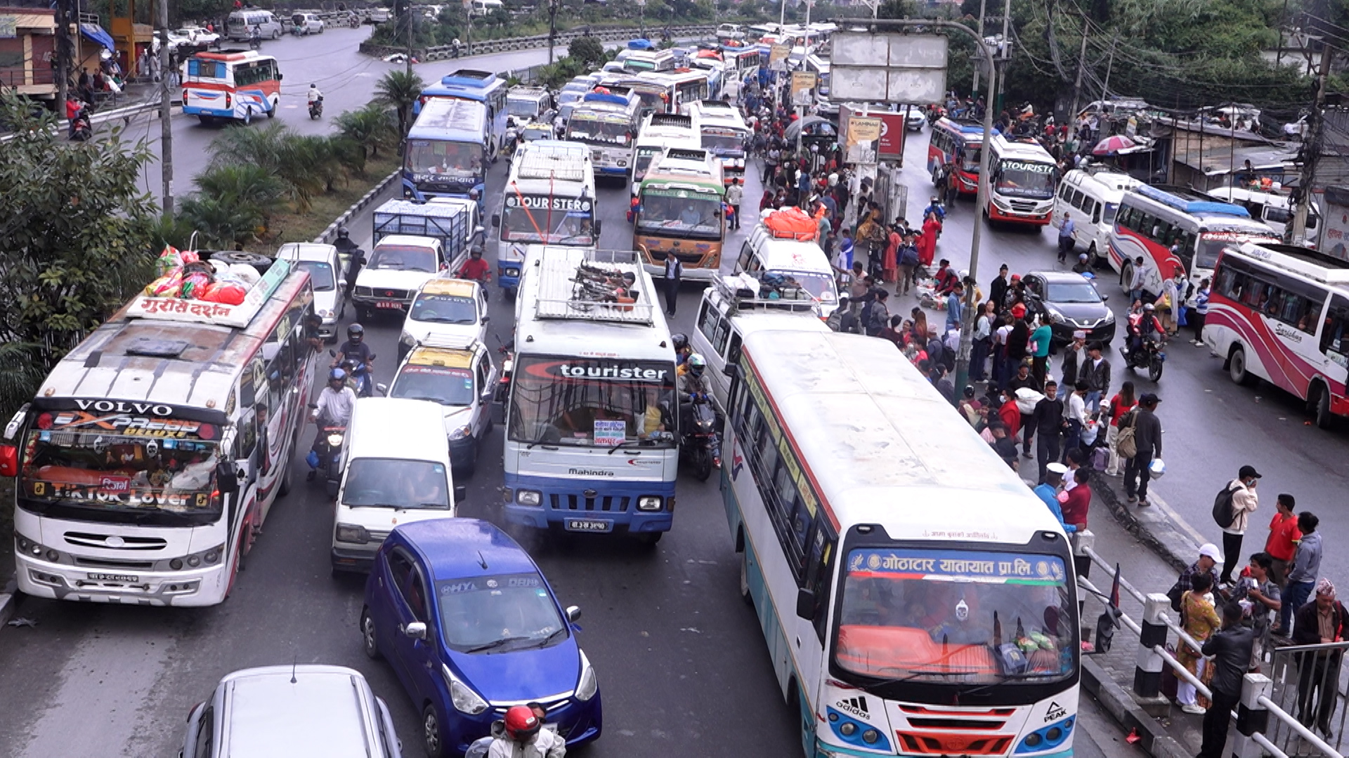 गोंगबु बसपार्क, कलंकी, कोटेश्वर, जडिबुटी क्षेत्रमा बस कुर्नेहरूको भीड लागेको छ। काठमाडौं छाडेर आफ्नो आफ्नो गन्तव्यतिर लाग्ने सवारी साधनको चापका कारण बिहानैदेखि पूर्वतर्फ जाने सवारी र यात्रुको चापले कोटेश्वर, जडिबुटी सडकमा गाडीको लाम लागेको छ।