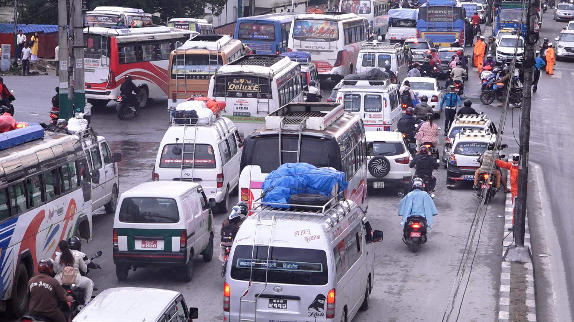 बडादशैंमा काठमाडौं छाड्नेको चाप, कोटेश्वर–जडीबुटी सडक खचाखच (फाेटाेफिचर)