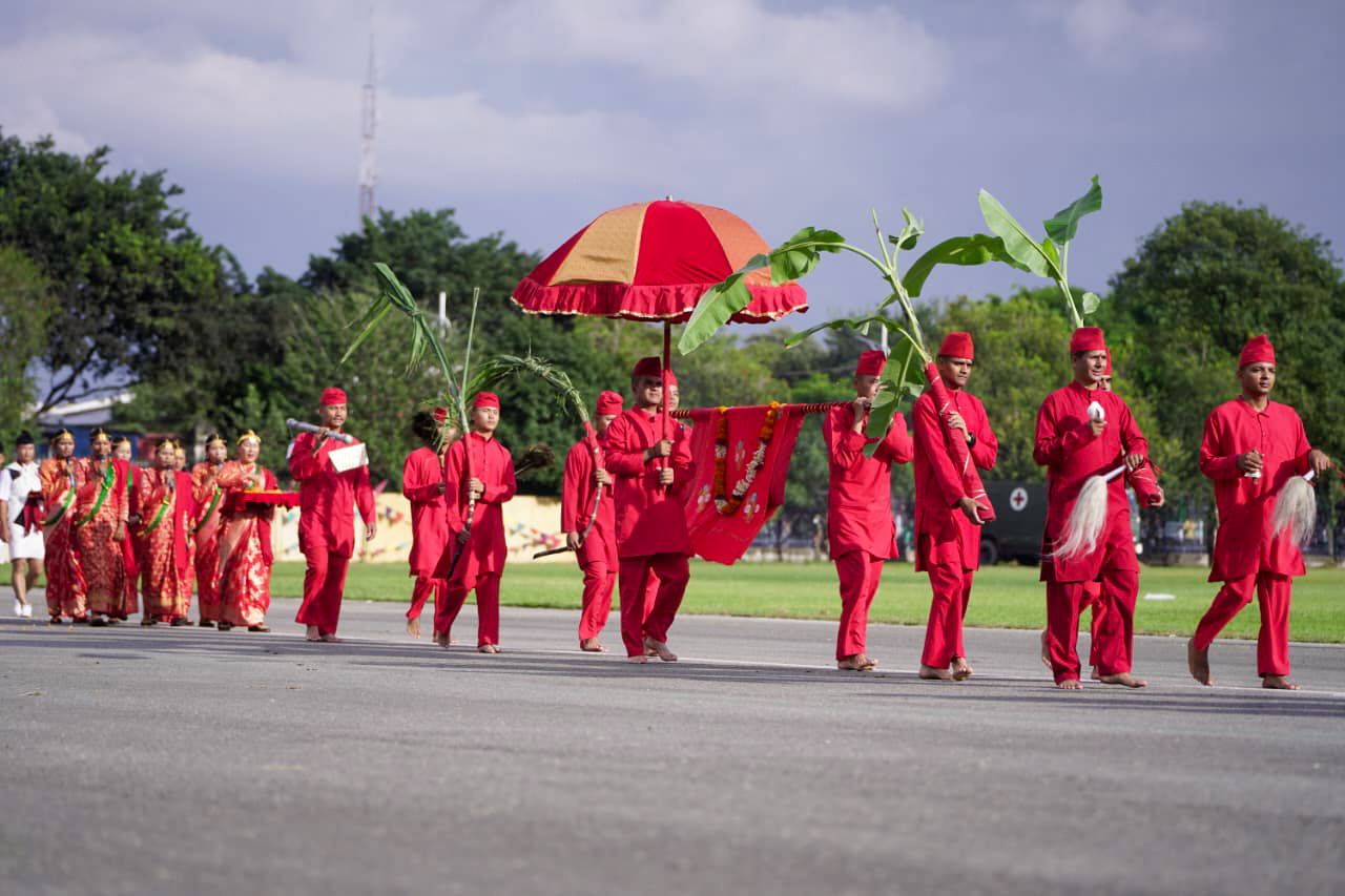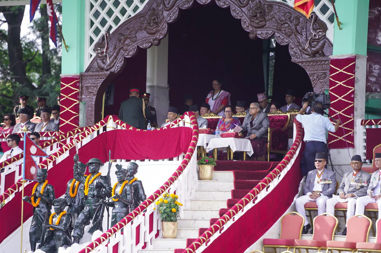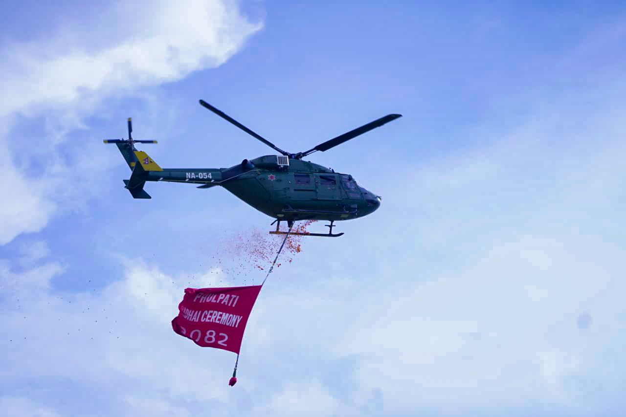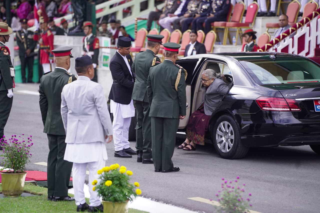 काठमाडौं। राष्ट्रपति रामचन्द्र पौडेलको प्रमुख आतिथ्यमा सैनिक मञ्च टुँडिखेलमा आज अपराह्न ‘फूलपाती बढाइँ समारोह-२०८२’ सम्पन्न गरिएको छ। समारोहमा नेपाली सेनाका परमाधिपति राष्ट्रपति पौडेलको सम्मानमा नेपाली सेनाले सलामी अर्पण गरेको थियो।