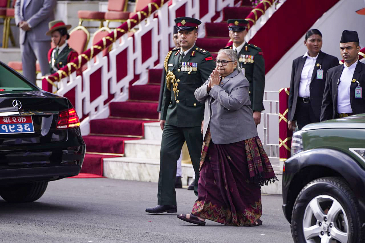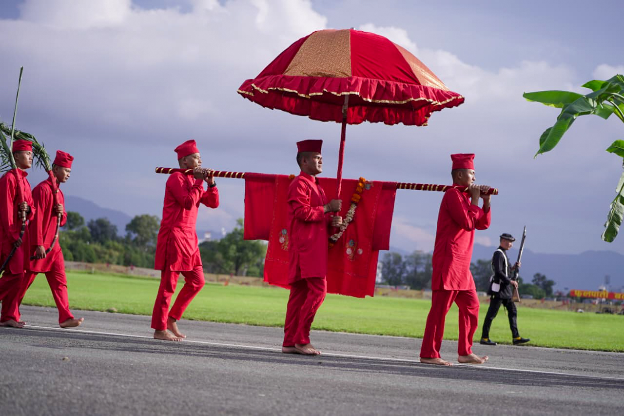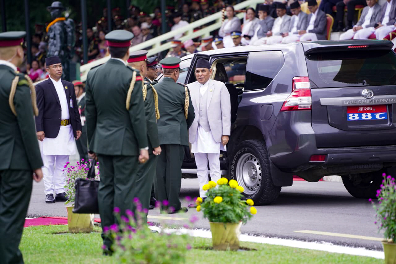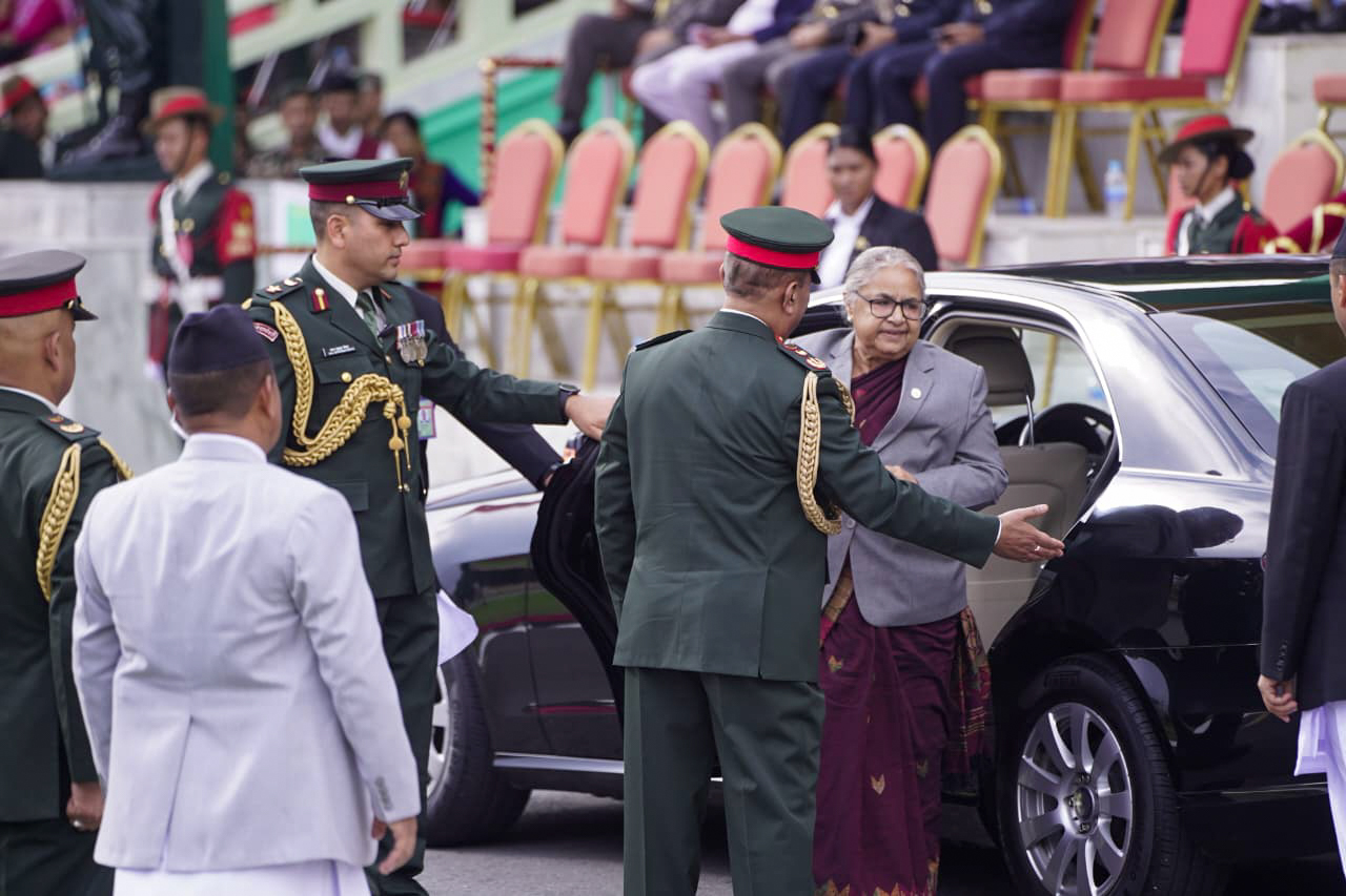काठमाडौं। राष्ट्रपति रामचन्द्र पौडेलको प्रमुख आतिथ्यमा सैनिक मञ्च टुँडिखेलमा आज अपराह्न ‘फूलपाती बढाइँ समारोह-२०८२’ सम्पन्न गरिएको छ। समारोहमा नेपाली सेनाका परमाधिपति राष्ट्रपति पौडेलको सम्मानमा नेपाली सेनाले सलामी अर्पण गरेको थियो।